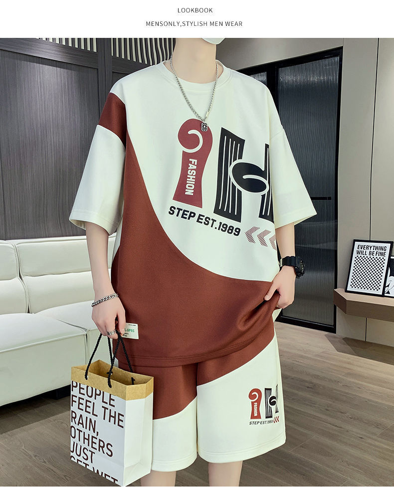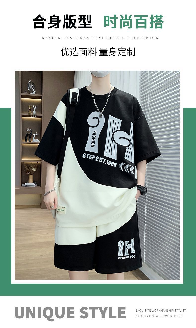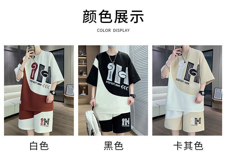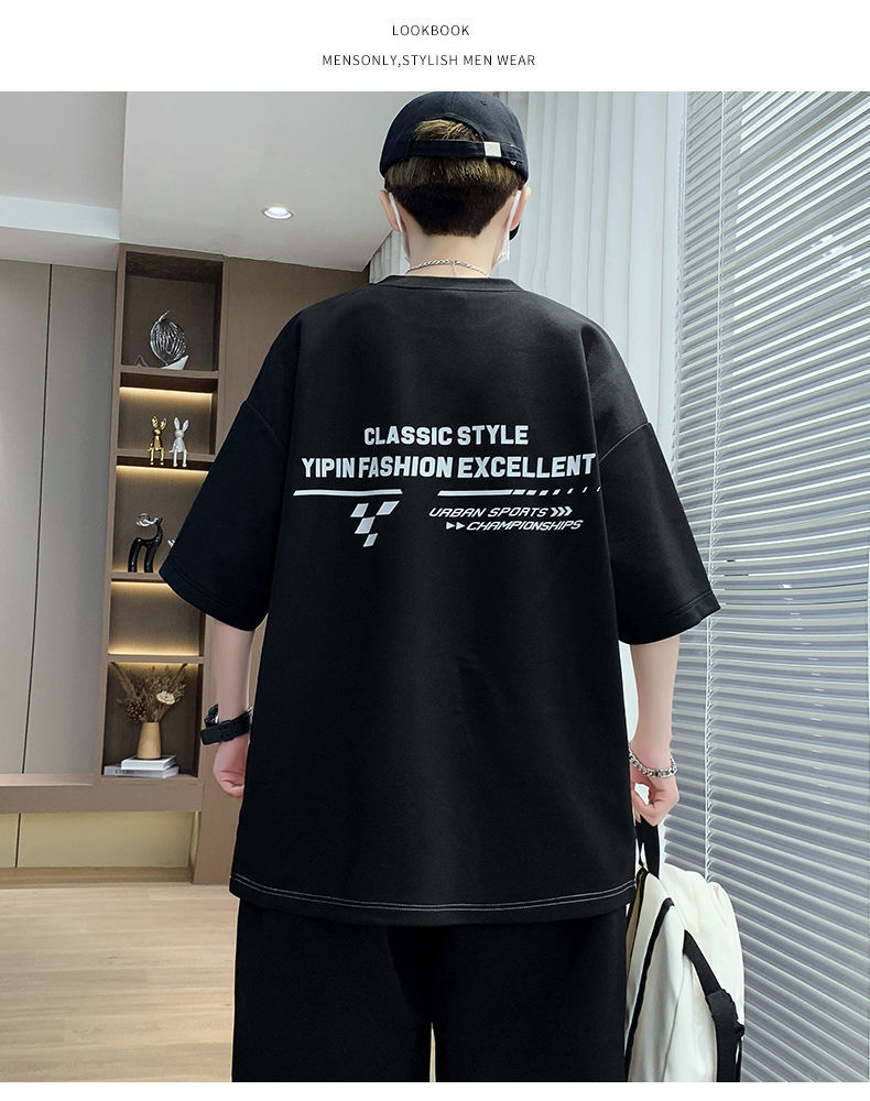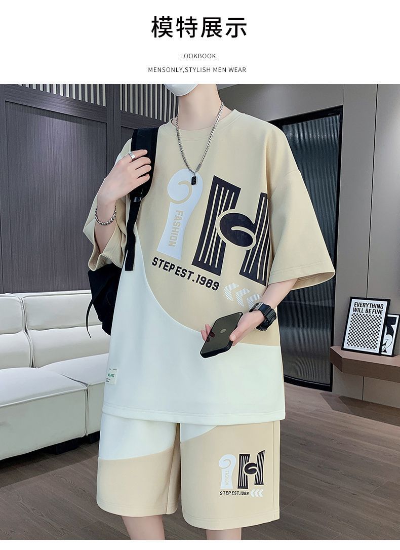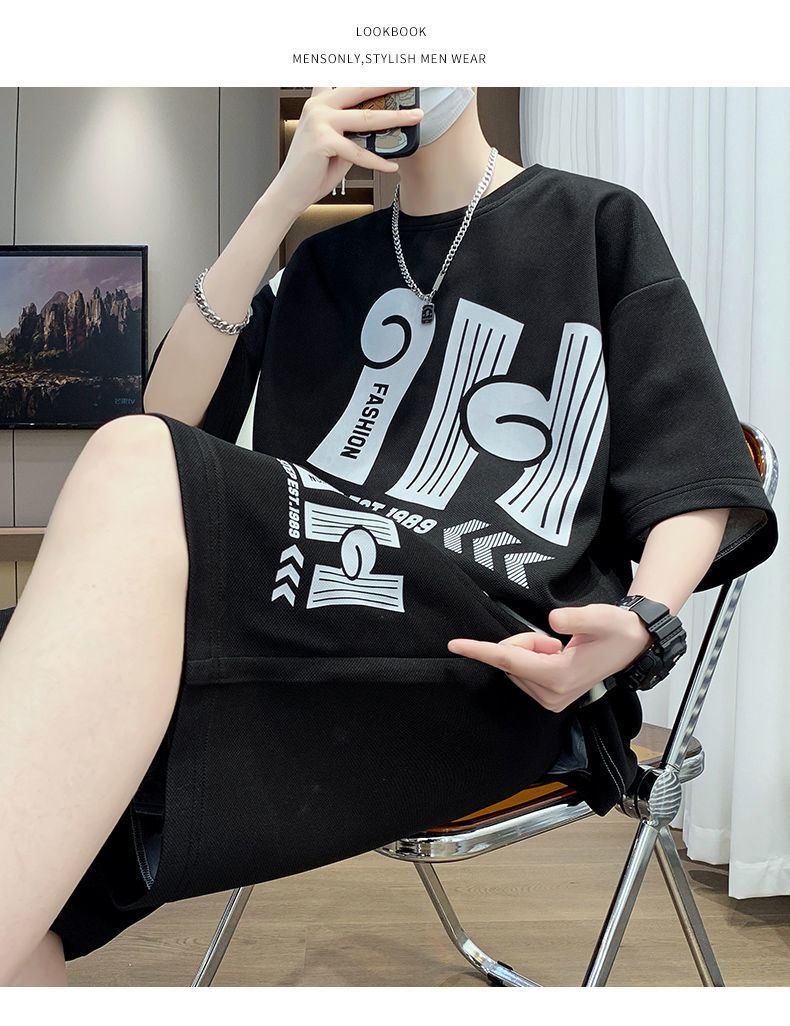 소년을위한 캐주얼 스포츠 정장 여름 느슨한 청소년 학생 티셔츠 트렌디 한 반팔 반바지 세트스토어 가기