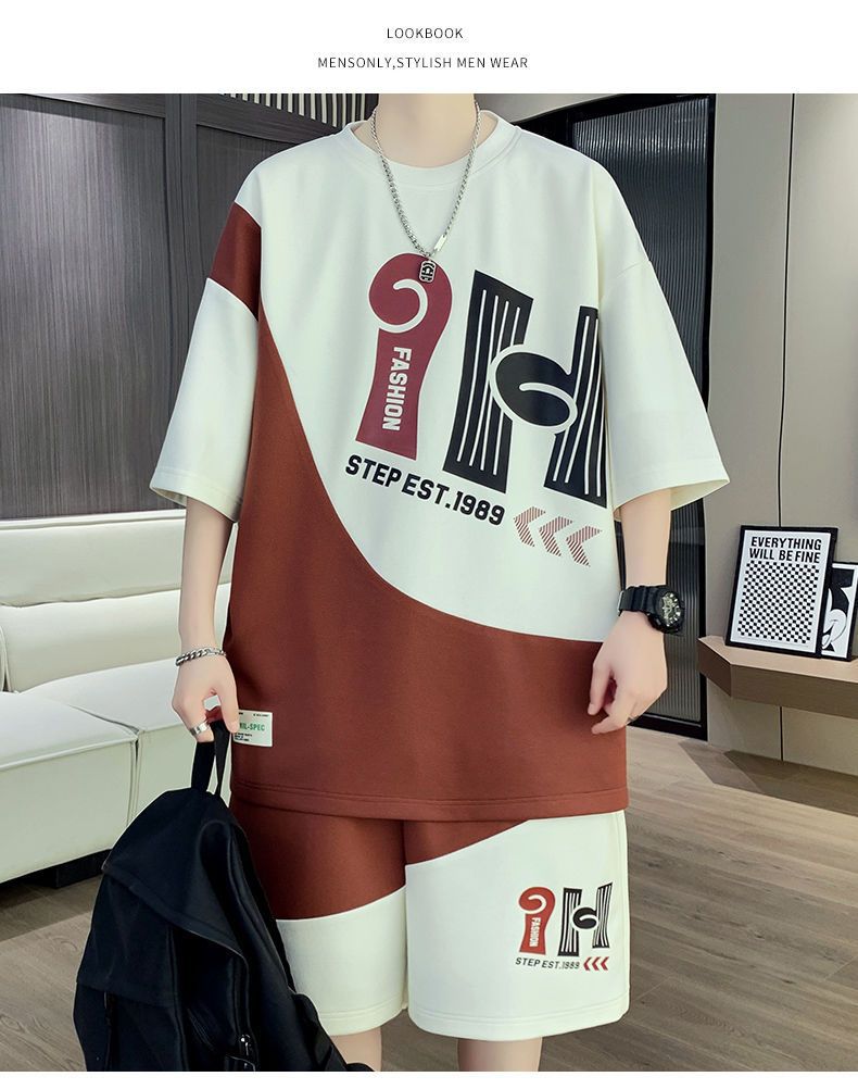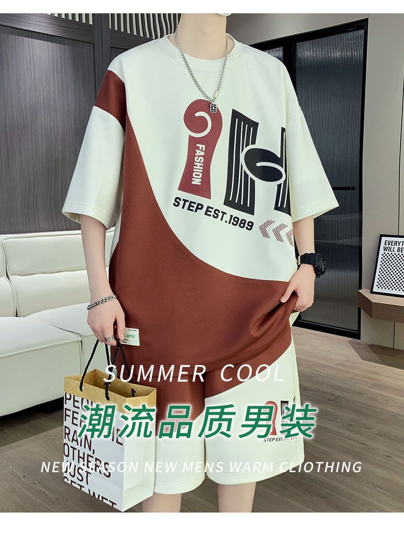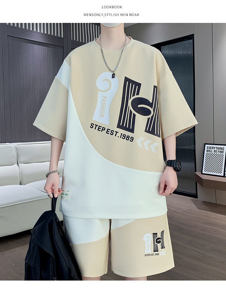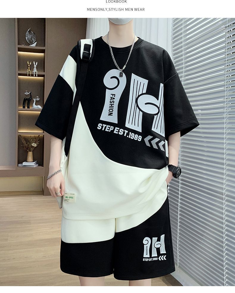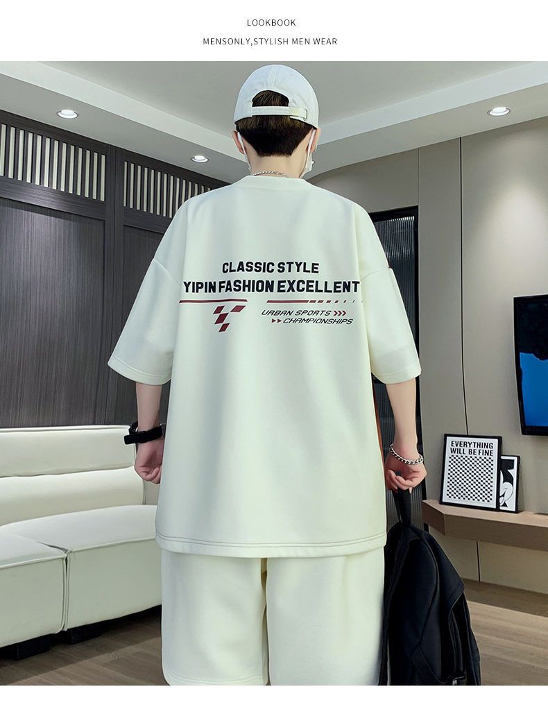 소년을위한 캐주얼 스포츠 정장 여름 느슨한 청소년 학생 티셔츠 트렌디 한 반팔 반바지 세트스토어 가기