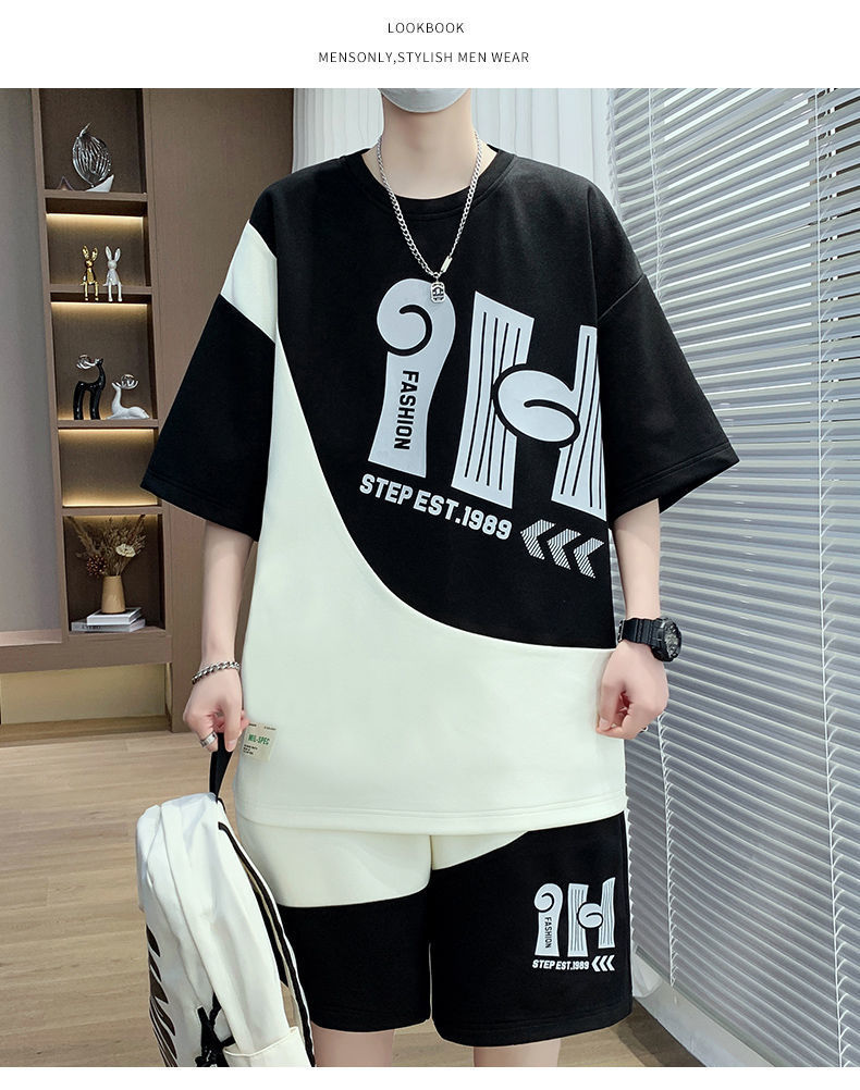 소년을위한 캐주얼 스포츠 정장 여름 느슨한 청소년 학생 티셔츠 트렌디 한 반팔 반바지 세트