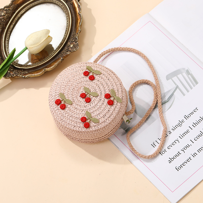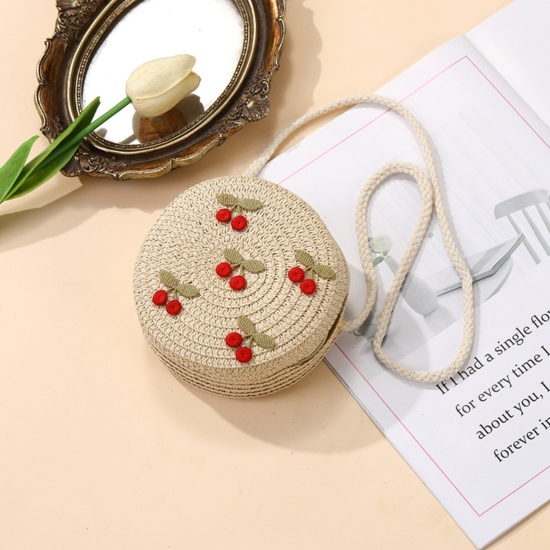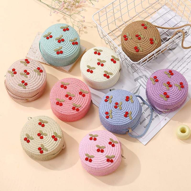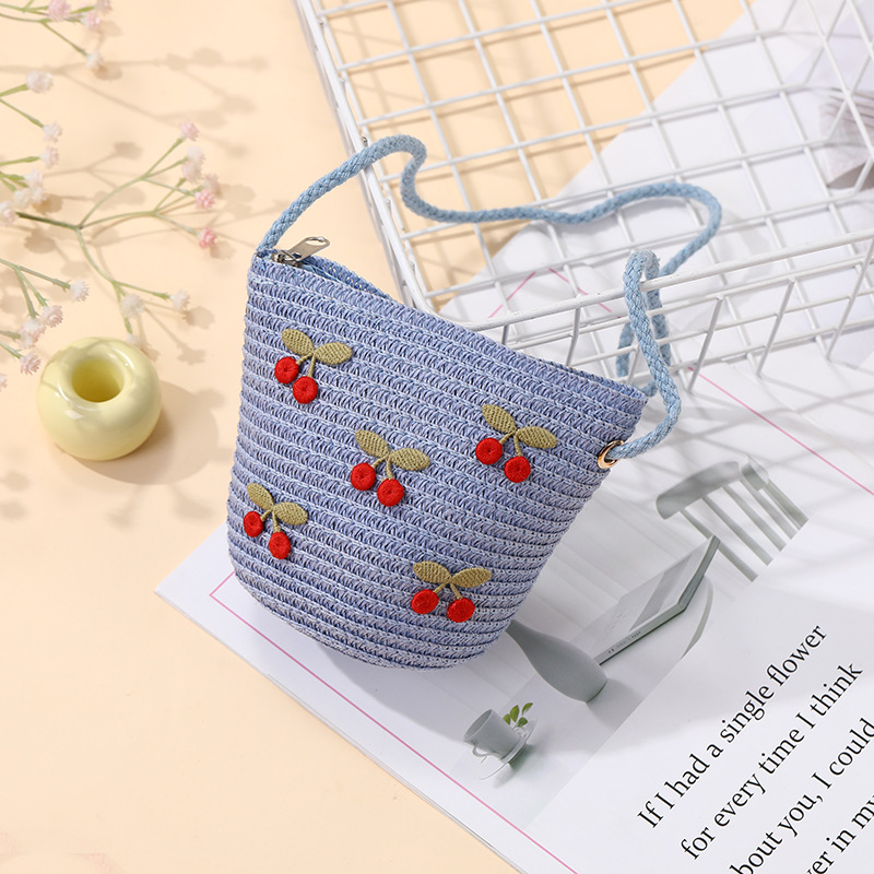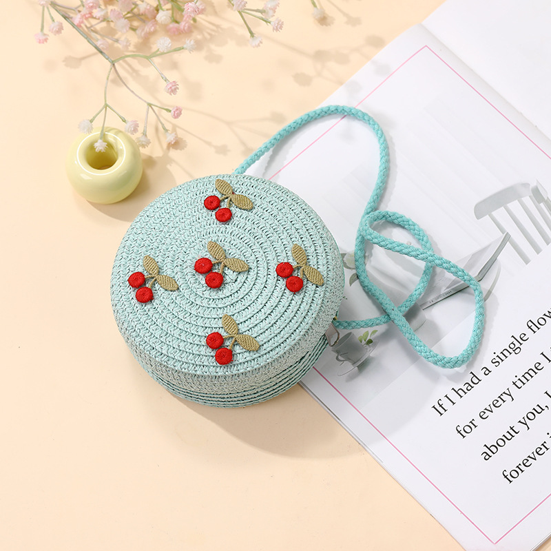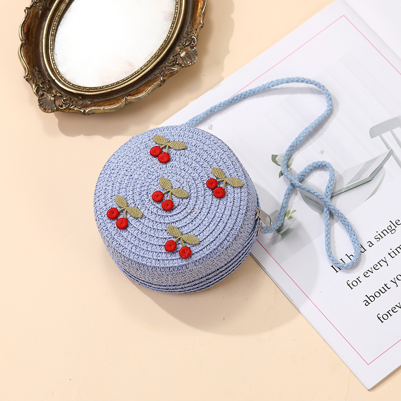 • 하늘색 - 작은 원형 가방 작은 체리 - 크기 12cm
