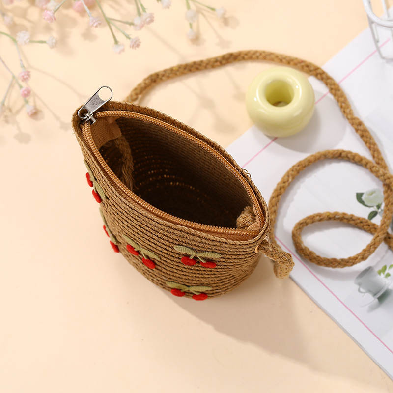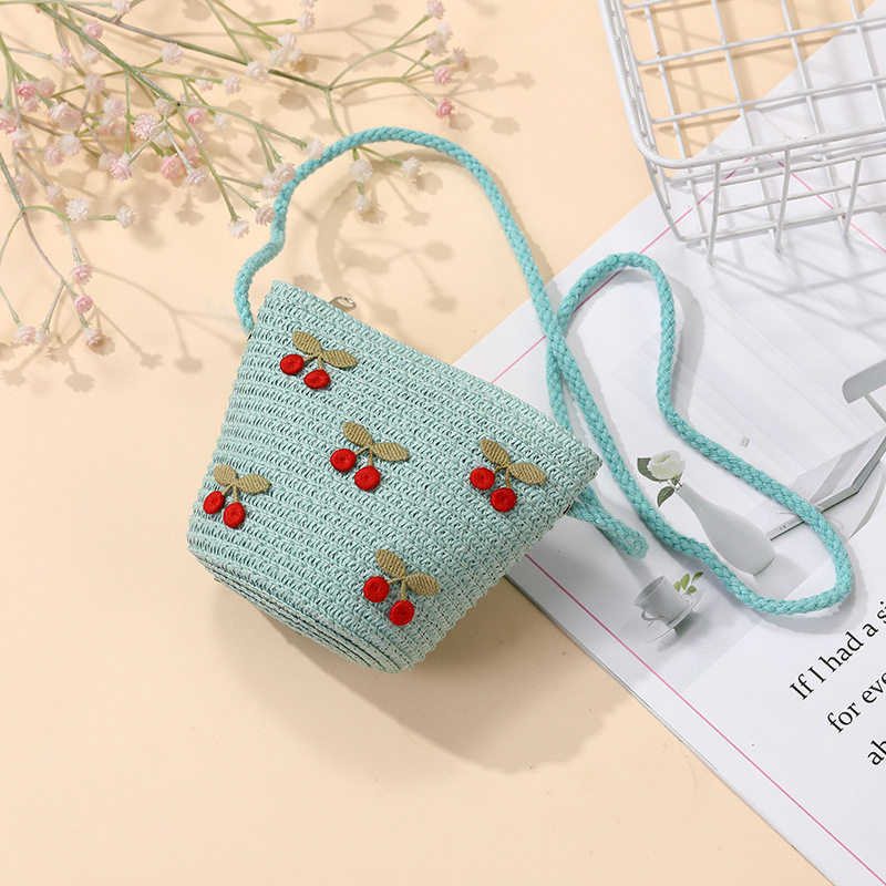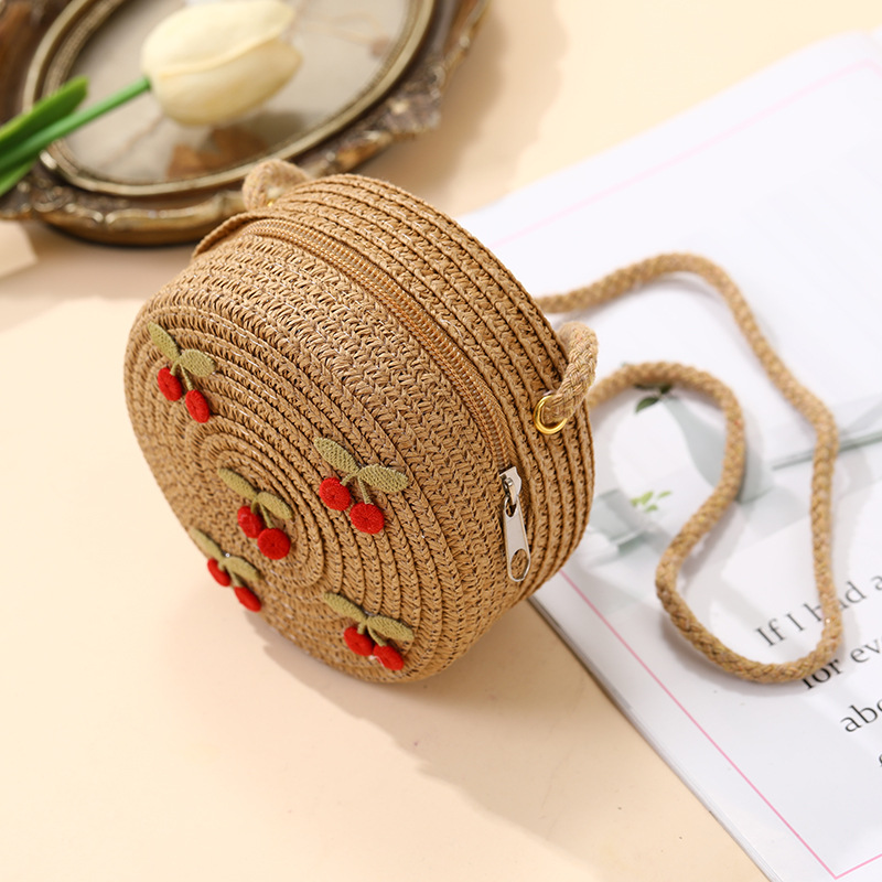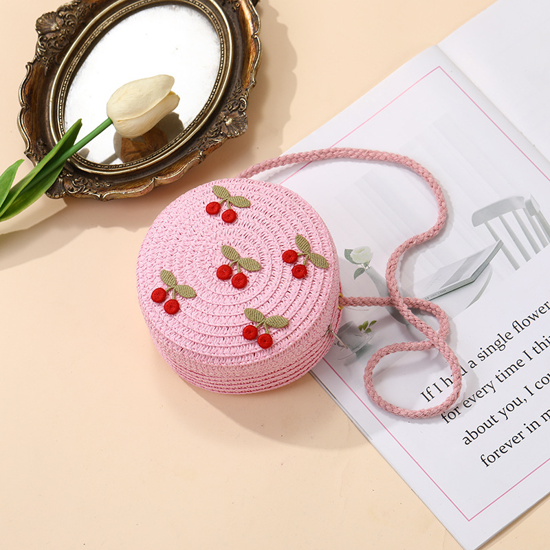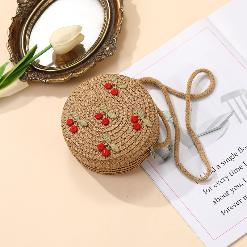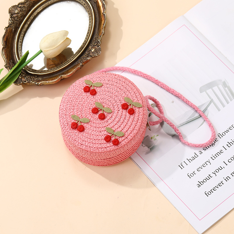 • 하늘색 - 작은 원형 가방 작은 체리 - 크기 12cm