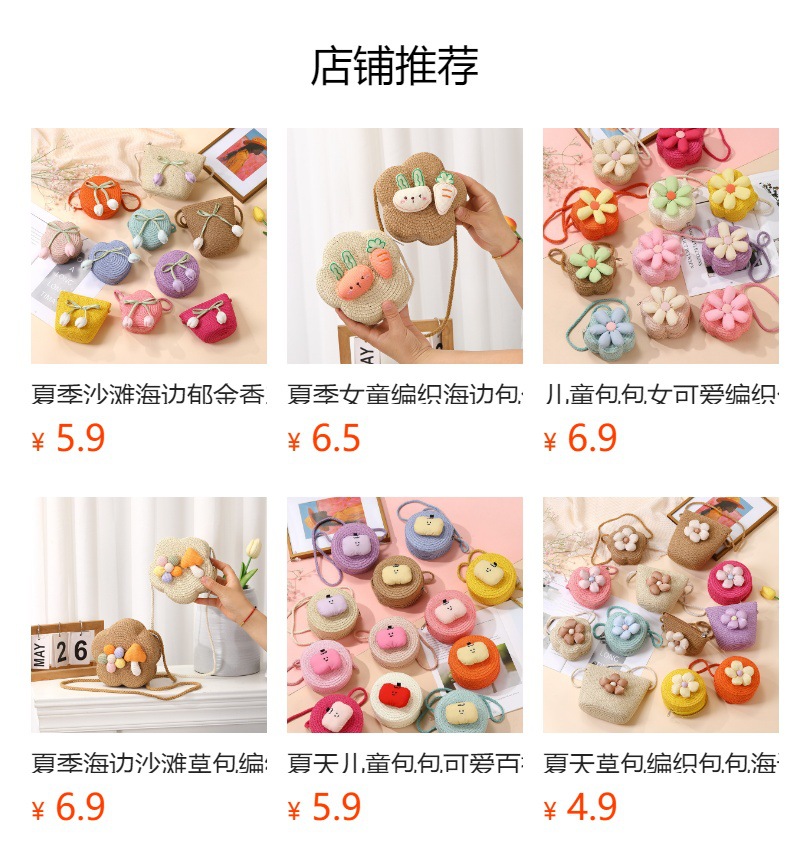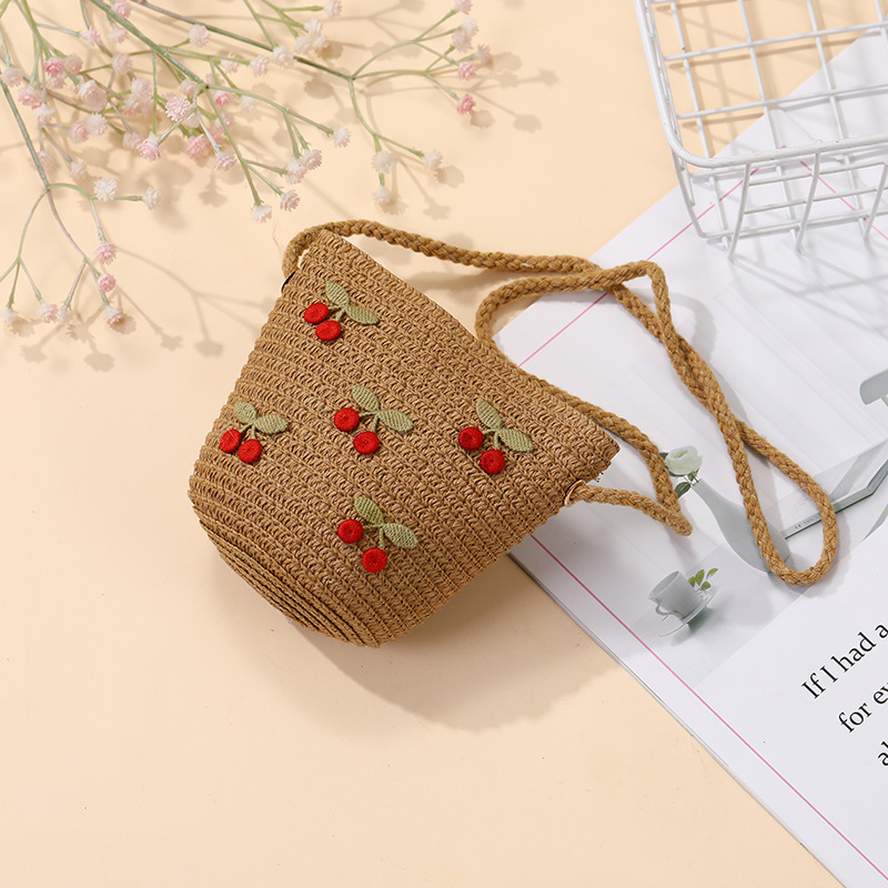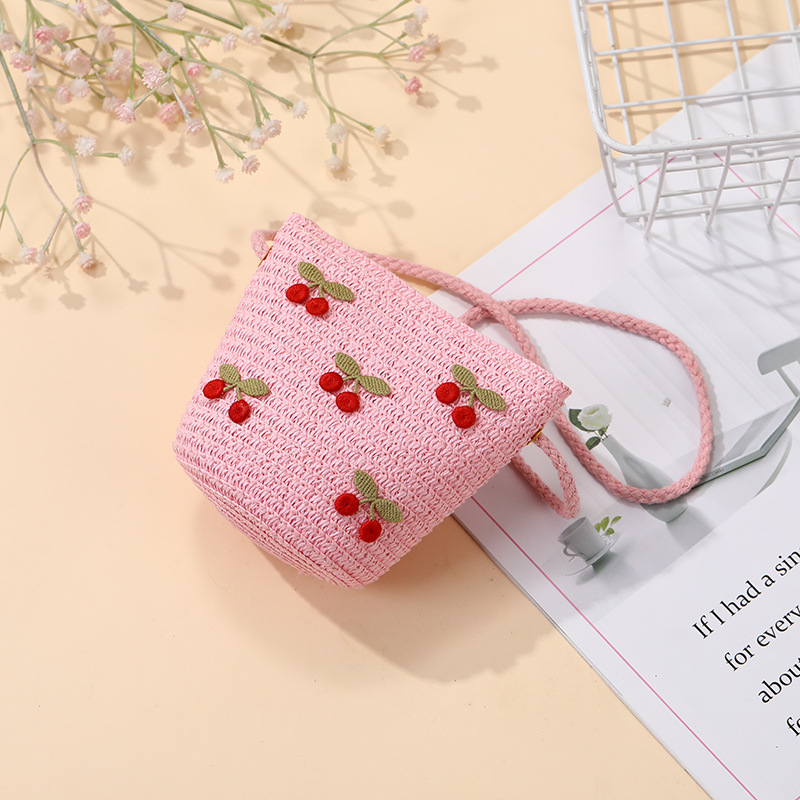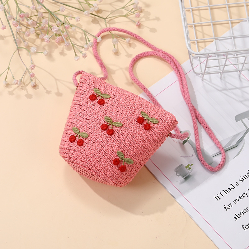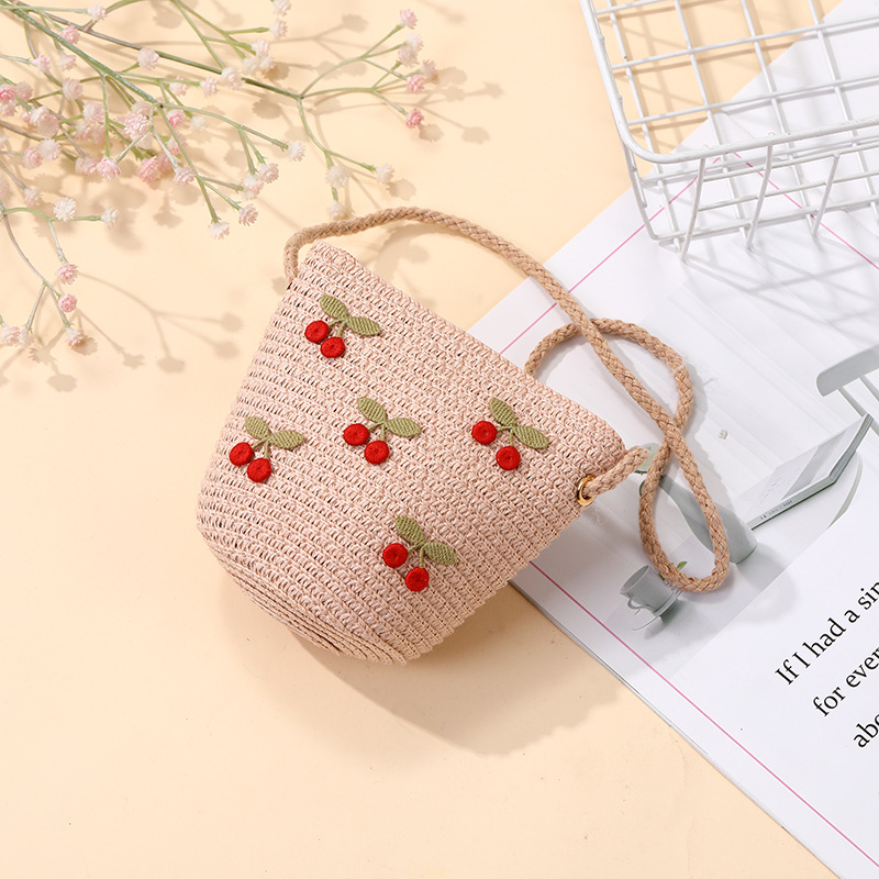 여름에 어울리는 짠 가방, 귀여운 소녀 해변 꽃 밀짚 가방, 스커트가 달린 어린이 크로스백스토어 가기