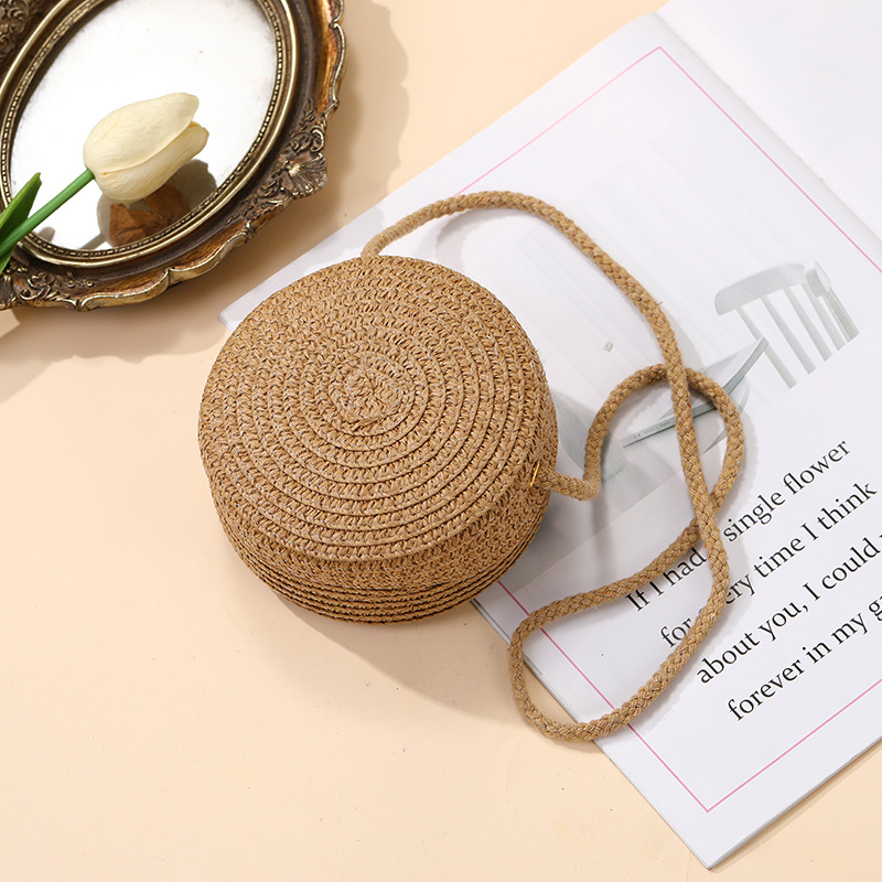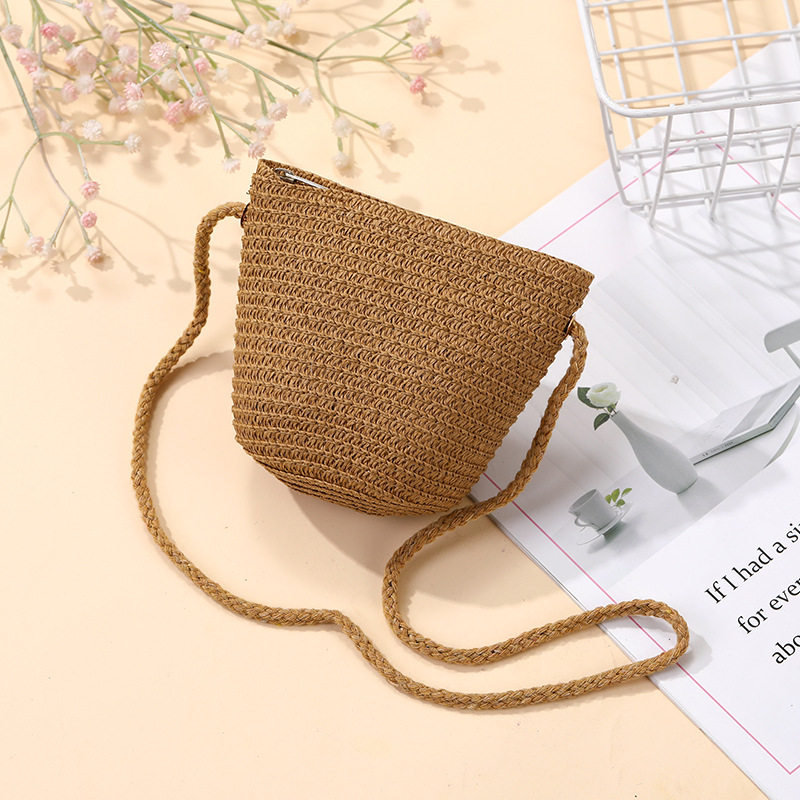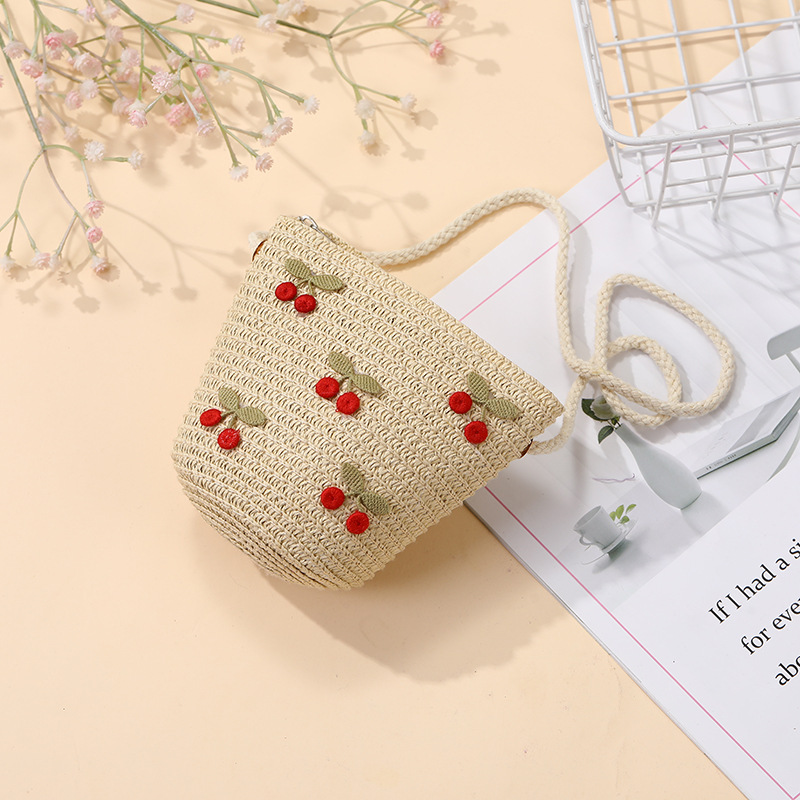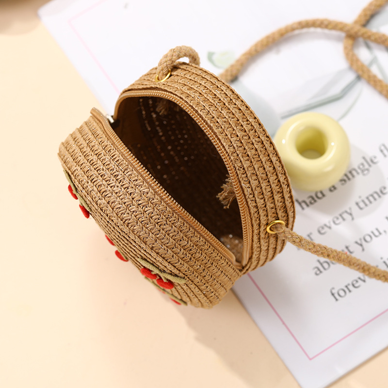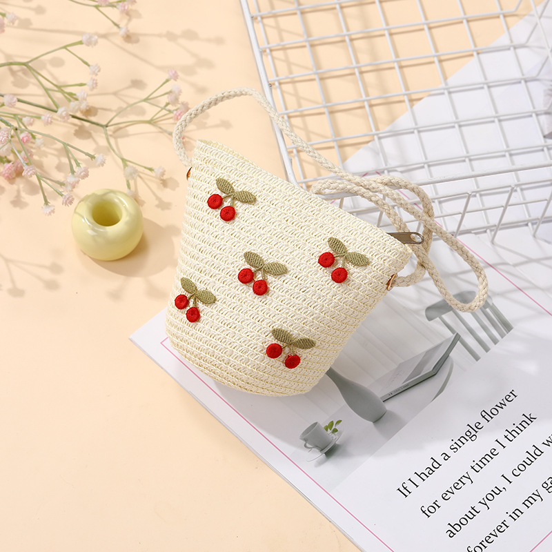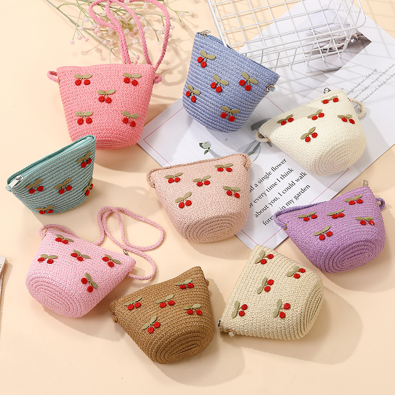 여름에 어울리는 짠 가방, 귀여운 소녀 해변 꽃 밀짚 가방, 스커트가 달린 어린이 크로스백