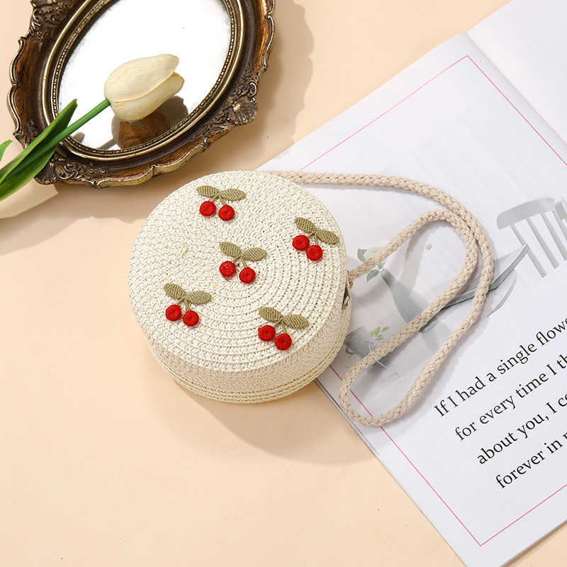 • 흰색 - 작은 원형 가방 작은 체리 - 크기 12cm