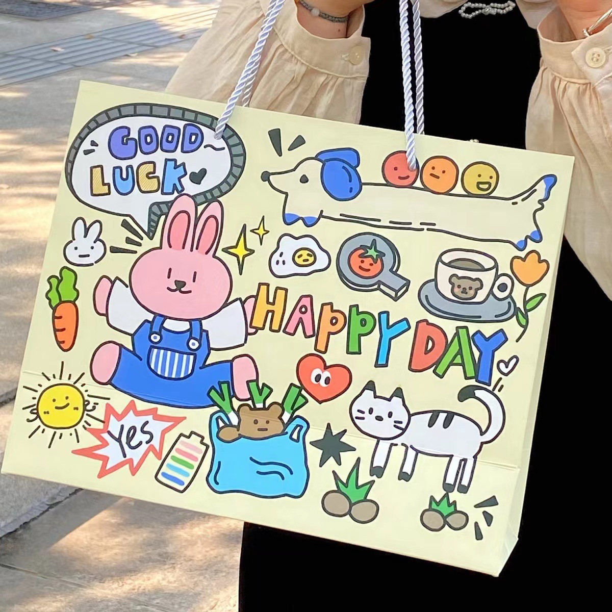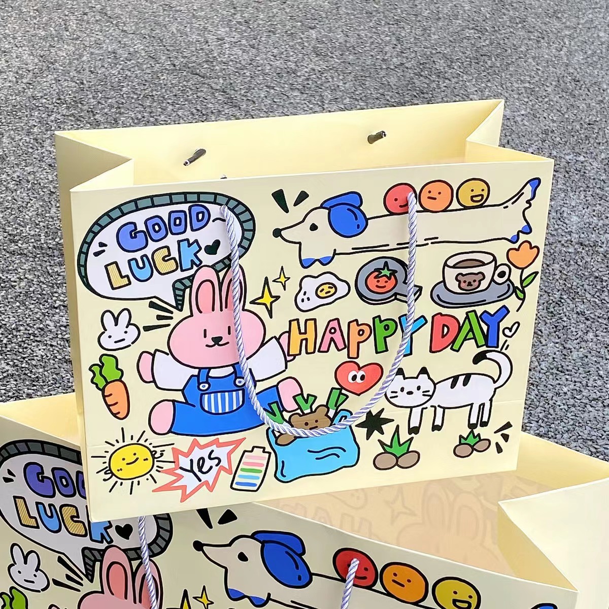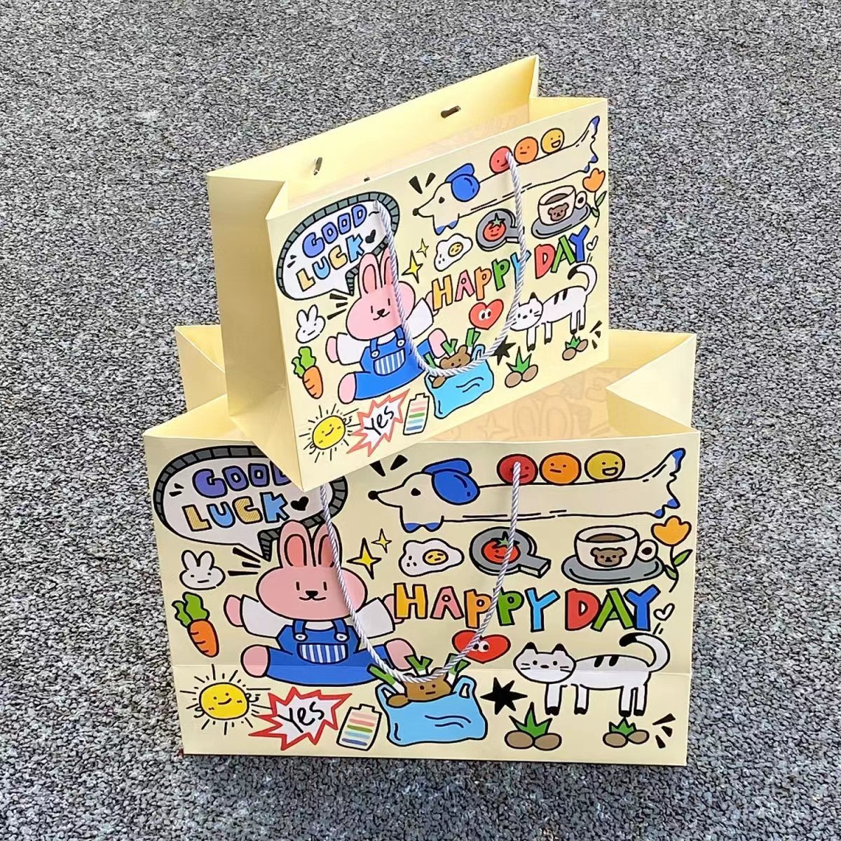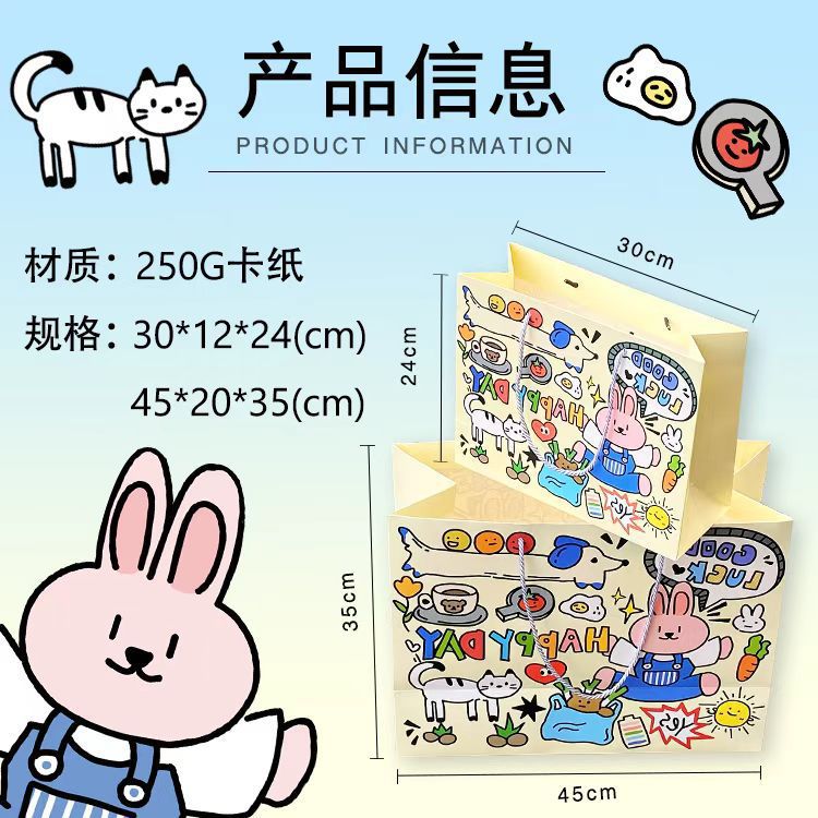 귀여운 만화 생일 축하 카드 종이 두꺼운 선물 가방 귀여운 핸드백 저장 가방 대형 선물 가방 도매