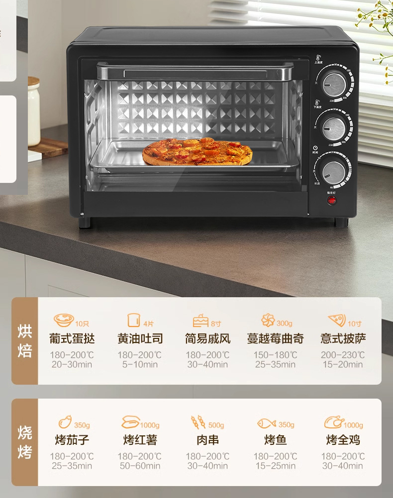 새로운 전기오븐 가정용 미니 전자동 베이킹 오븐 수출용 다기능 대용량 오븐 치킨구이용 22L스토어 가기