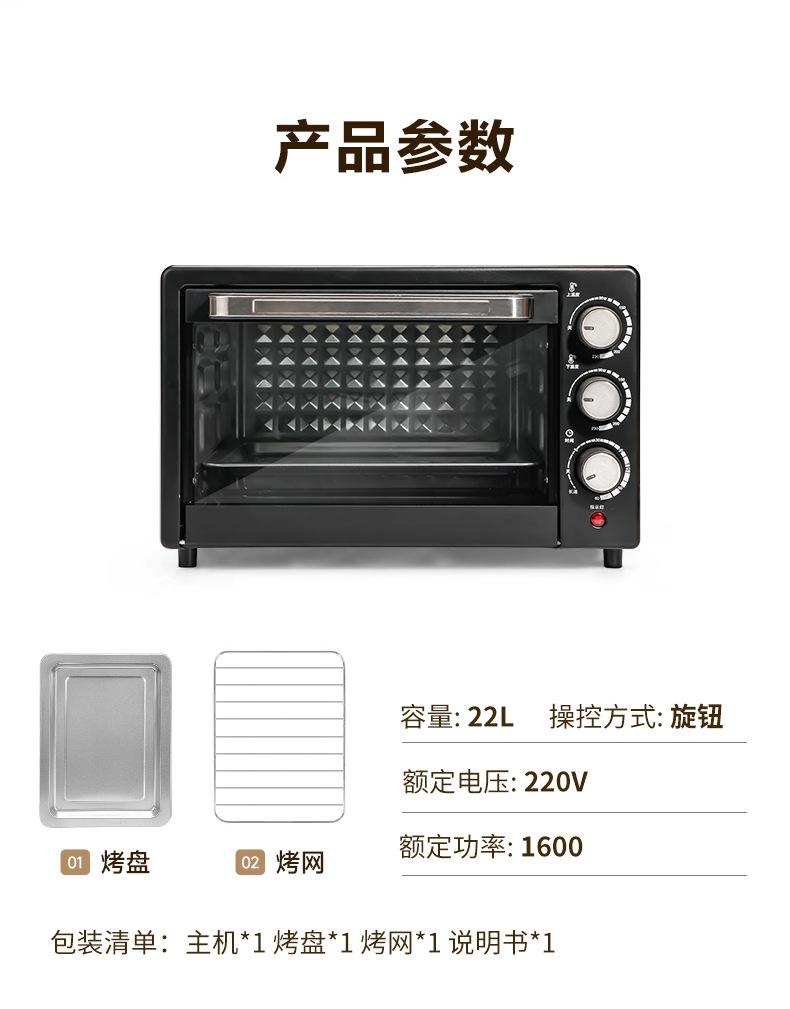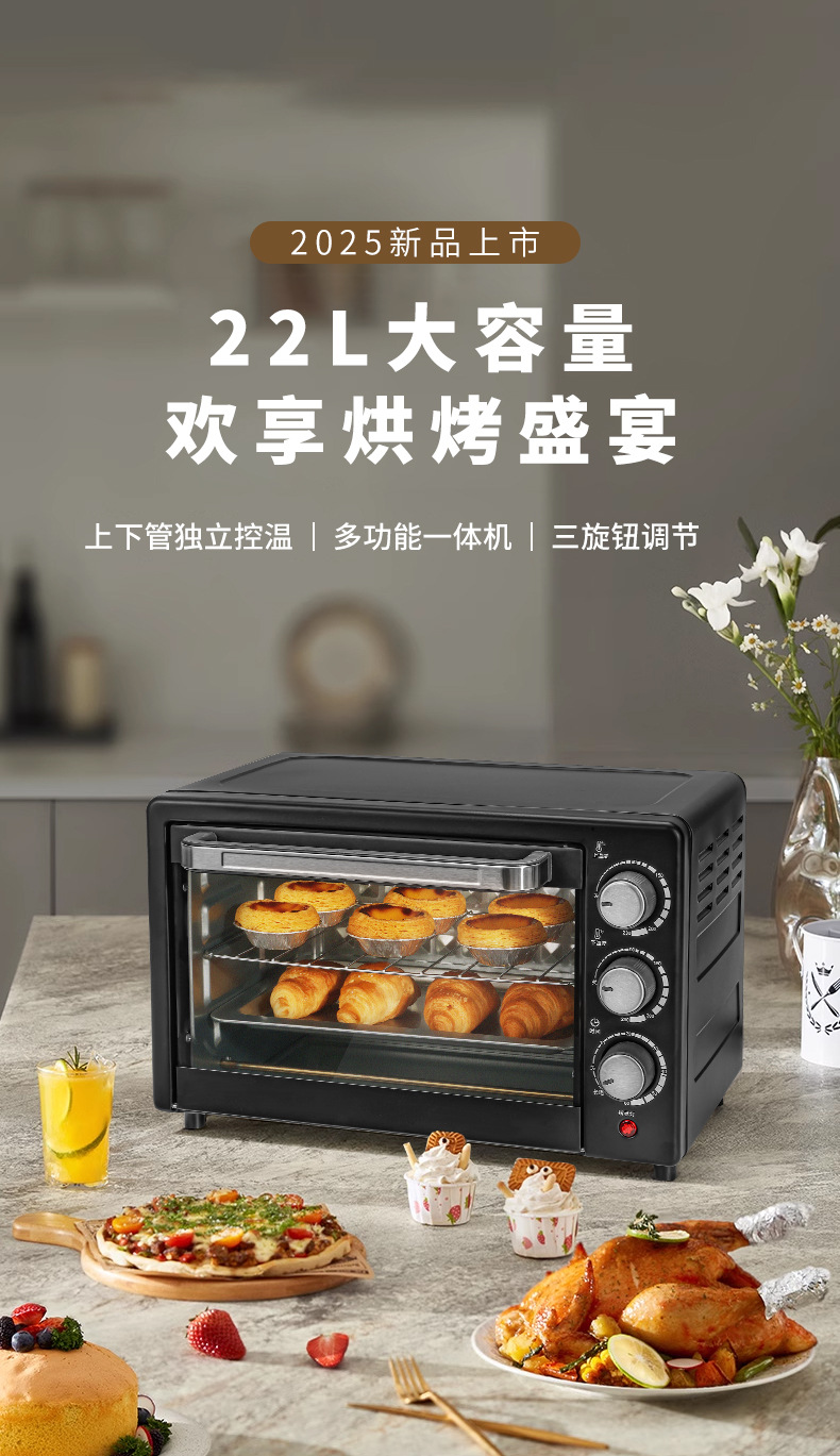새로운 전기오븐 가정용 미니 전자동 베이킹 오븐 수출용 다기능 대용량 오븐 치킨구이용 22L