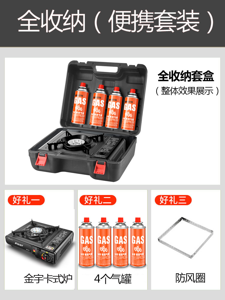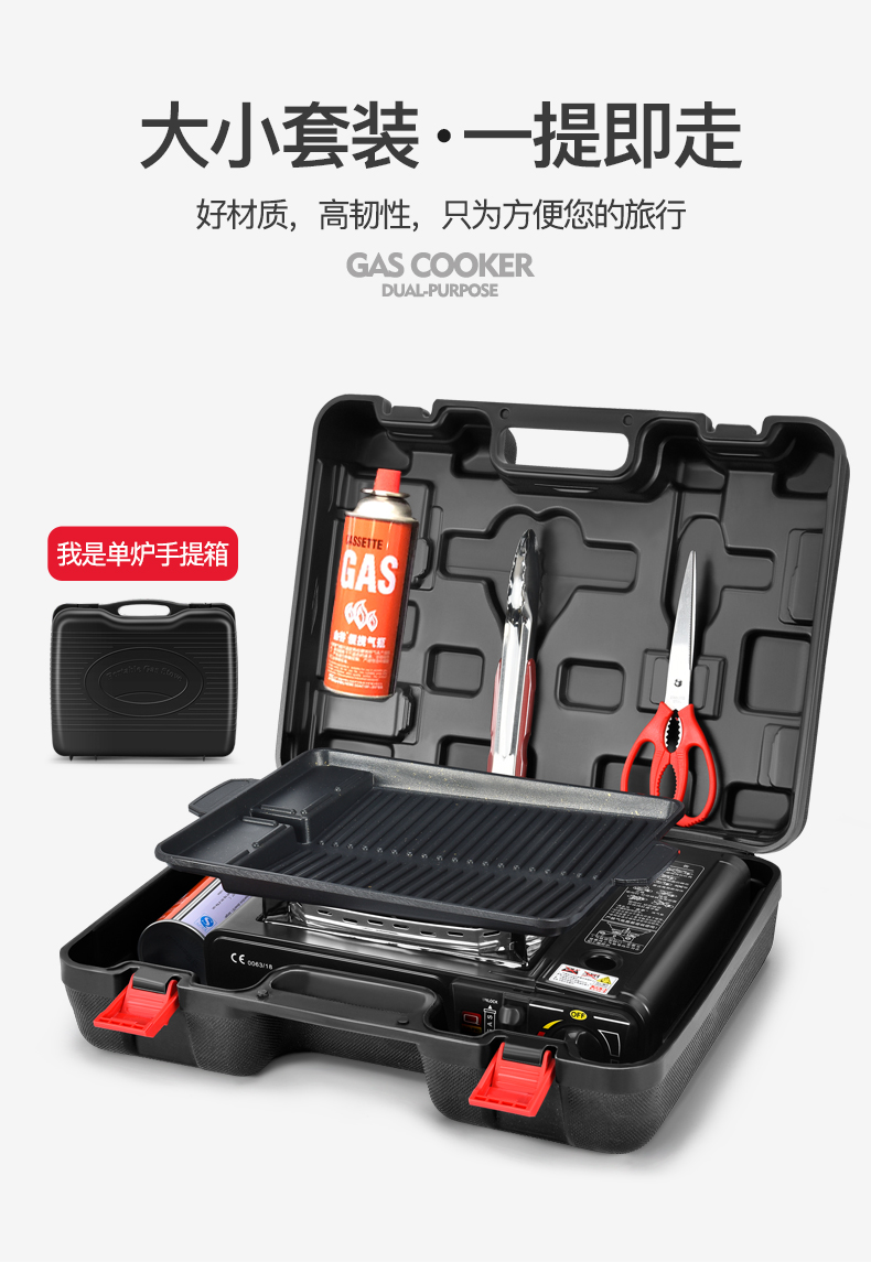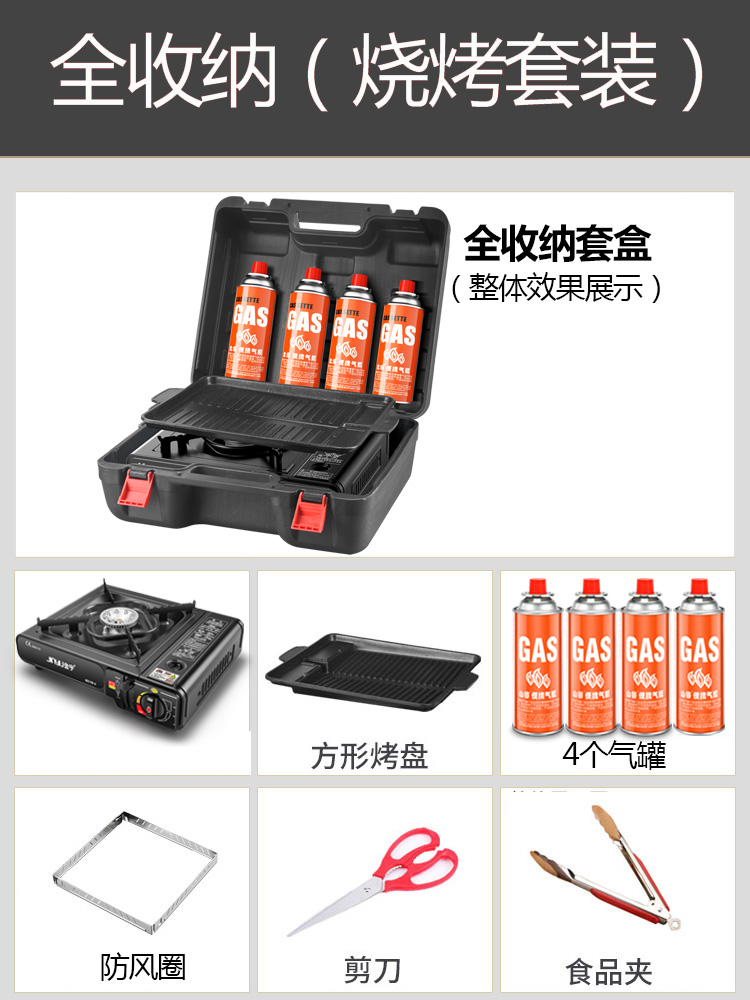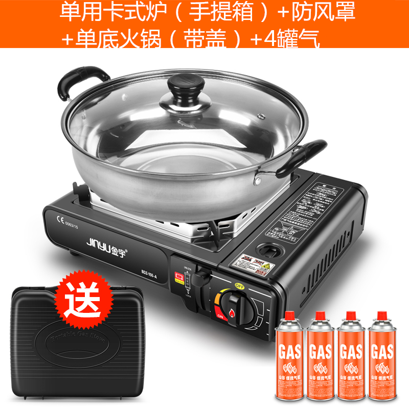 • 일회용 + 방풍커버 + 단일 바닥 냄비 + 가스 4병 + 여행가방