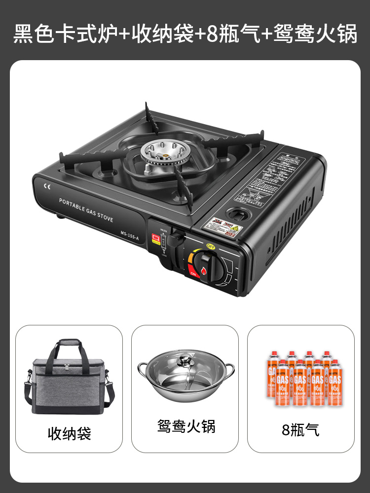 • 블랙 카세트 스토브 + 보관 가방 + 가스 8병 + 원양 냄비