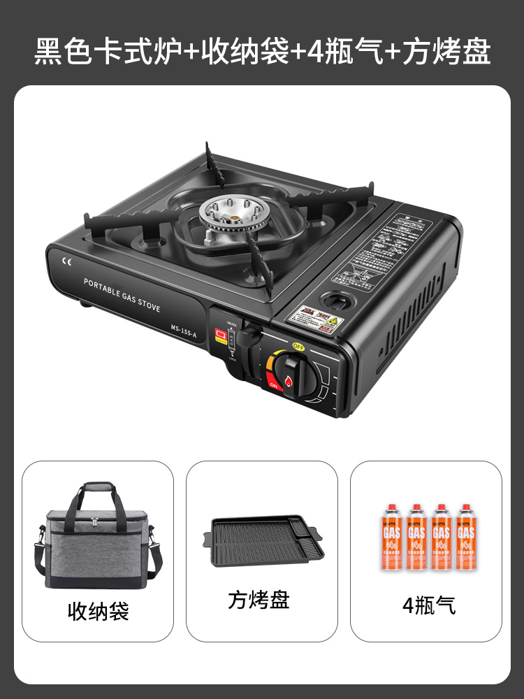 • 블랙 카세트 스토브 + 보관 가방 + 가스 4병 + 사각 베이킹 팬