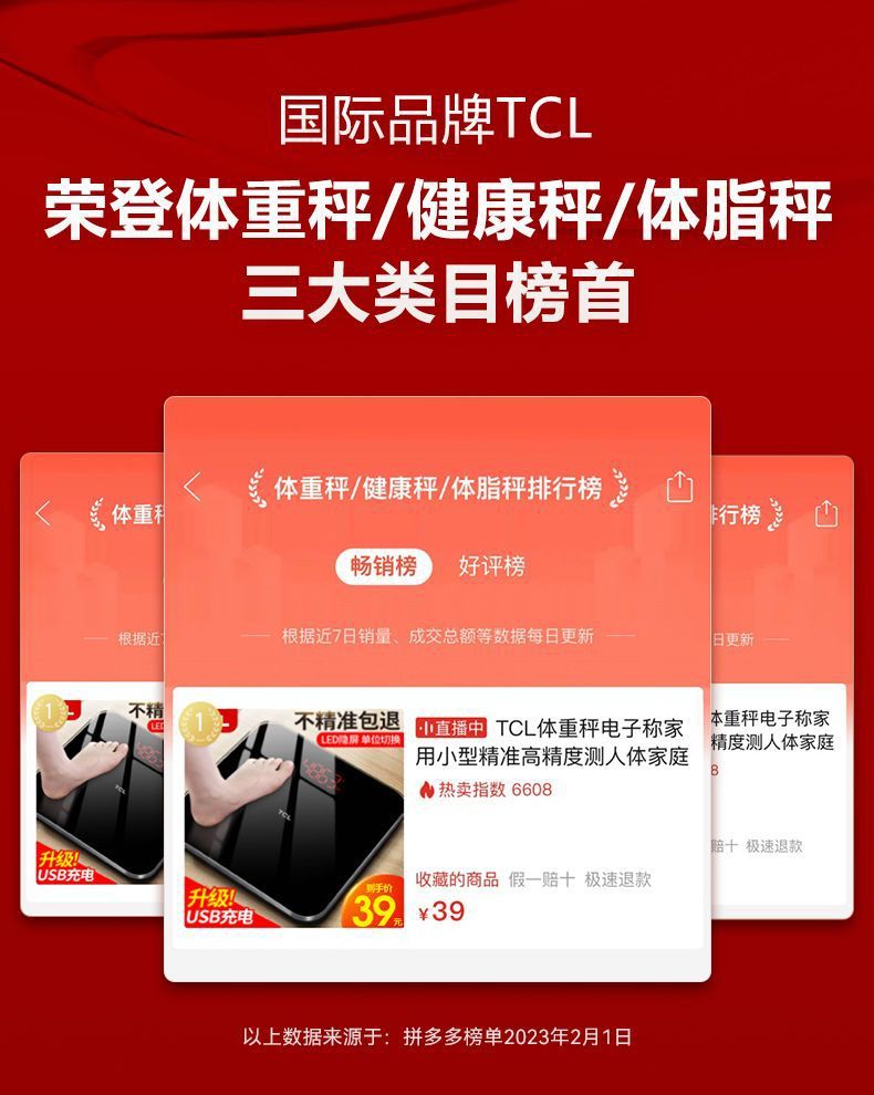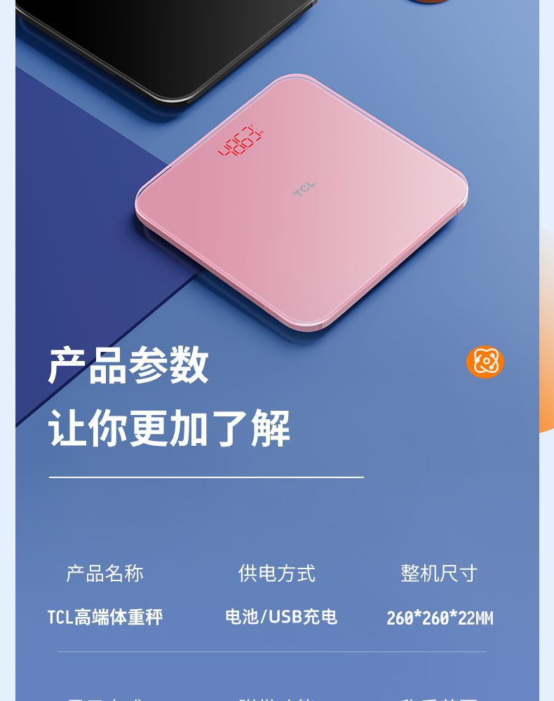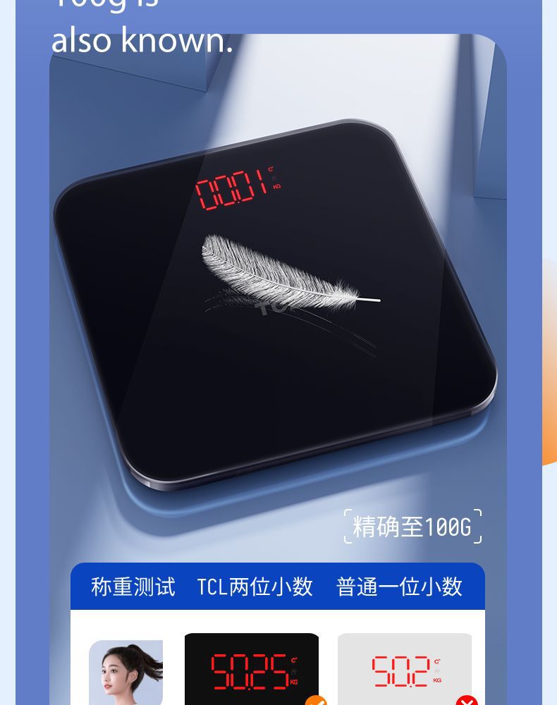 TCL 체중계 전자 저울 가정용 소형 정확한 고정밀 인체 측정 가정용 내구성 충전식 저울스토어 가기