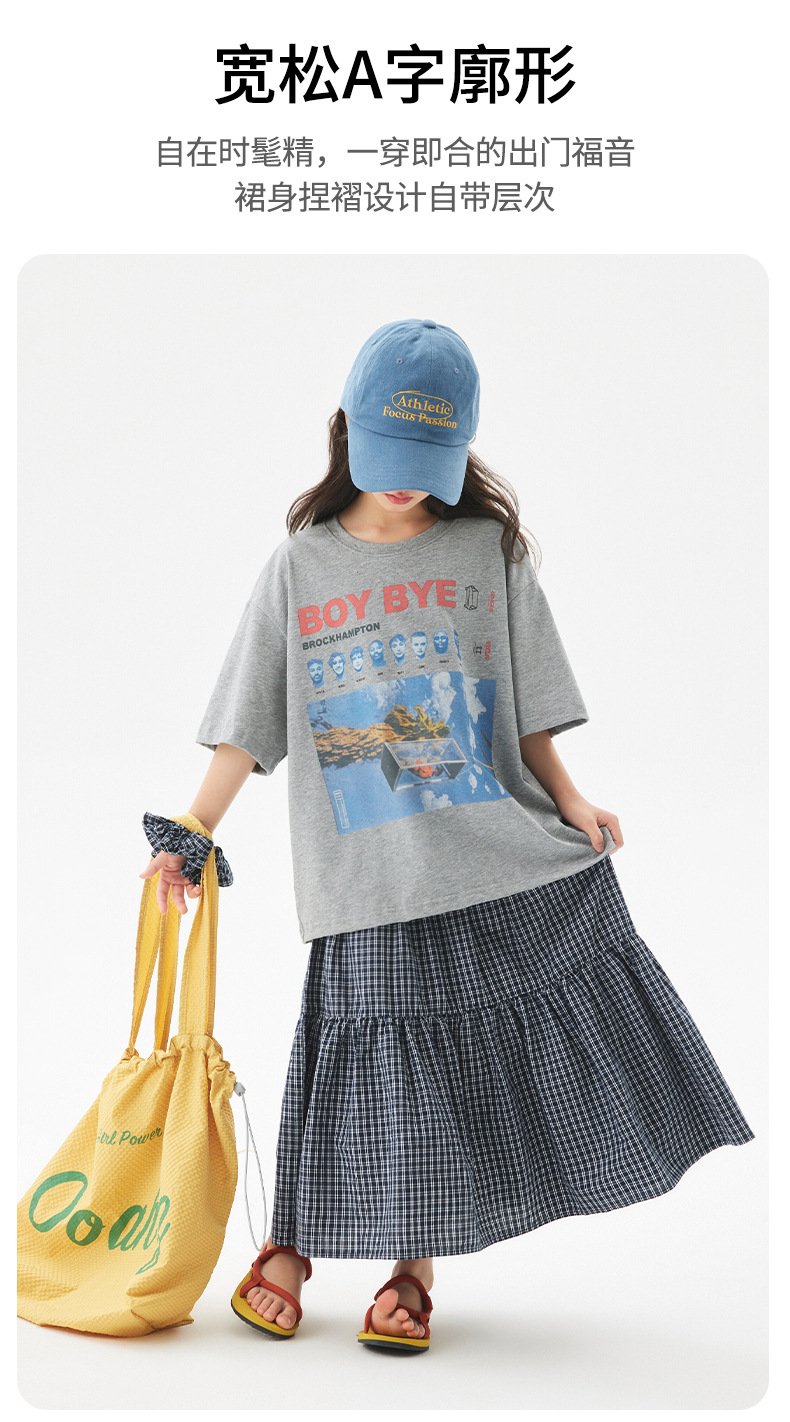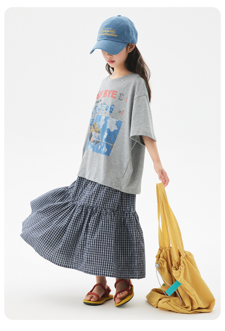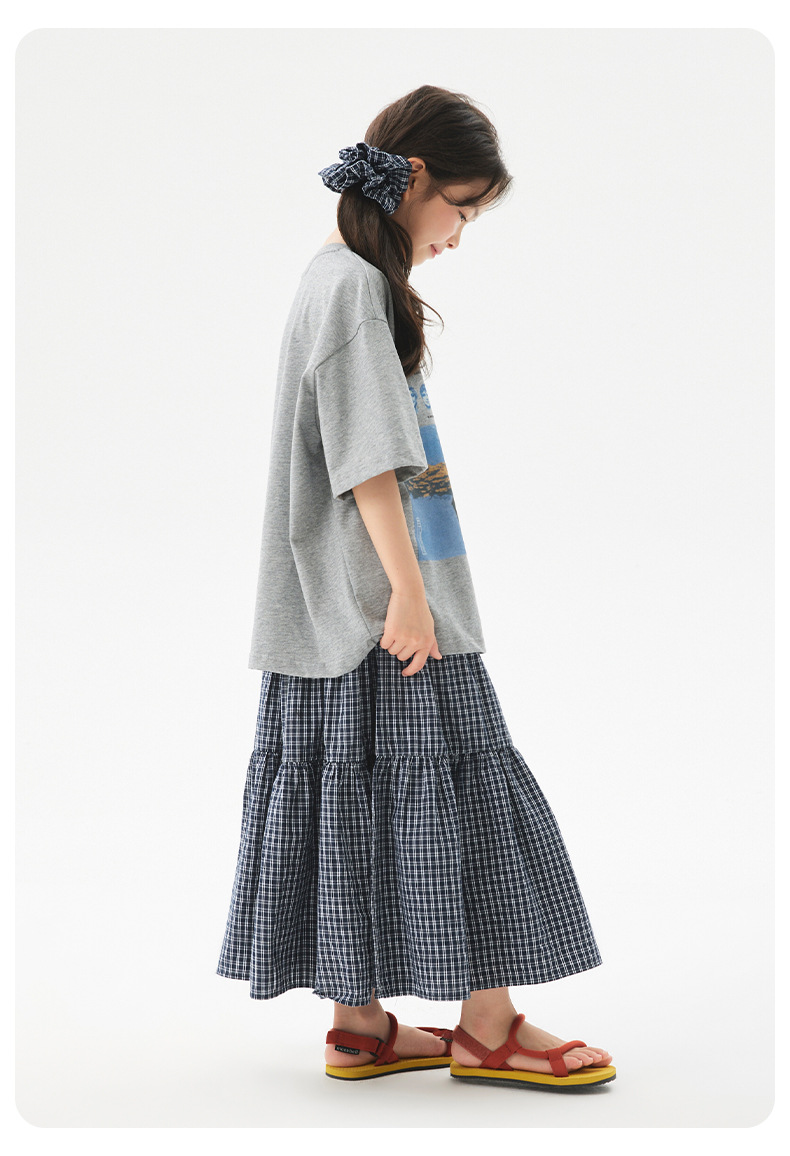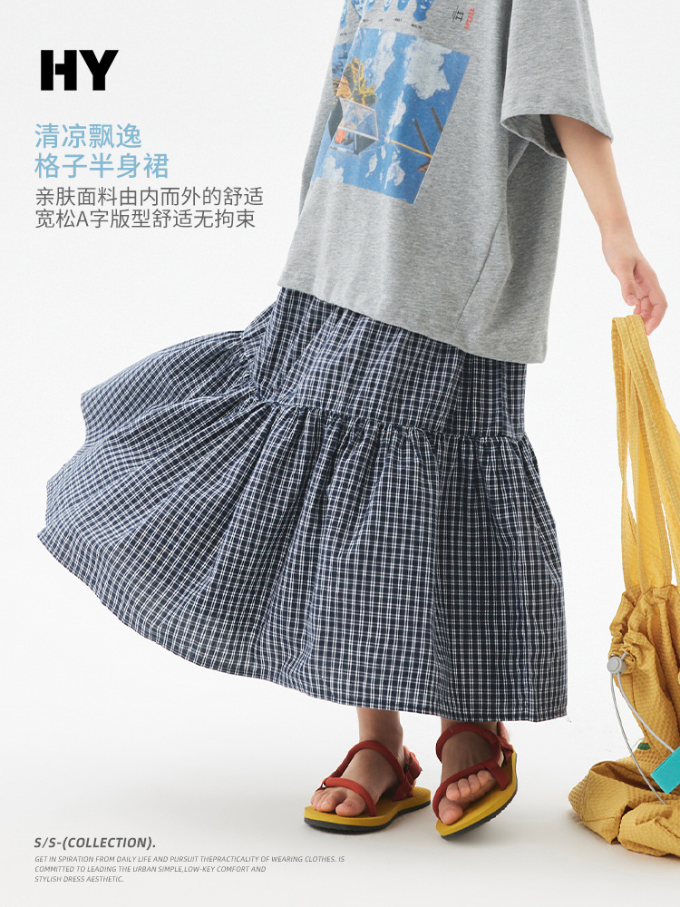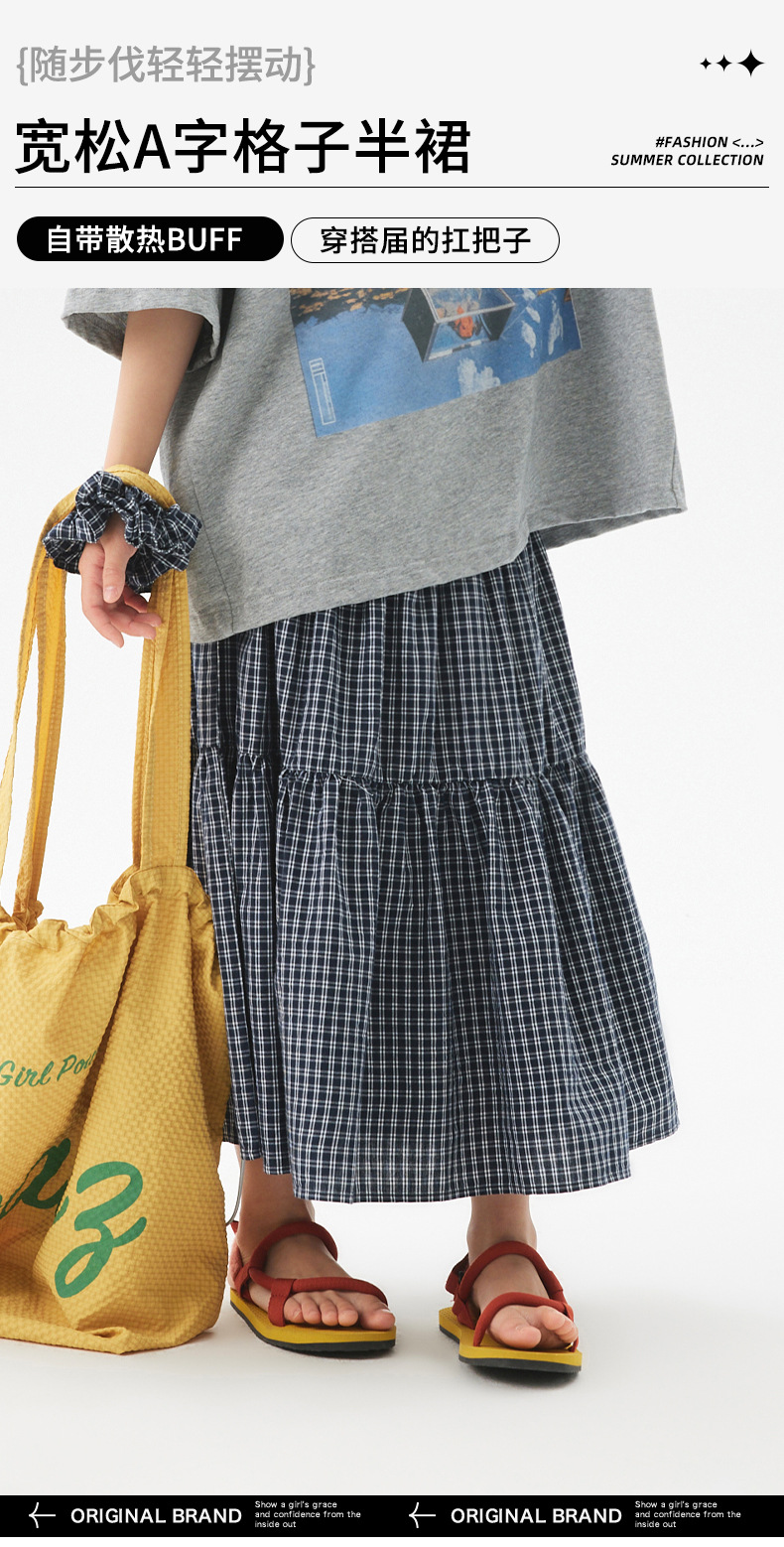 2025년 새로운 여름 스타일 미세 격자 무늬 스커트, 큰 어린이와 소녀를 위한 매칭 리본, 영국 도시 스타일 휴가 스커트스토어 가기