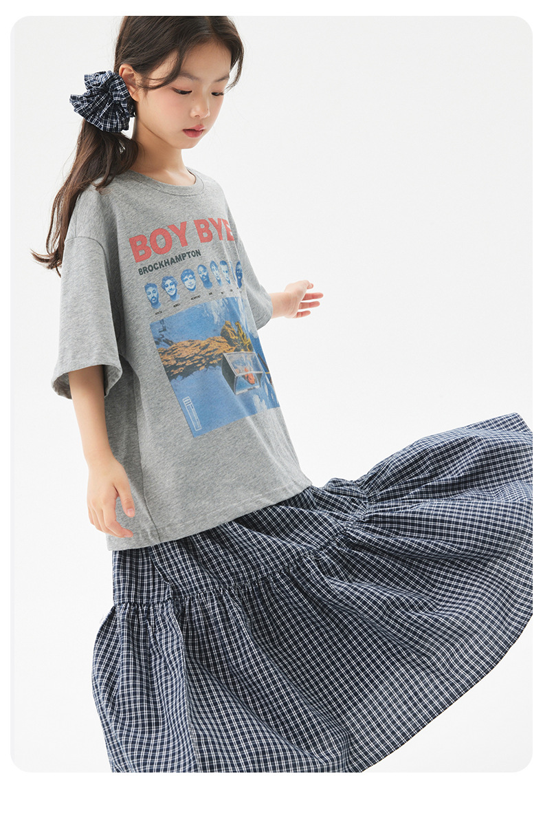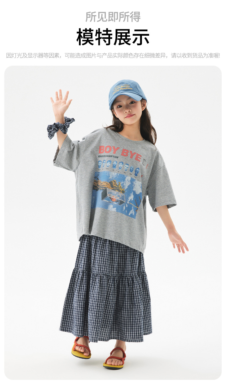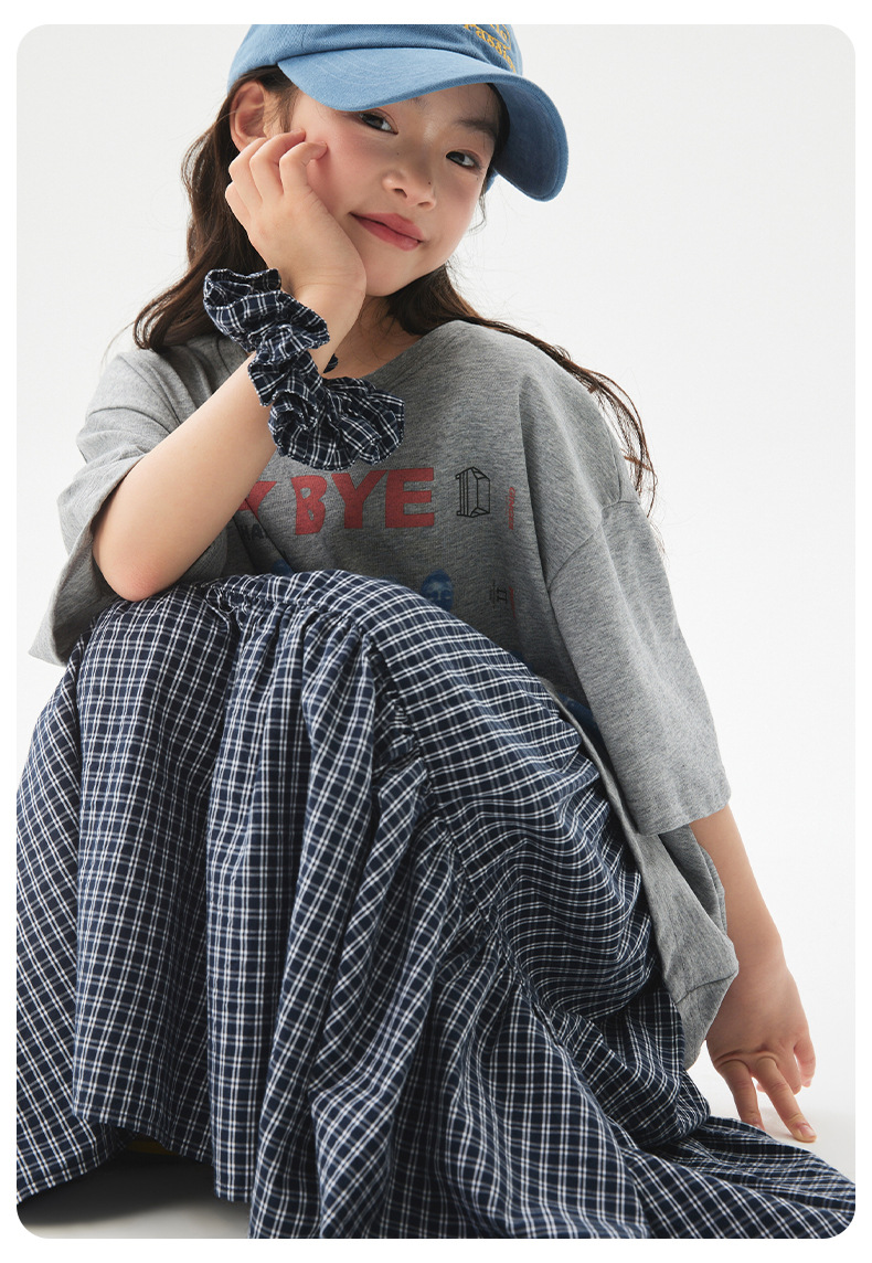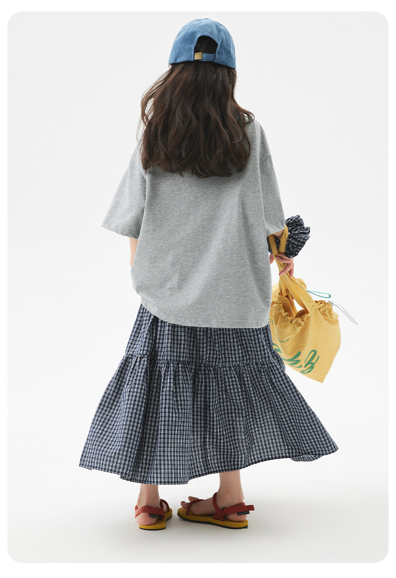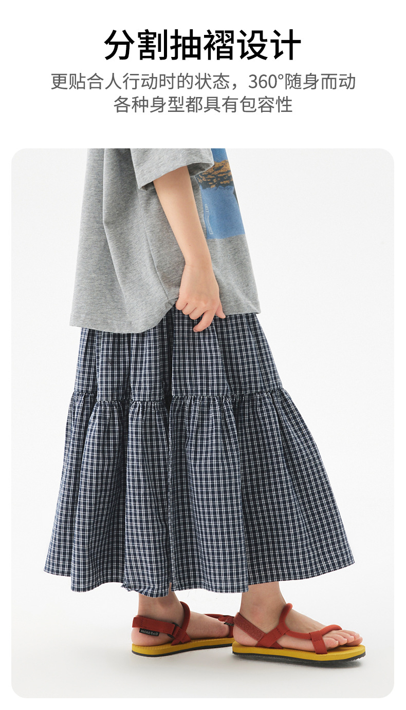 2025년 새로운 여름 스타일 미세 격자 무늬 스커트, 큰 어린이와 소녀를 위한 매칭 리본, 영국 도시 스타일 휴가 스커트스토어 가기