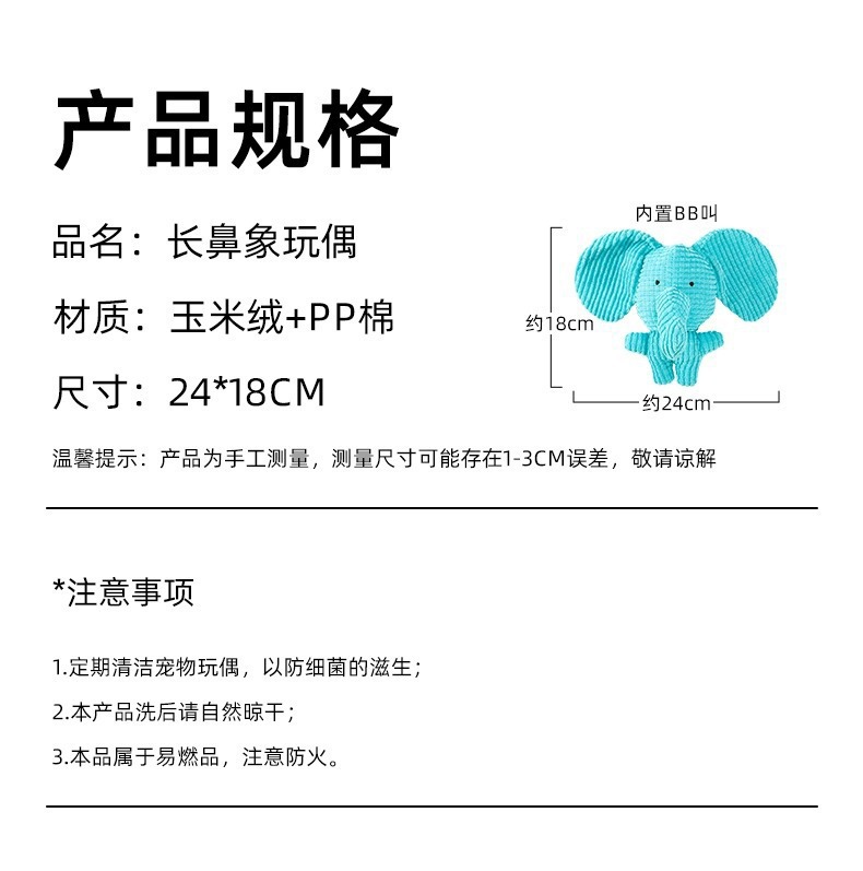 소리가 나는 강아지 장난감, 물림 방지 및 어금니 강아지, 봉제 코끼리, 자기 자극 및 지루함 해소 도구, 중소형견용 애완동물 용품스토어 가기