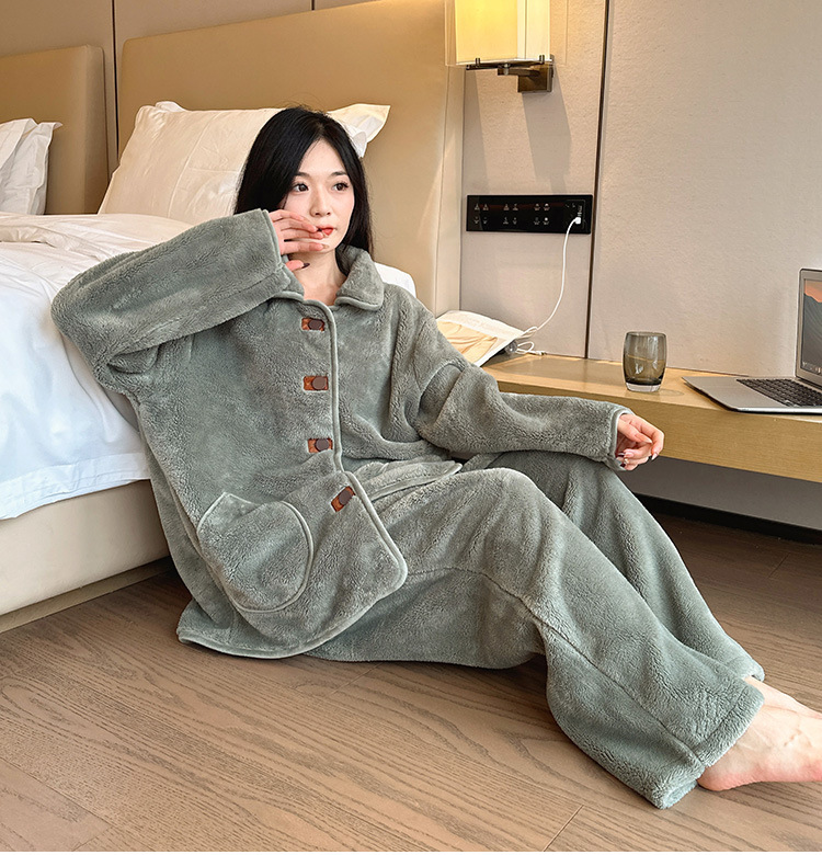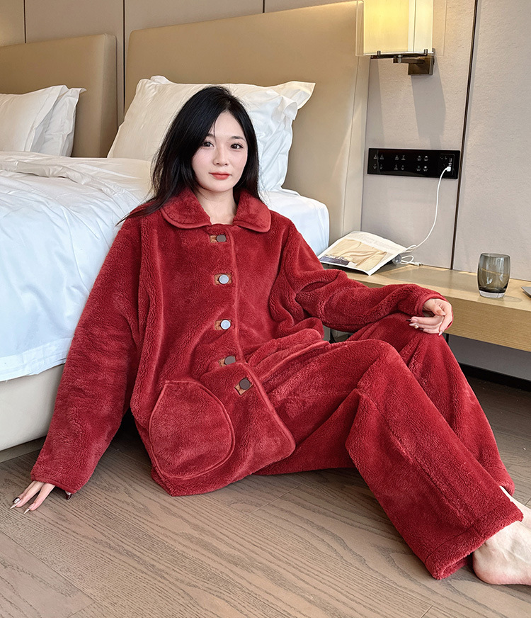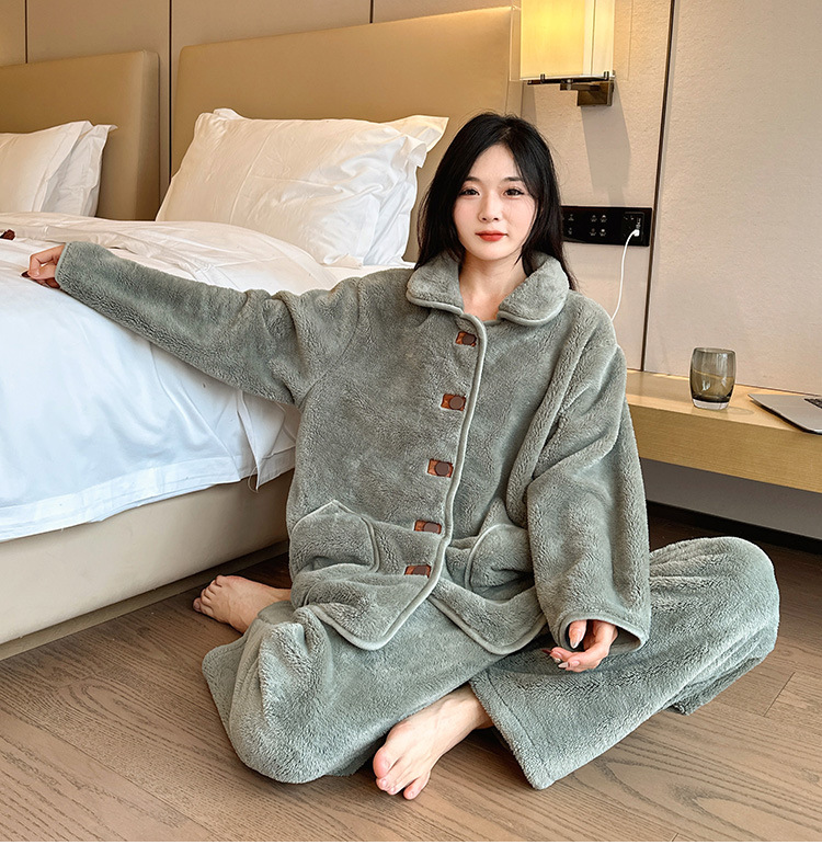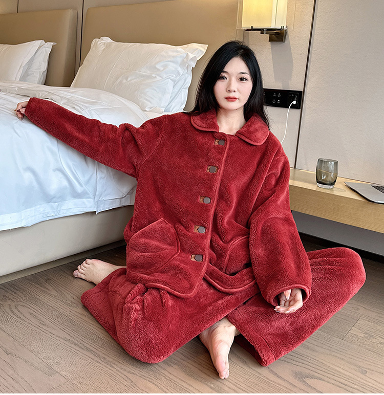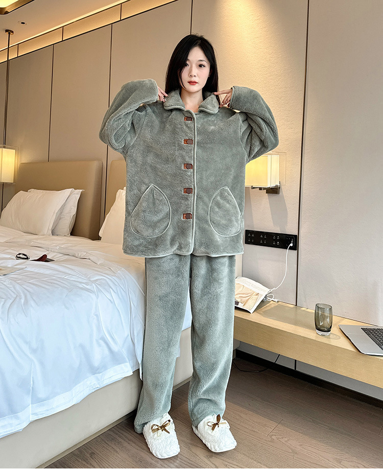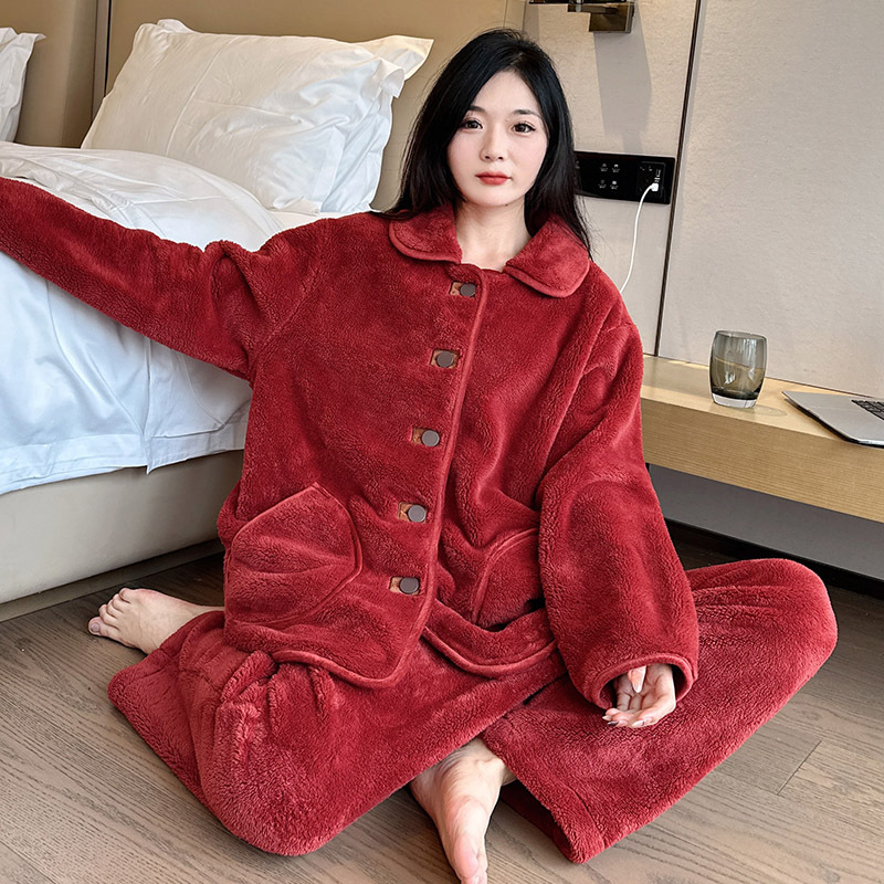 겨울 플러스 사이즈 따뜻한 잠옷, 눈송이 벨벳 슈트, 여성용 캐주얼 잠옷, 겨울에 밖에서 입을 수 있는 벨벳 두꺼운 가정복스토어 가기