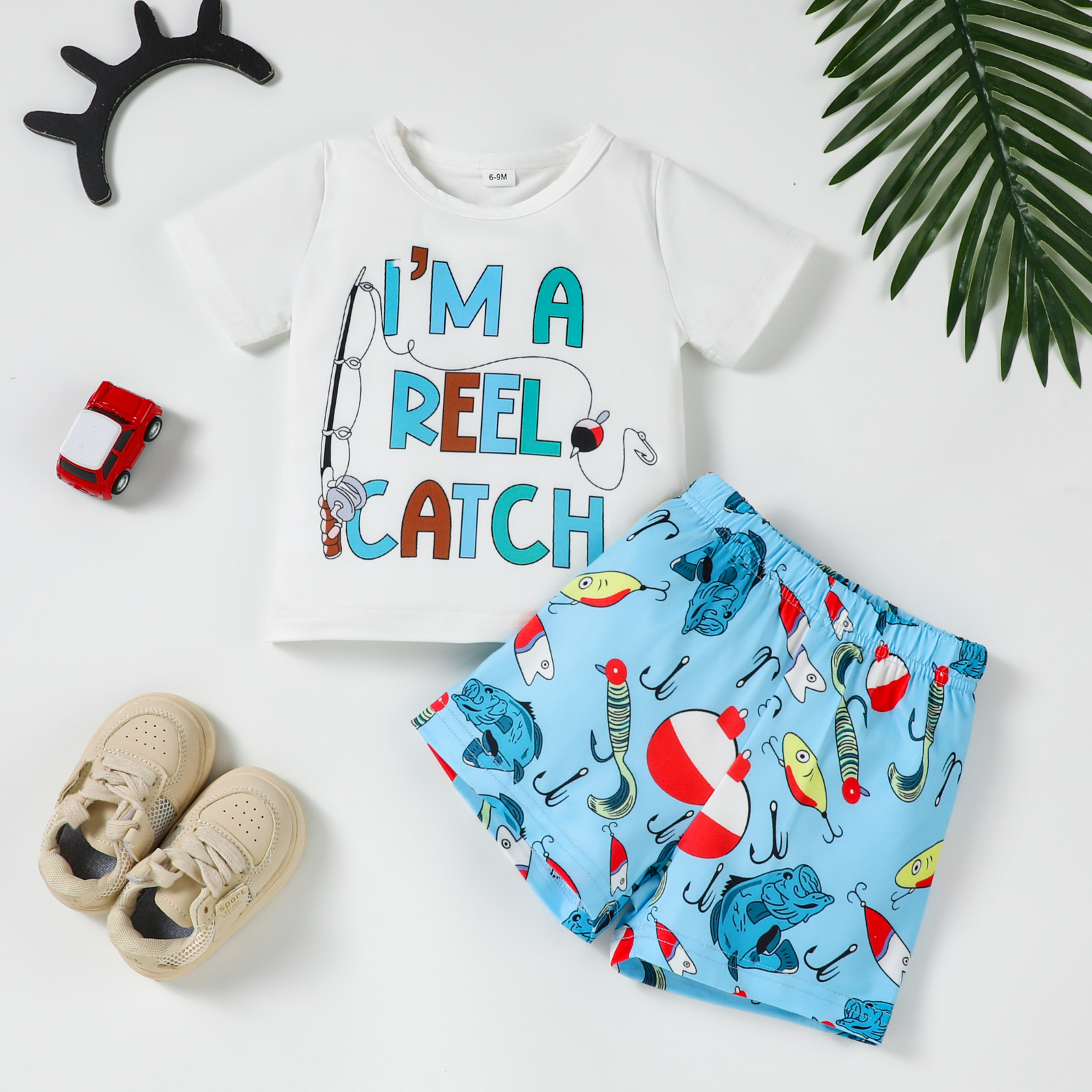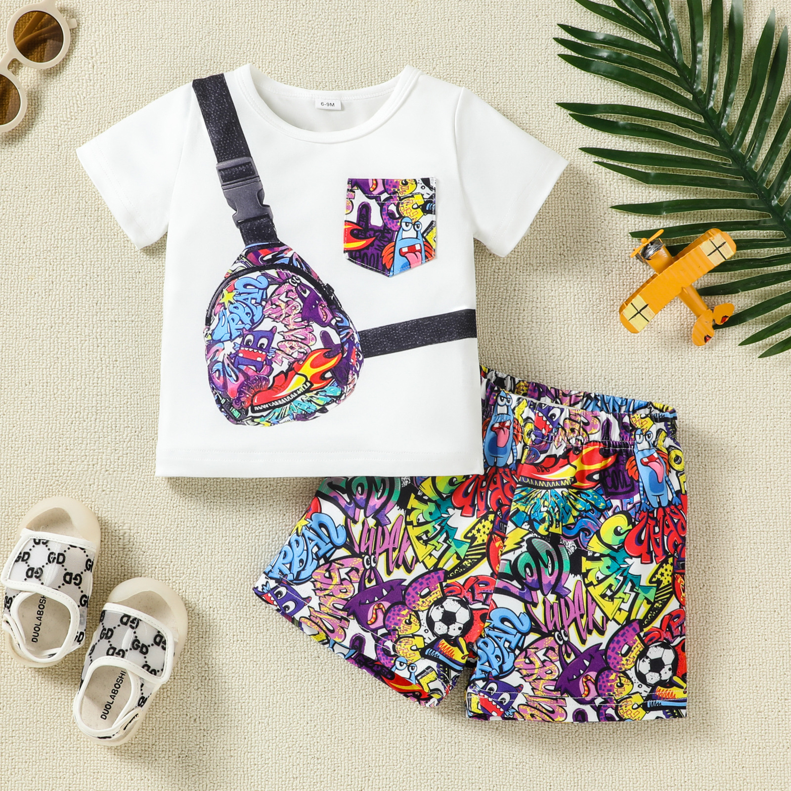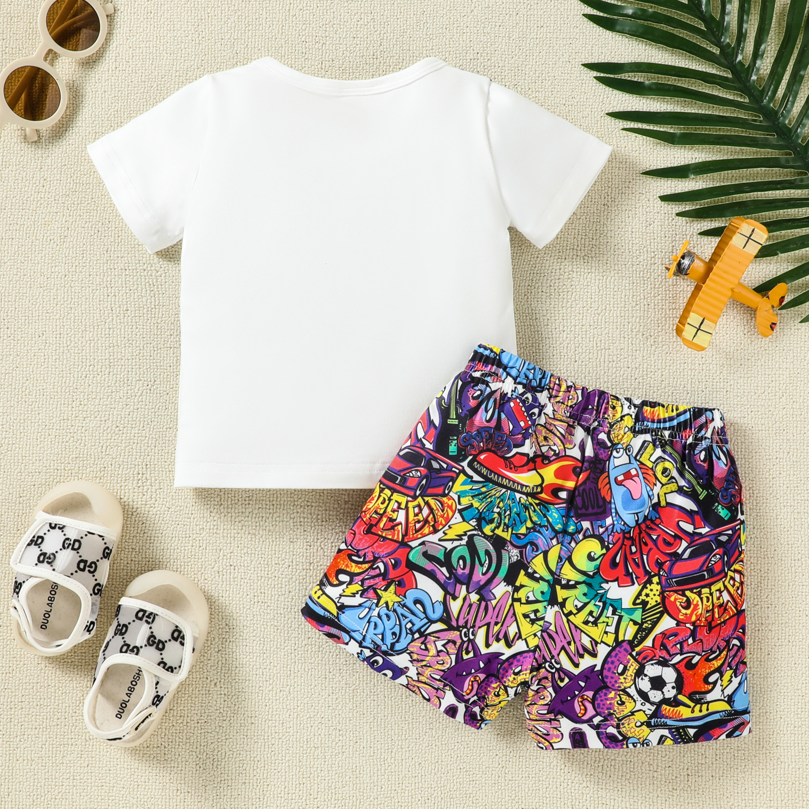 2025 대외 무역 유아 소년 편지 만화 프린트 티셔츠 반바지 정장 투피스 스포츠 슈트