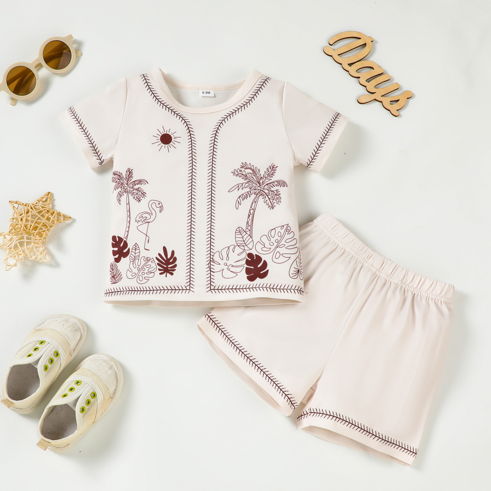 2025 대외 무역 유아 소년 편지 만화 프린트 티셔츠 반바지 정장 투피스 스포츠 슈트스토어 가기