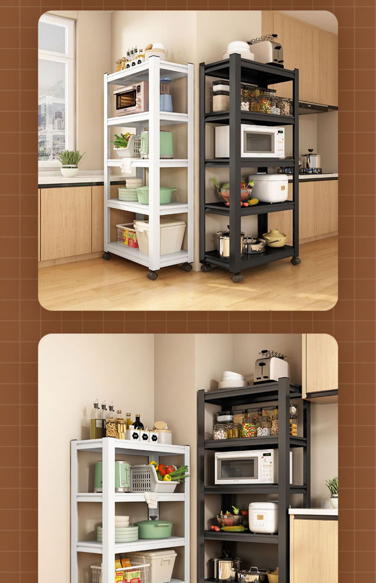 이동식 주방 수납 선반 바닥에서 천장까지 다층 수납 선반 전자 레인지 수납 선반 바퀴가 달린 가정용 철제 선반