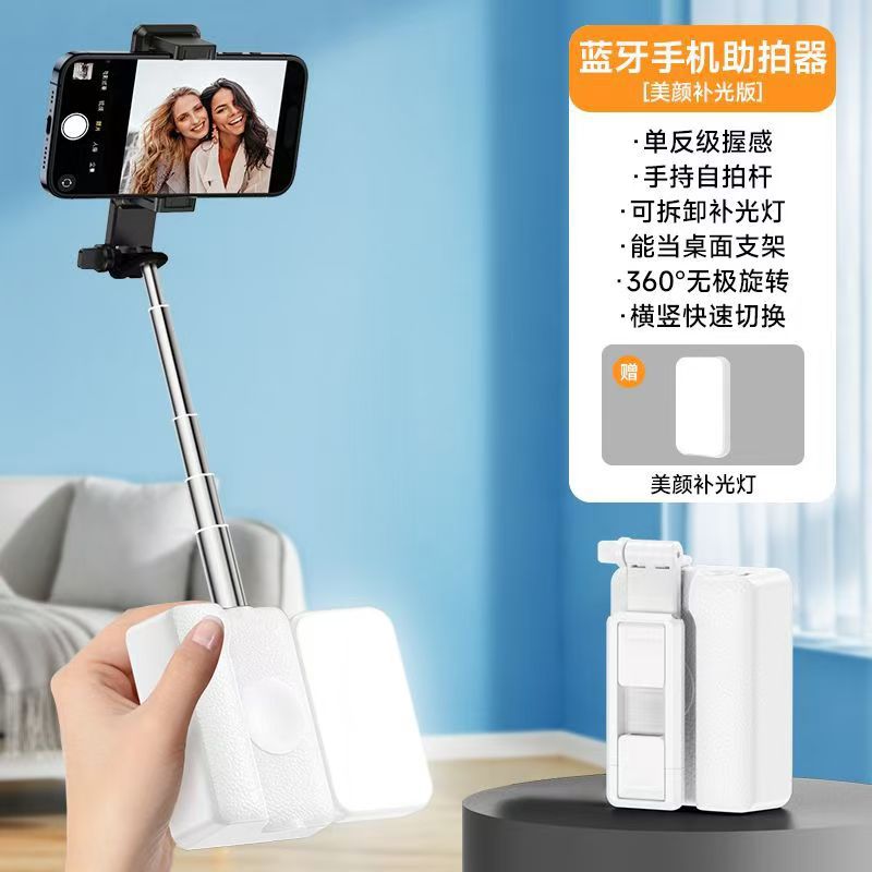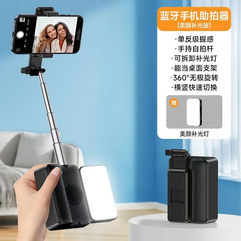 알루미늄 합금 초경량 휴대폰 셀카봉, 일체형 휴대용 보관함, 블루투스 촬영 보조 장치, 야외 사진 유물, 뷰티 램프 공장스토어 가기