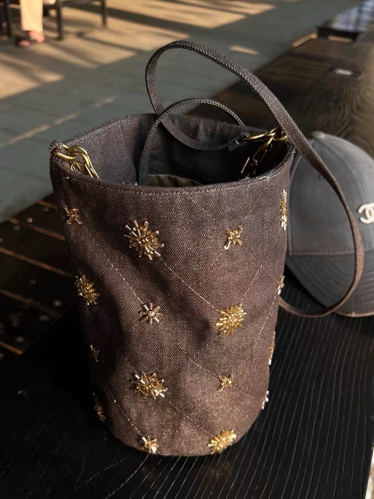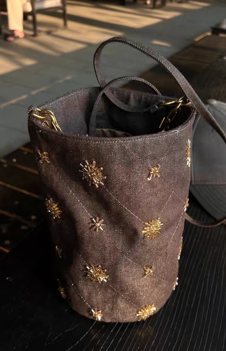 비즈 자수 버킷 백 2025 여름 데님 숄더 백 새로운 중국 스타일 패션 다목적 크로스 바디 백 여성용 가방