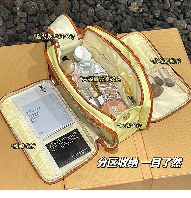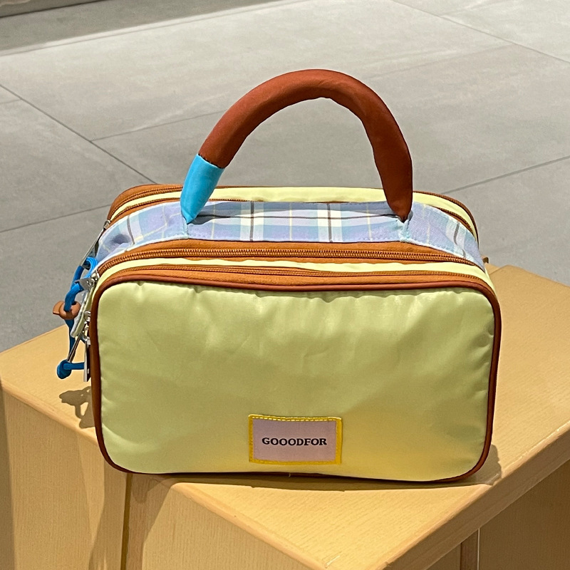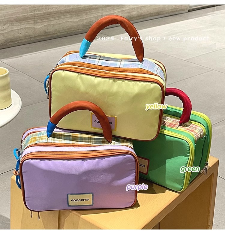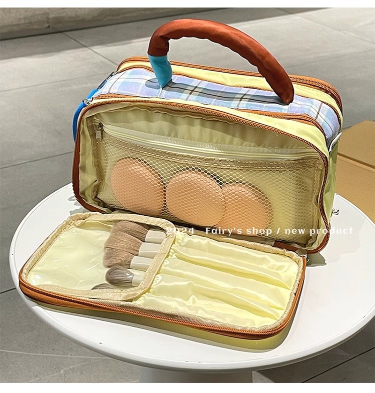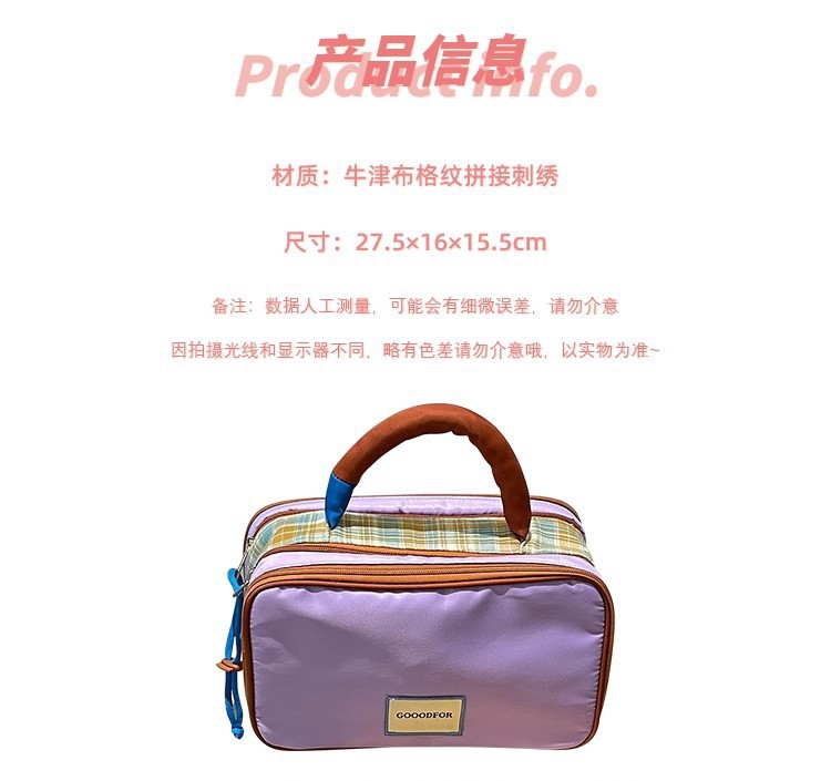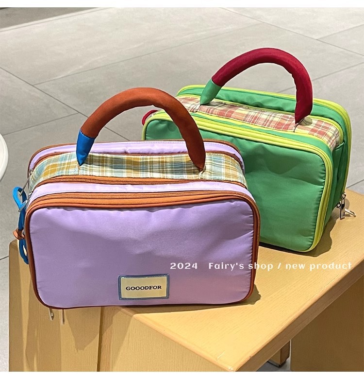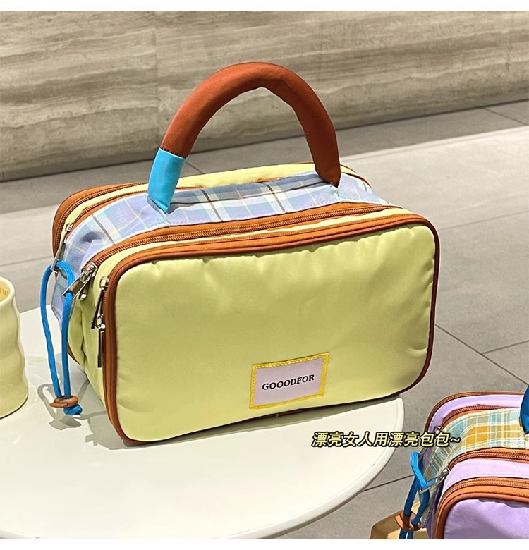 격자 무늬 대비 색상 대용량 저장 화장품 가방 새로운 하이 엔드 휴대용 휴대용 여행 세면 용품 저장 가방스토어 가기