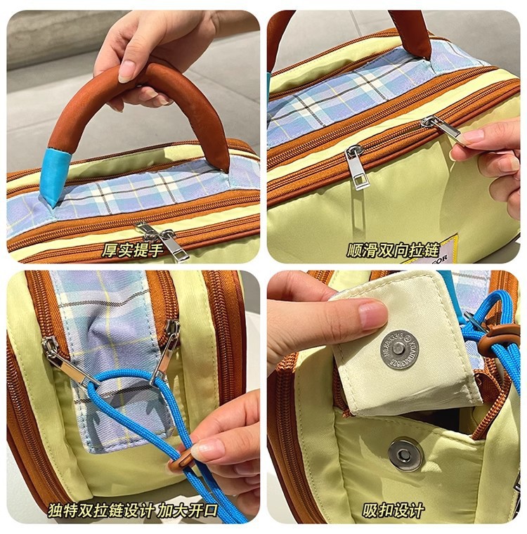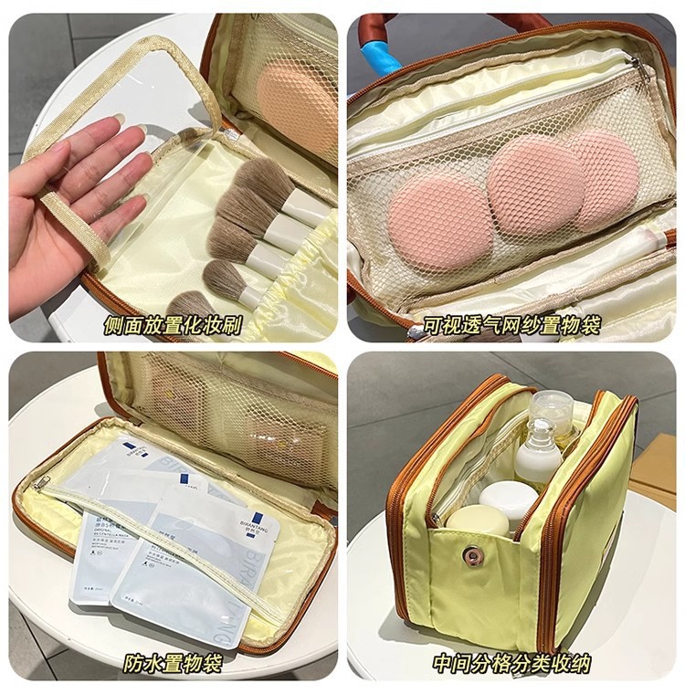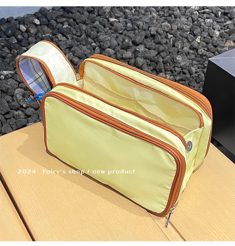 격자 무늬 대비 색상 대용량 저장 화장품 가방 새로운 하이 엔드 휴대용 휴대용 여행 세면 용품 저장 가방