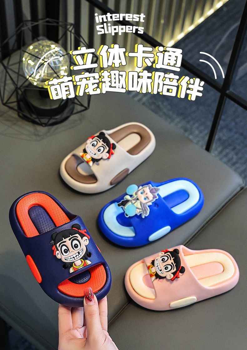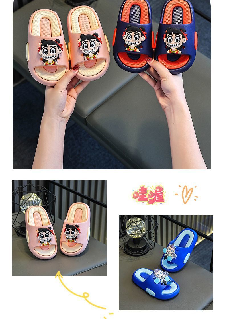2025 새로운 Nezha 슬리퍼 소녀 Ao Bing 어린이 만화 여름 홈 미끄럼 방지 아기 소년 실내 샌들스토어 가기