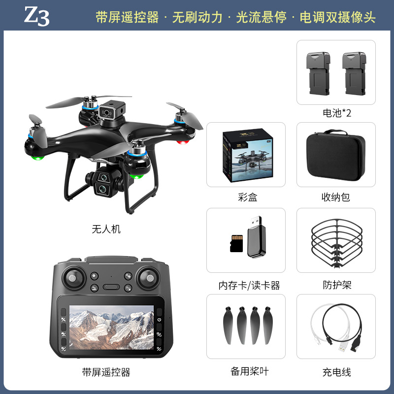 스크린이 있는 신제품 Z3 엘프 원격조종 브러시리스 모터 전문 항공촬영 고화질 드론 소년용 원격조종 비행기