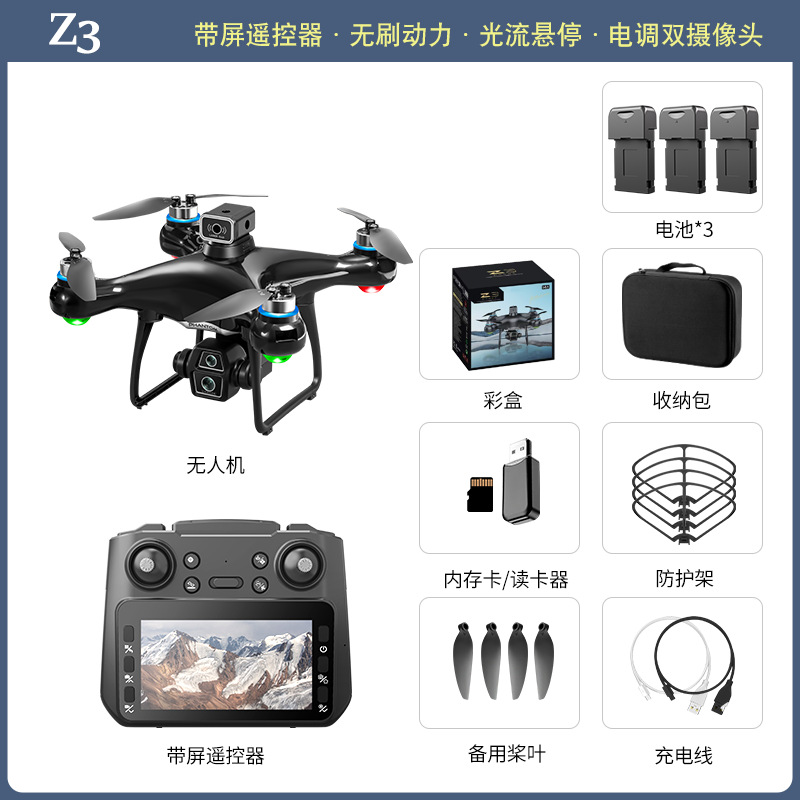 스크린이 있는 신제품 Z3 엘프 원격조종 브러시리스 모터 전문 항공촬영 고화질 드론 소년용 원격조종 비행기스토어 가기