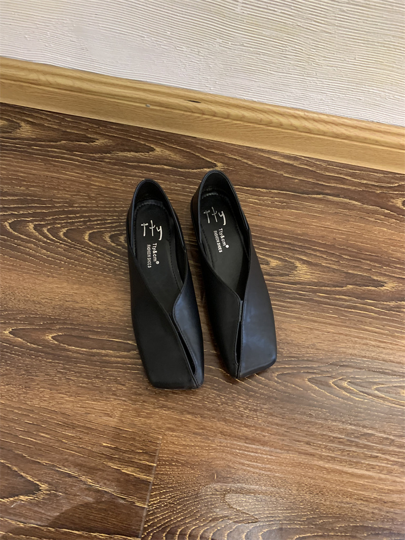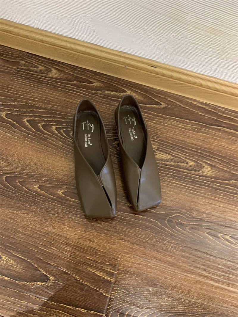 2025 봄 신작 복고풍 펌프스 로우 힐 중공 신발 여성 스퀘어 토 두꺼운 굽 투웨어 작은 가죽 신발 게으른 로퍼스토어 가기