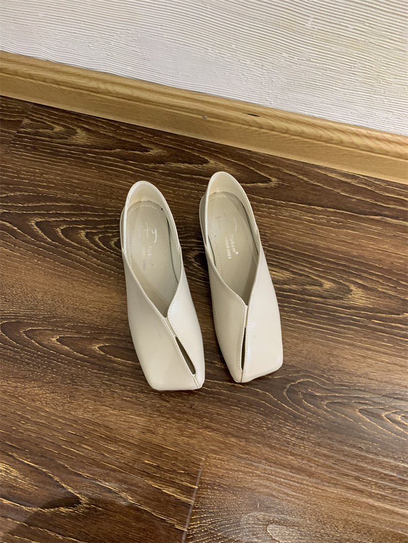 2025 봄 신작 복고풍 펌프스 로우 힐 중공 신발 여성 스퀘어 토 두꺼운 굽 투웨어 작은 가죽 신발 게으른 로퍼