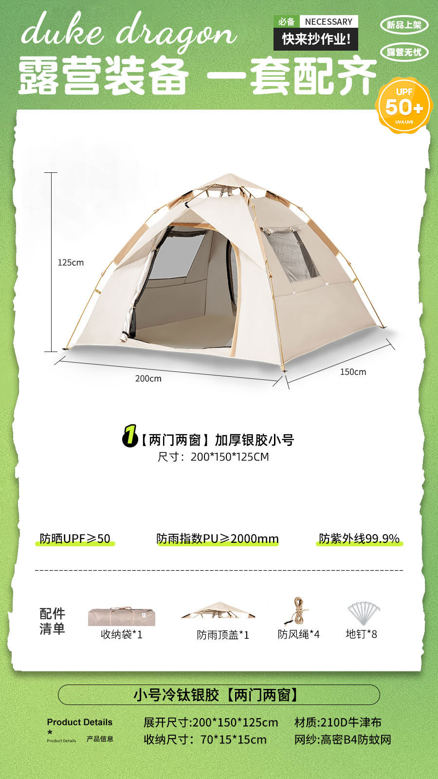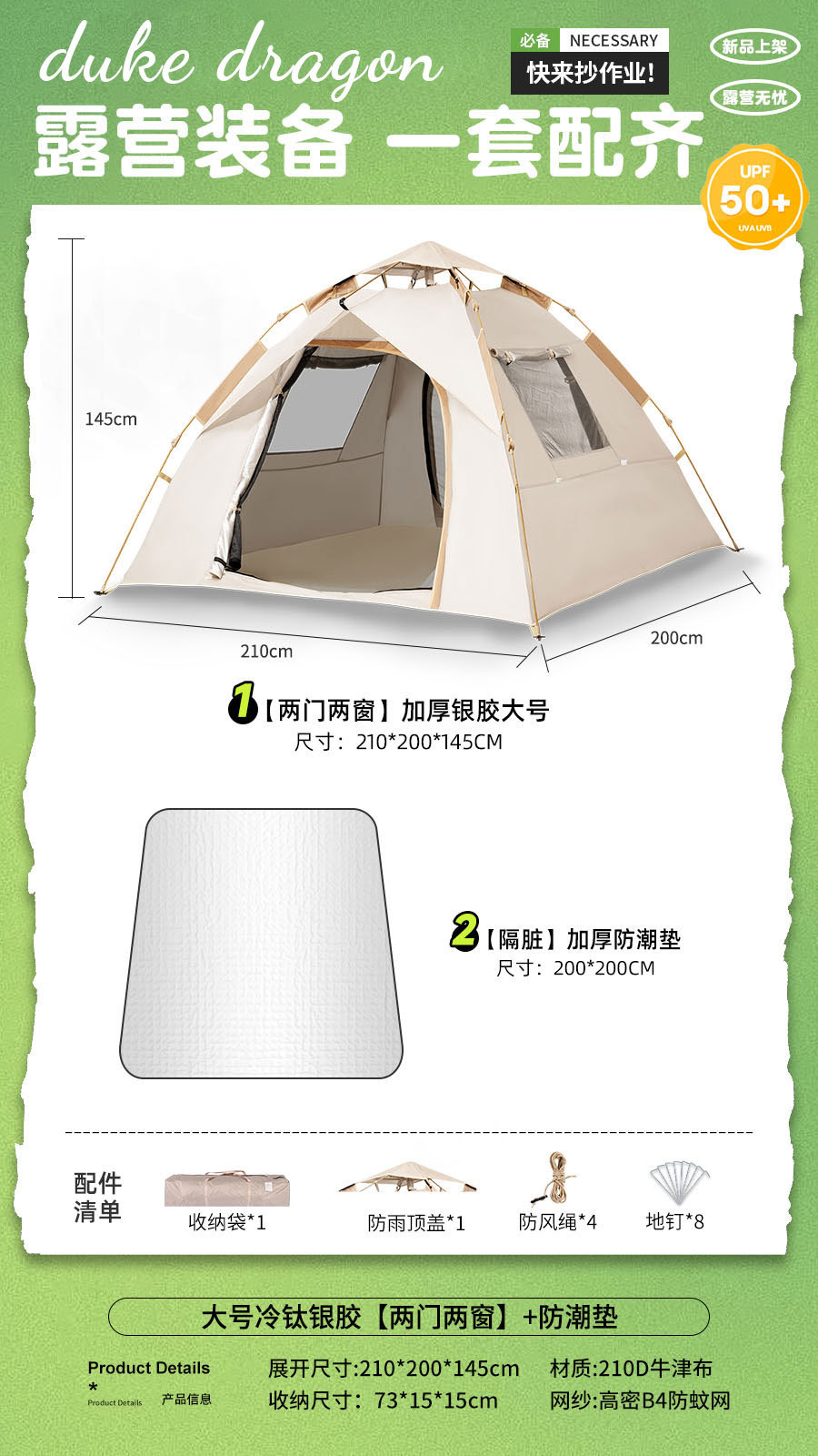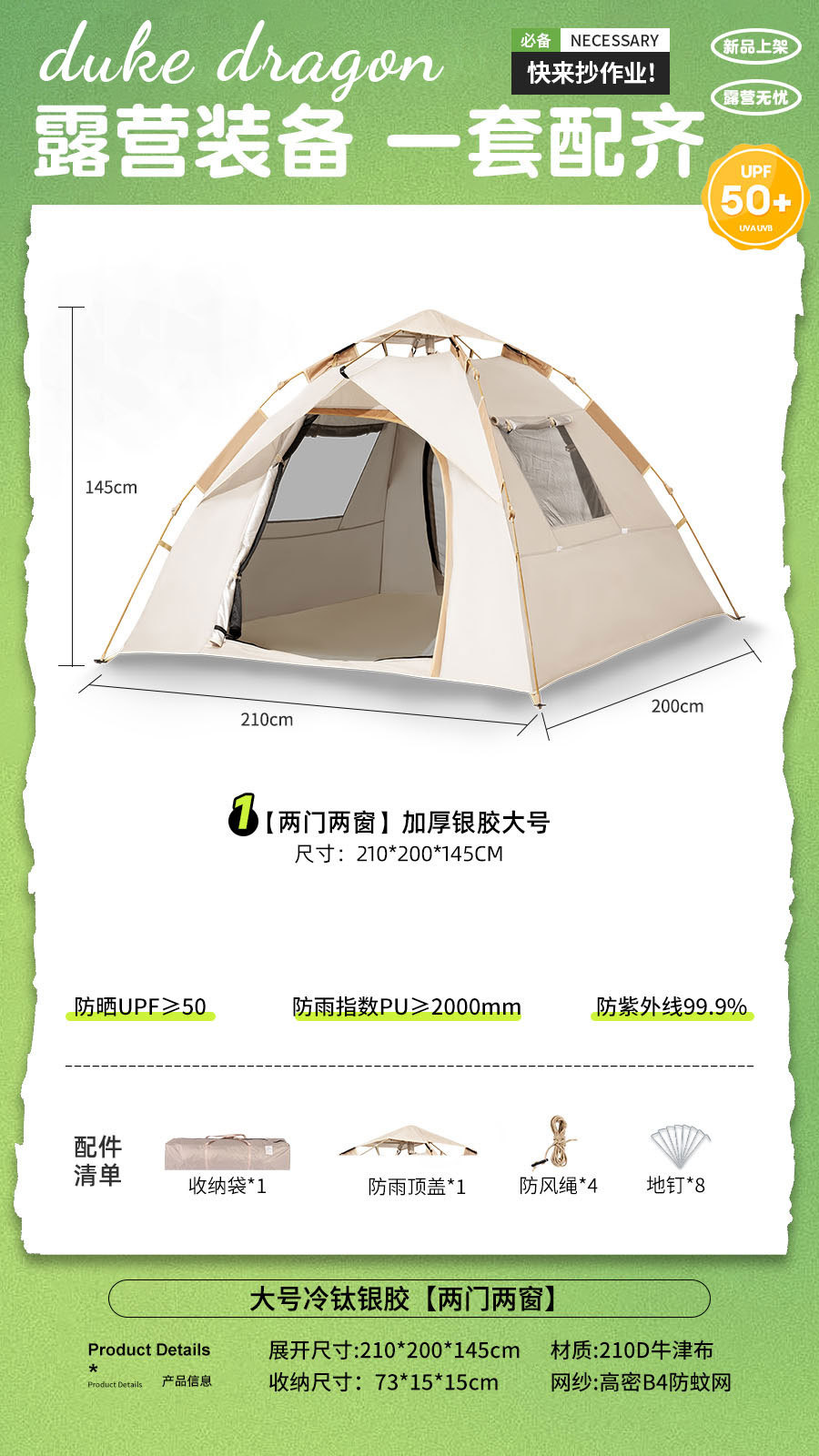 텐트 야외 접이식 휴대용 야외 캠핑 장비 캠핑 밤새 방수 두꺼운 완전 자동 해변 실내