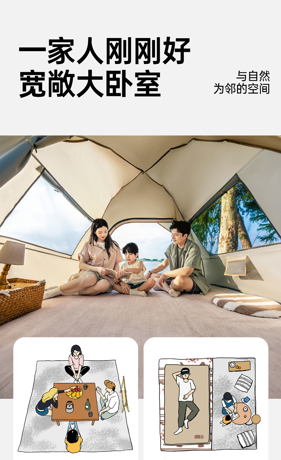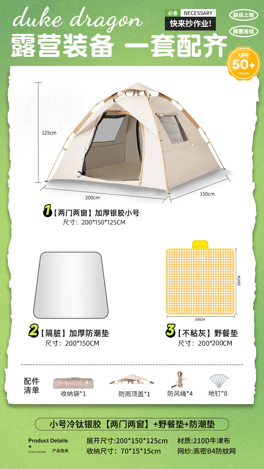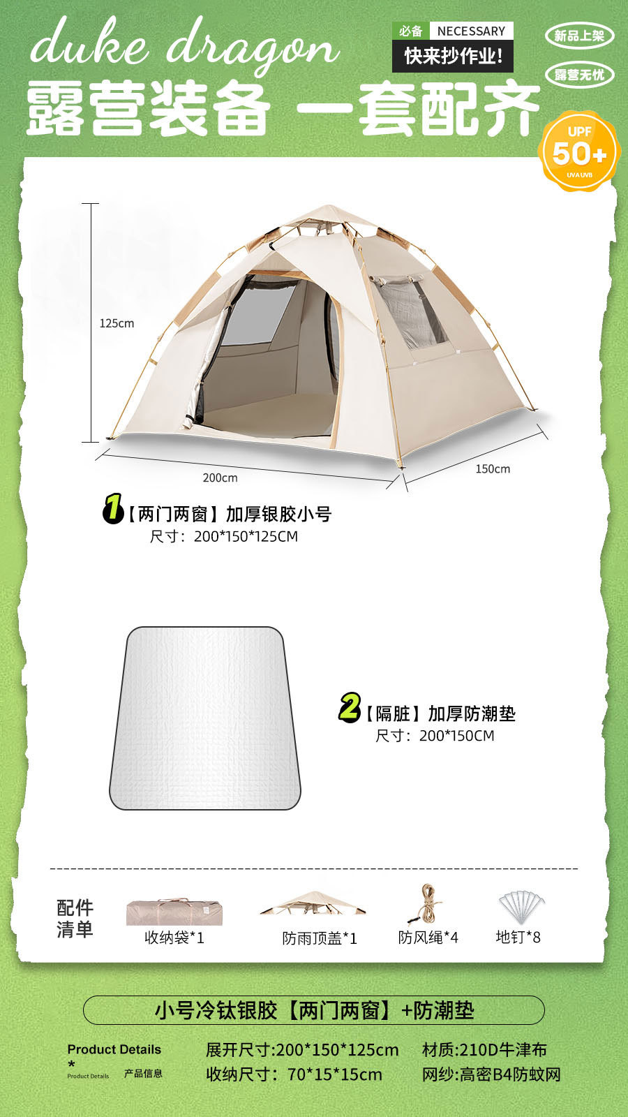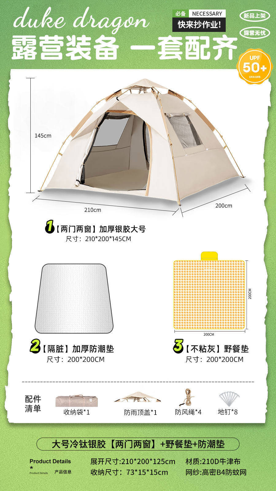 텐트 야외 접이식 휴대용 야외 캠핑 장비 캠핑 밤새 방수 두꺼운 완전 자동 해변 실내