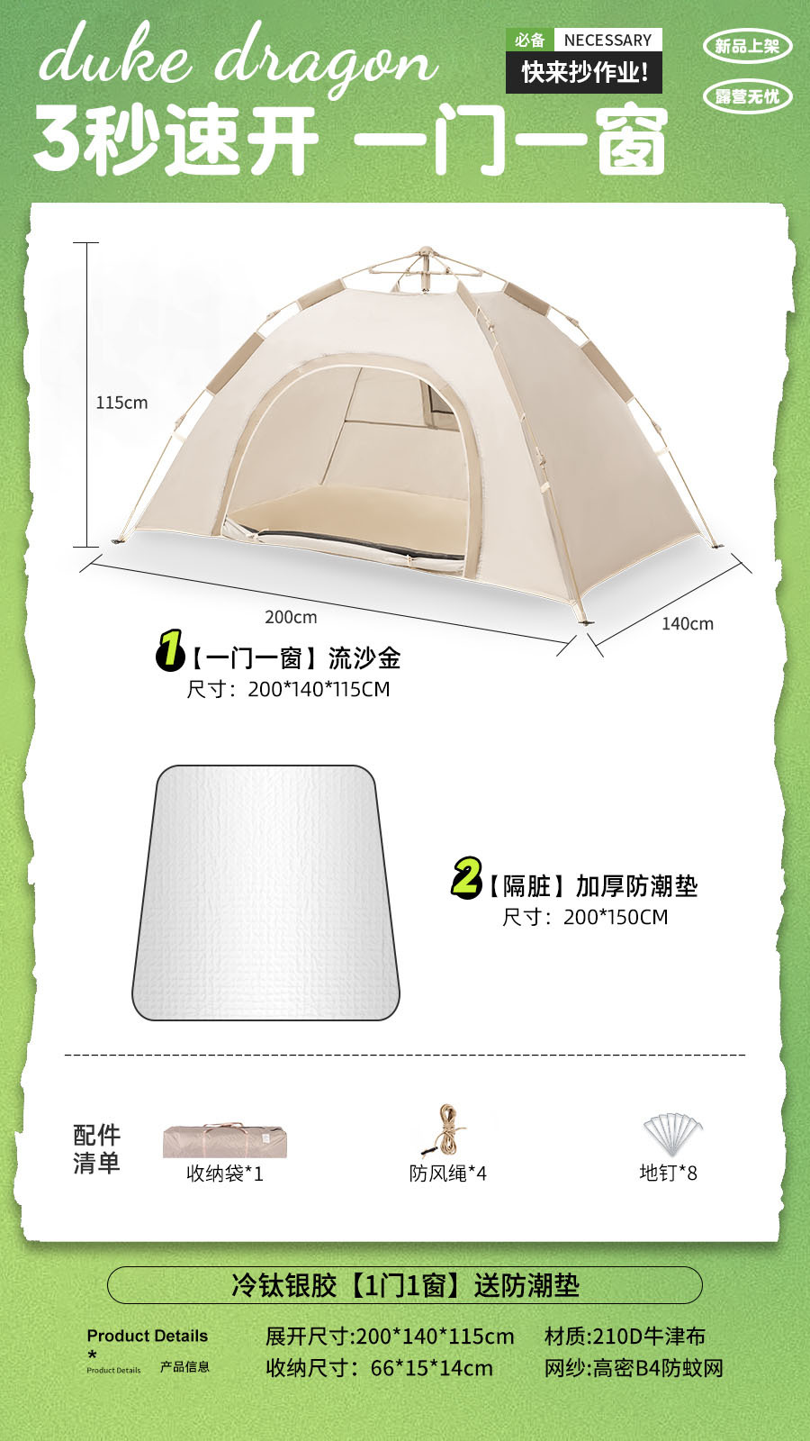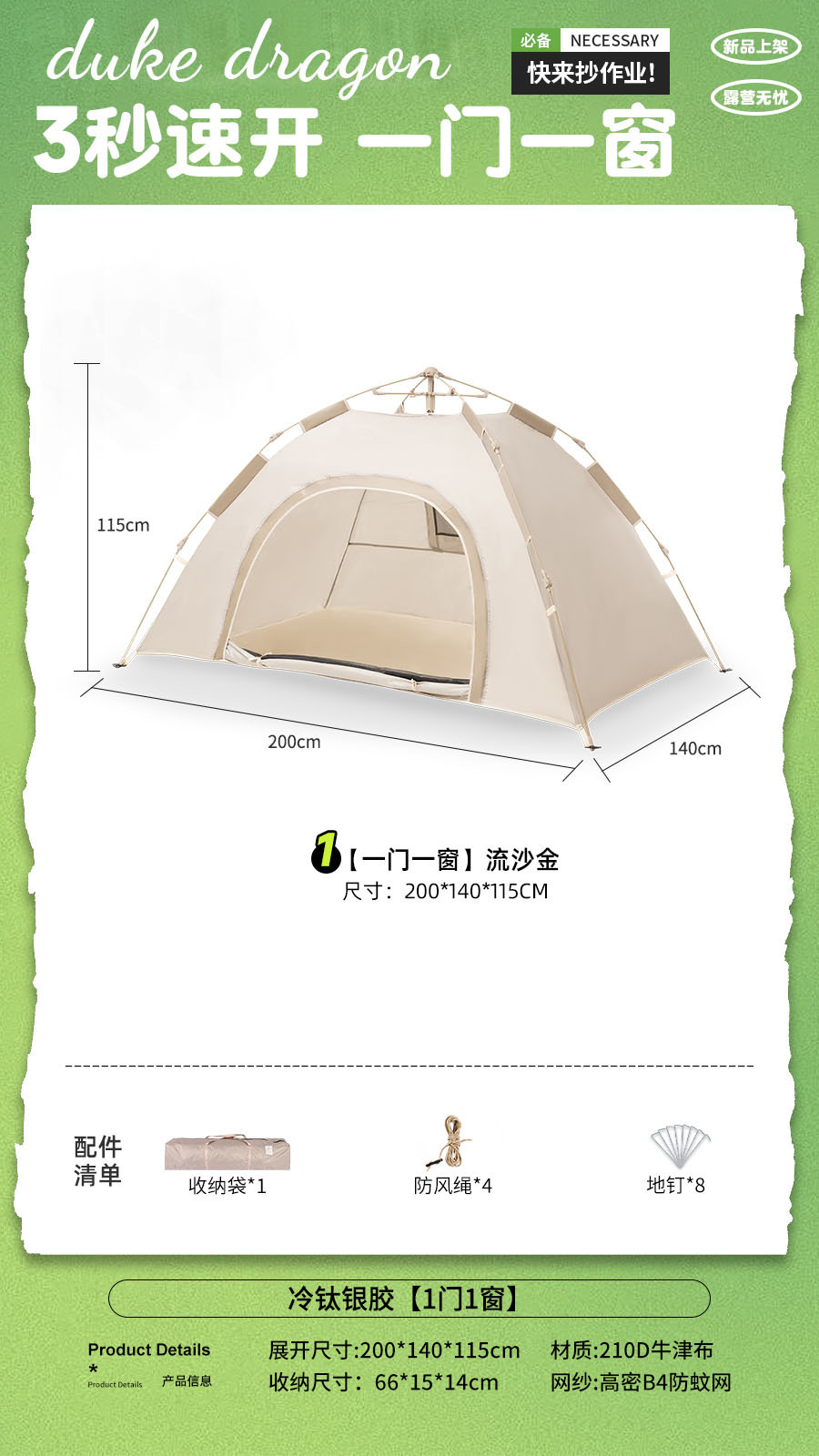 텐트 야외 접이식 휴대용 야외 캠핑 장비 캠핑 밤새 방수 두꺼운 완전 자동 해변 실내스토어 가기