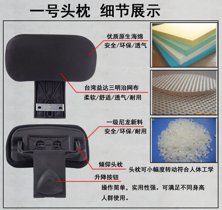 사무실 컴퓨터 의자, 머리 받침, 베개, 구멍 없음, 높이 조절 가능, 등받이, 허리 지지대 등받이의 간단한 설치