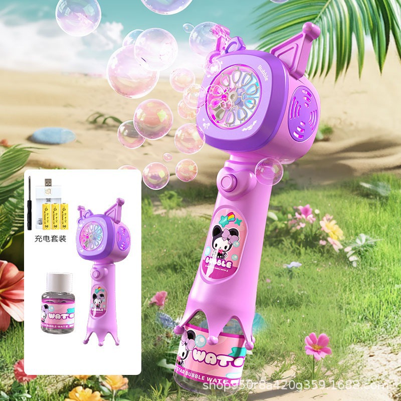 어린이 Coolomini 전기 버블 머신 완전 자동 만화 버블 스틱 물 마법 소녀 장난감 야시장 스톨