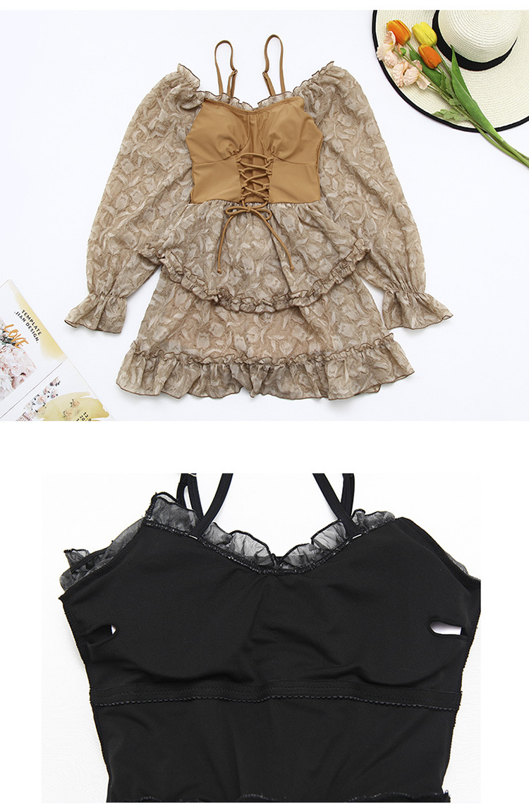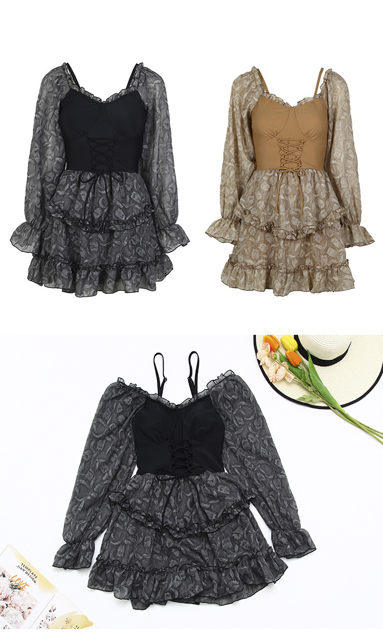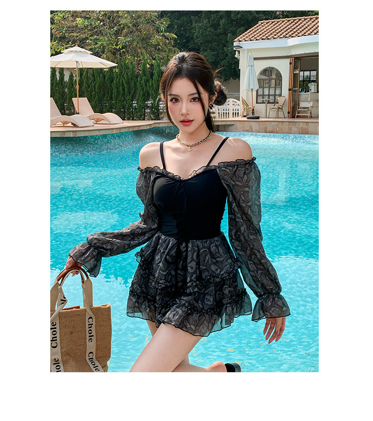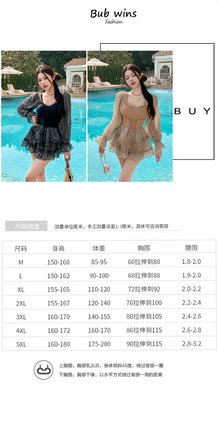 수영복 여성 긴팔 자외선 차단 원피스 스커트 스타일 보수적 뚱뚱한 mm 100kg 슬리밍 및 살 커버 섹시한 원 숄더 온천스토어 가기