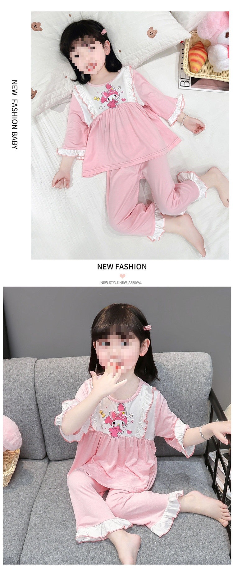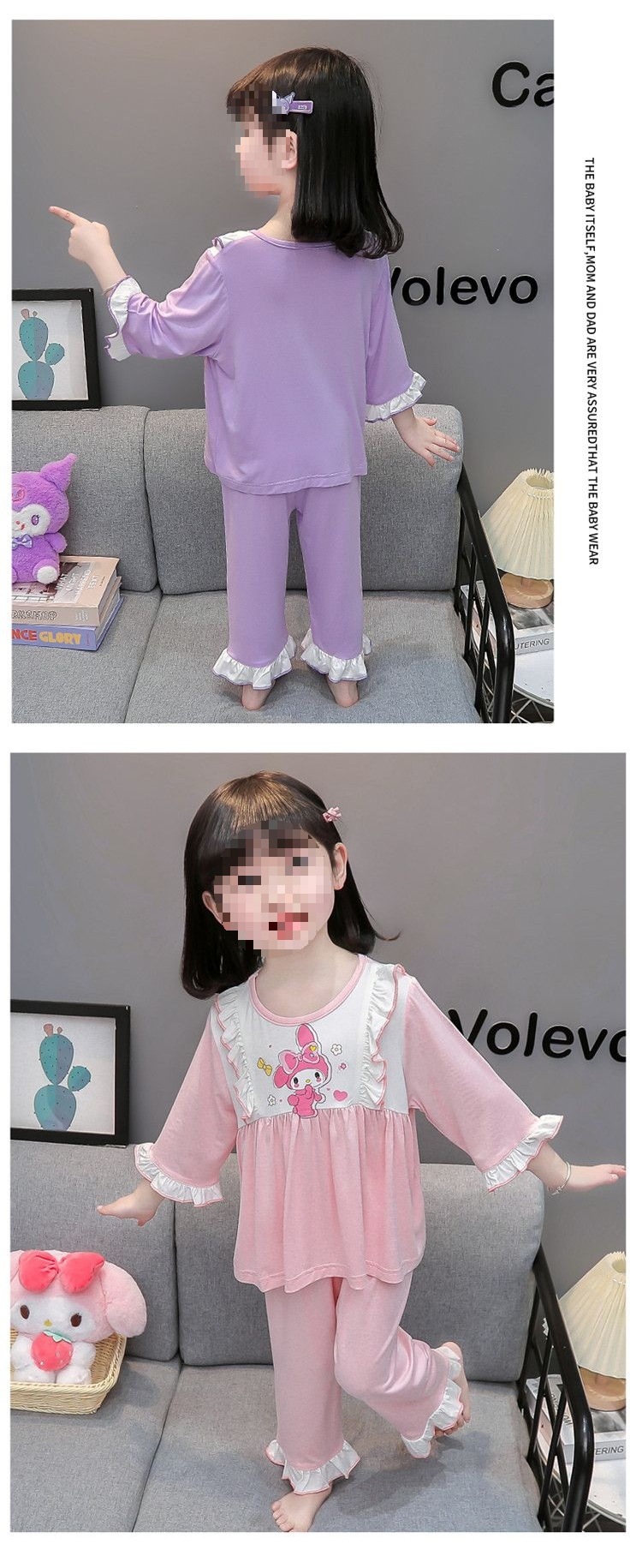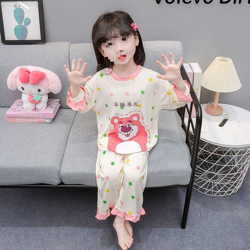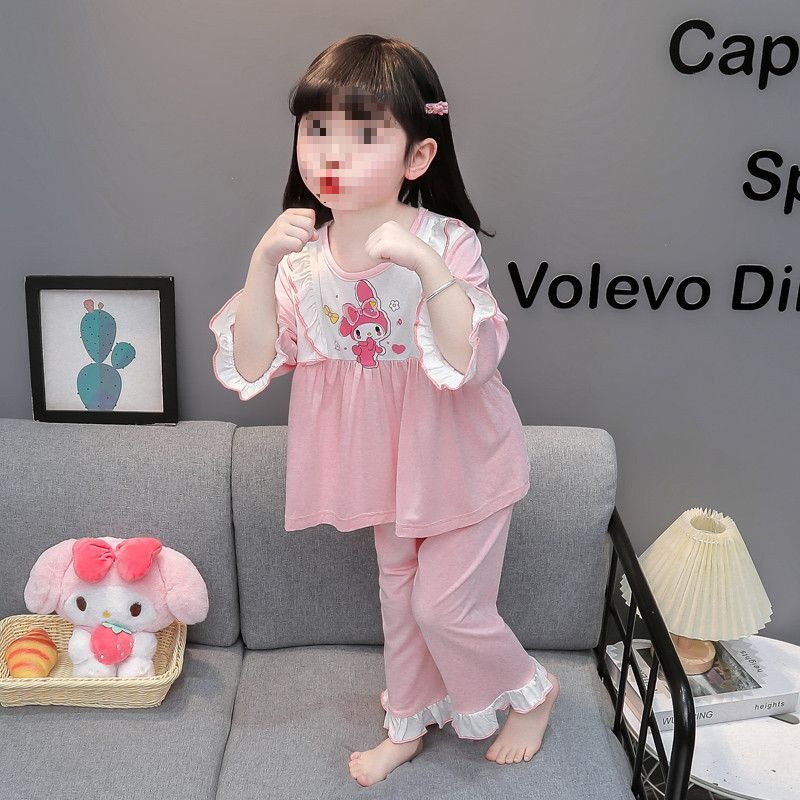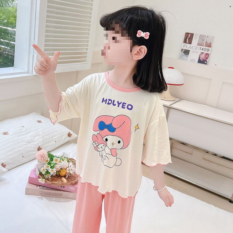 여아용 모달 아동 잠옷 2024년 새 아기 여아 쿠로미 여름 긴팔 에어컨 얇은 스타일스토어 가기