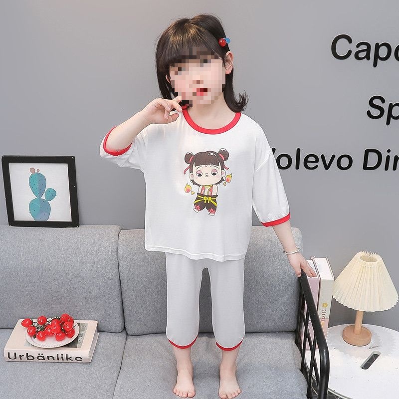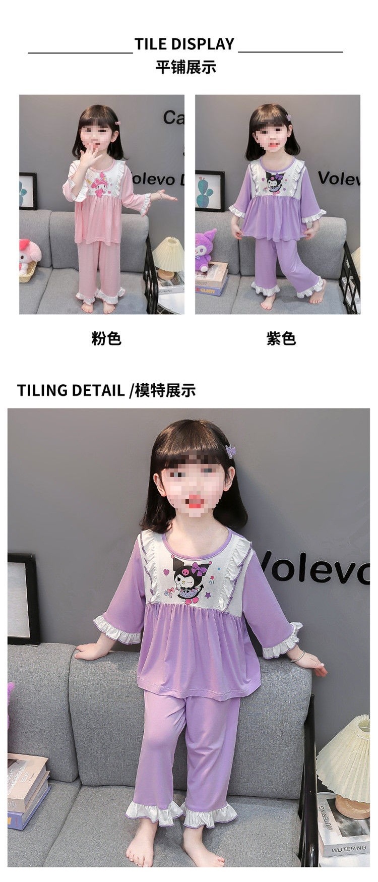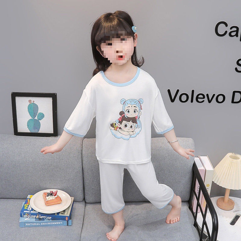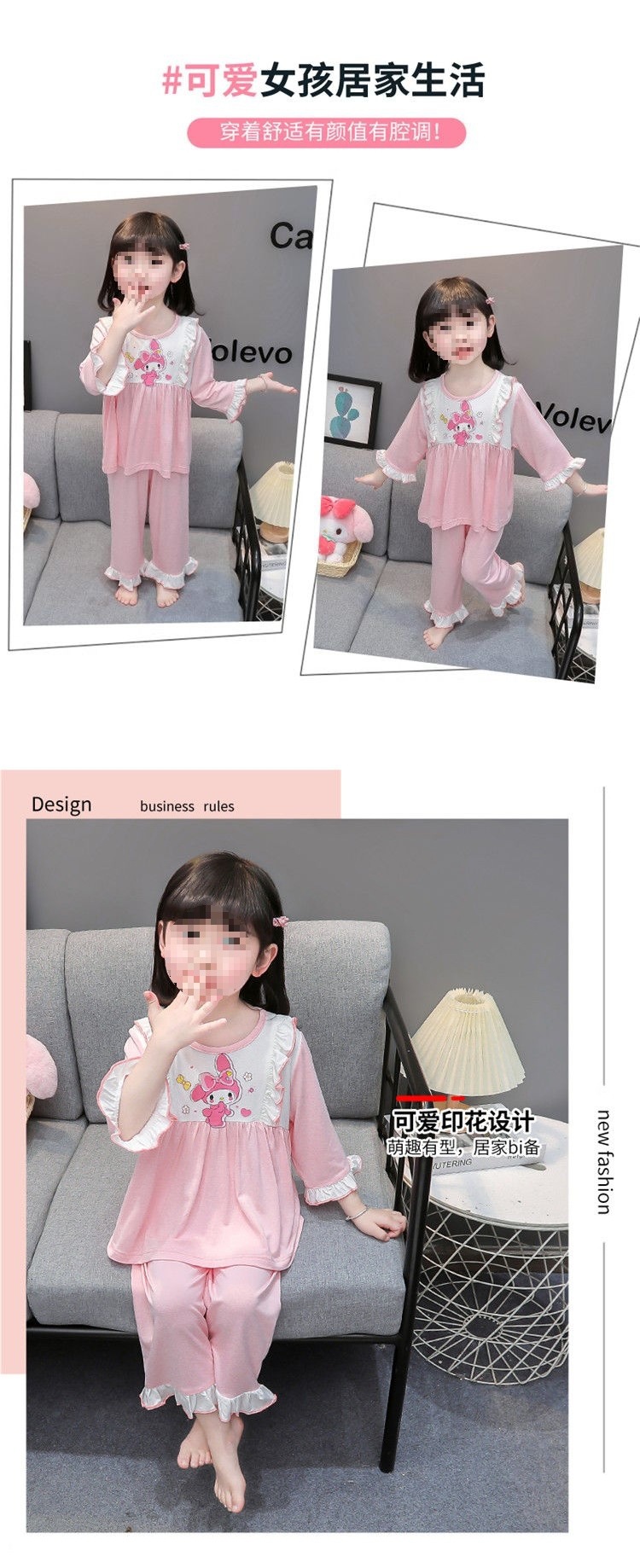 여아용 모달 아동 잠옷 2024년 새 아기 여아 쿠로미 여름 긴팔 에어컨 얇은 스타일스토어 가기