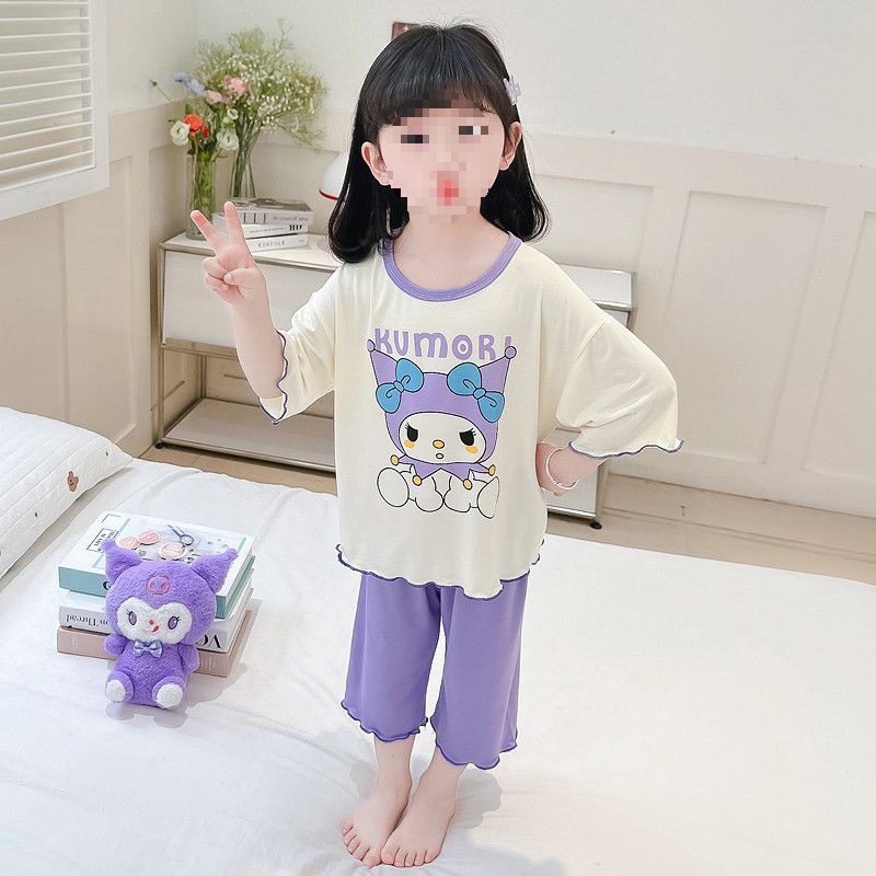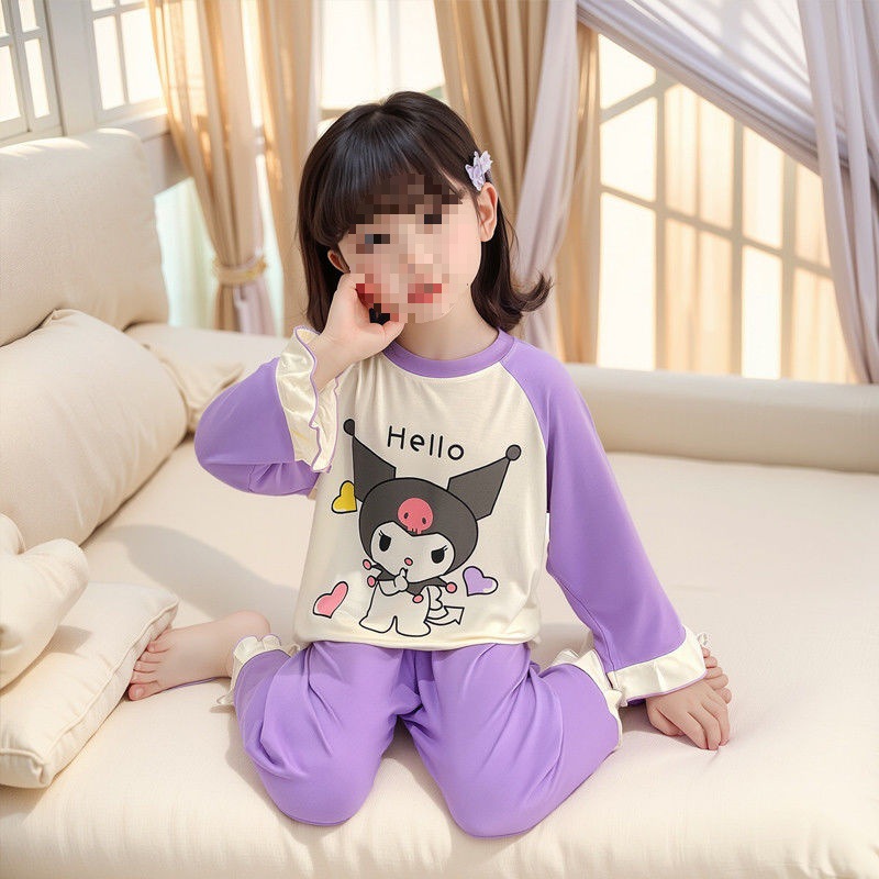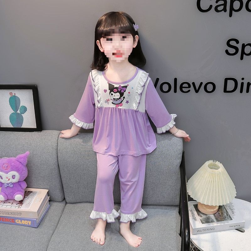 여아용 모달 아동 잠옷 2024년 새 아기 여아 쿠로미 여름 긴팔 에어컨 얇은 스타일