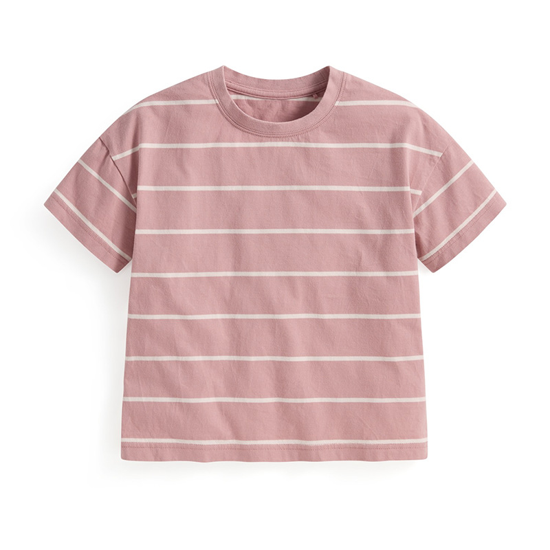 아동 여름옷, 남아용 순면 얇은 반팔 티셔츠, 클래식 넉넉한 줄무늬 반팔 셔츠, 중대형 아동용 라운드넥 상의