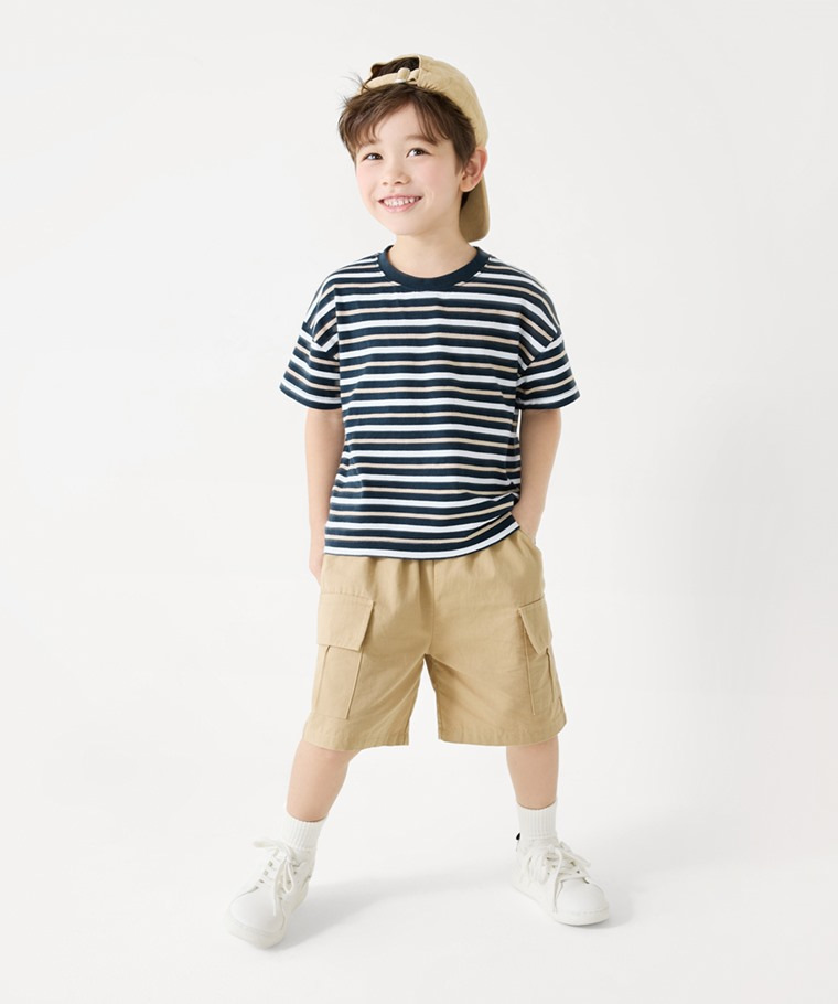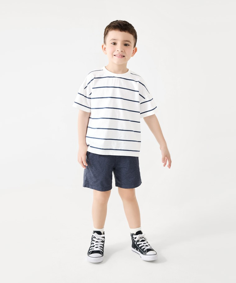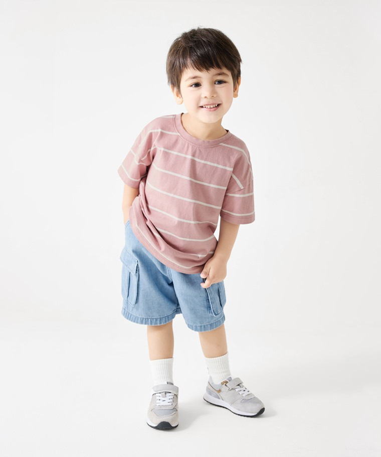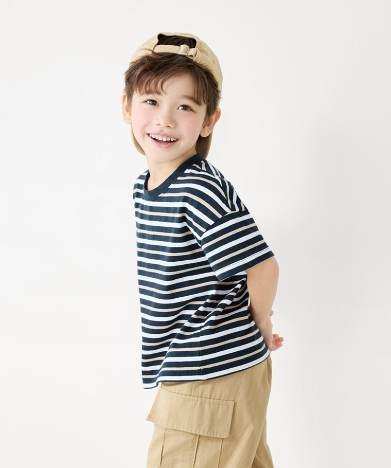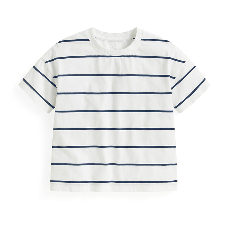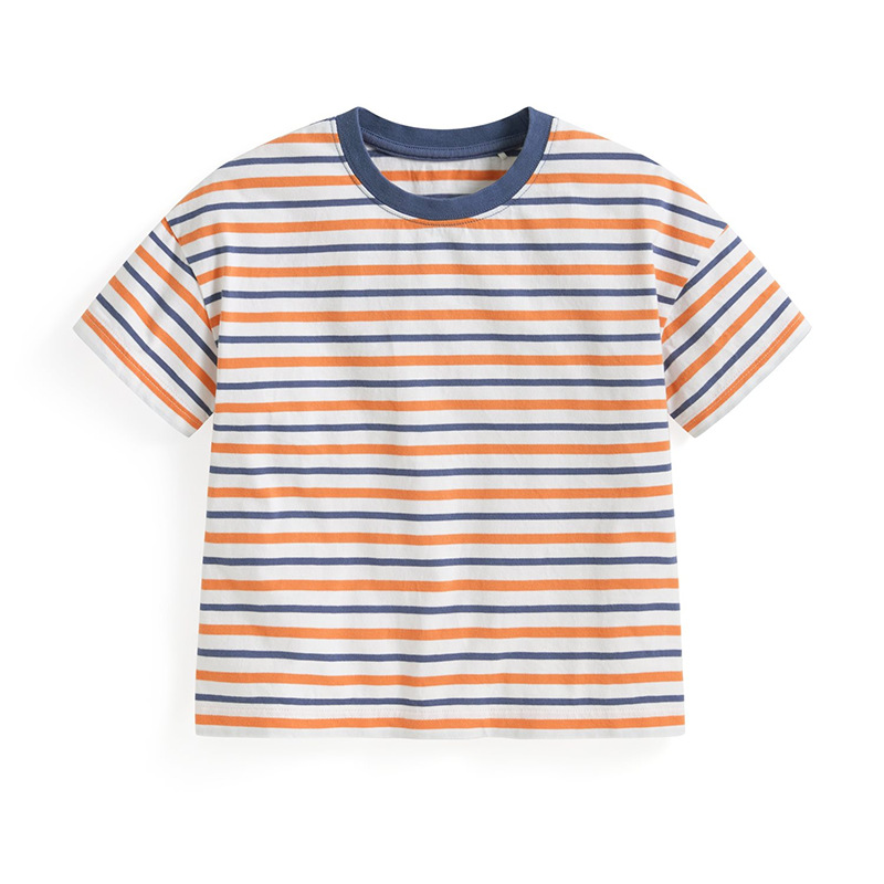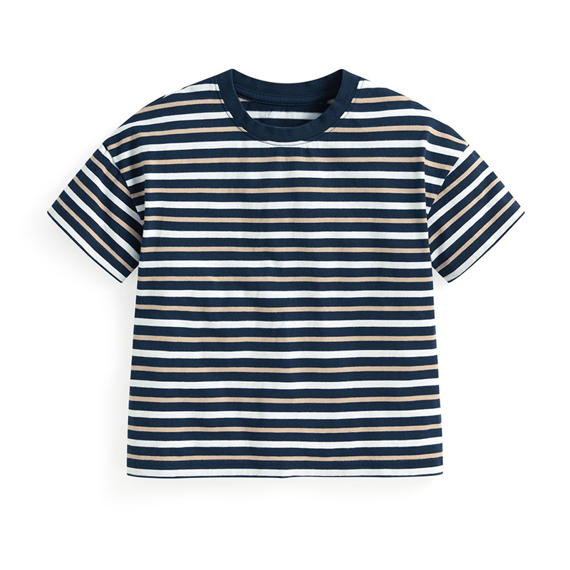 아동 여름옷, 남아용 순면 얇은 반팔 티셔츠, 클래식 넉넉한 줄무늬 반팔 셔츠, 중대형 아동용 라운드넥 상의스토어 가기