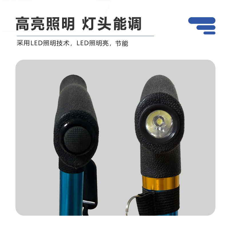 조명이 달린 알루미늄 합금 지팡이, 휴대용 접이식 야외 등산 지팡이, 노인을 위한 다기능 지팡이