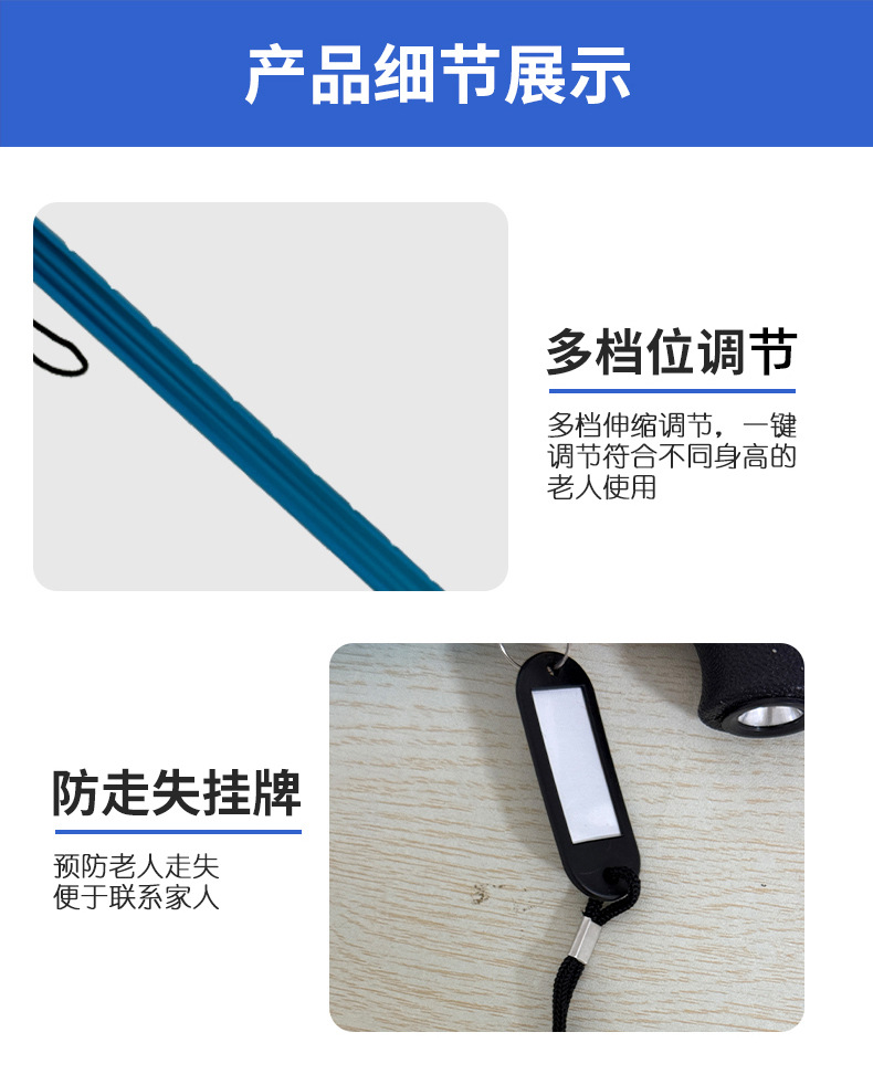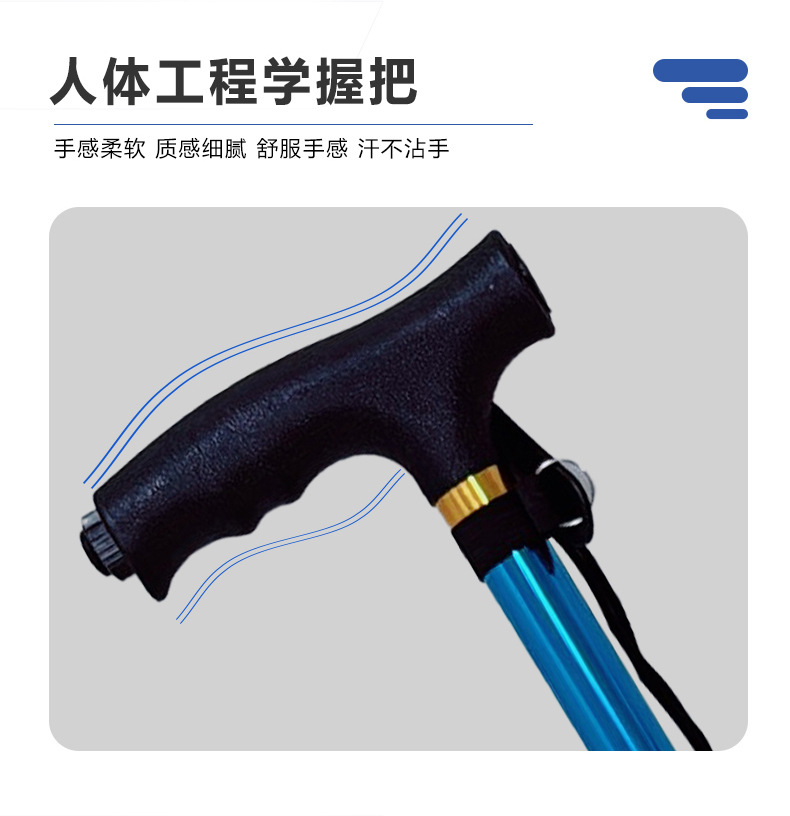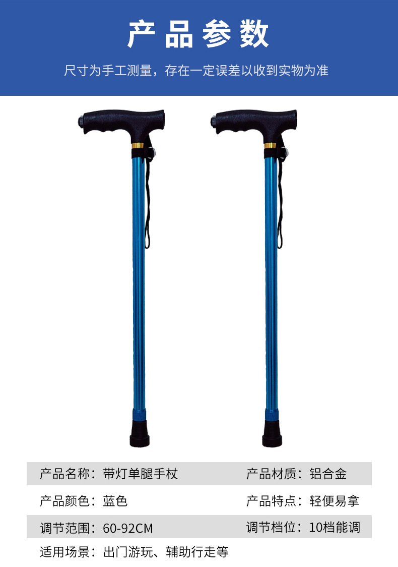 조명이 달린 알루미늄 합금 지팡이, 휴대용 접이식 야외 등산 지팡이, 노인을 위한 다기능 지팡이스토어 가기