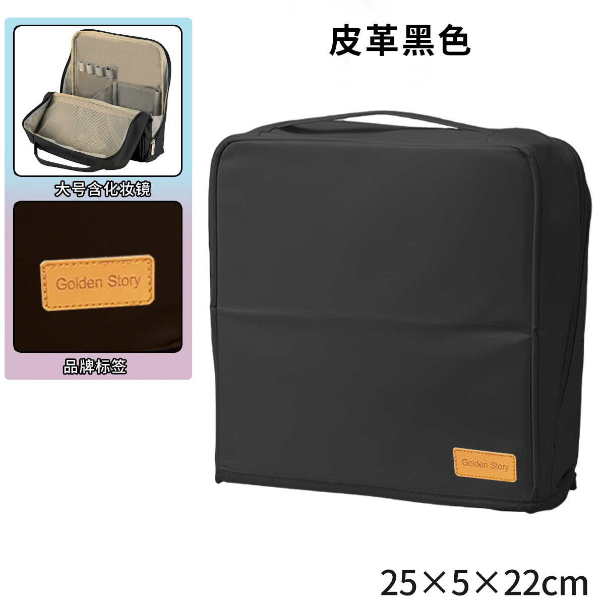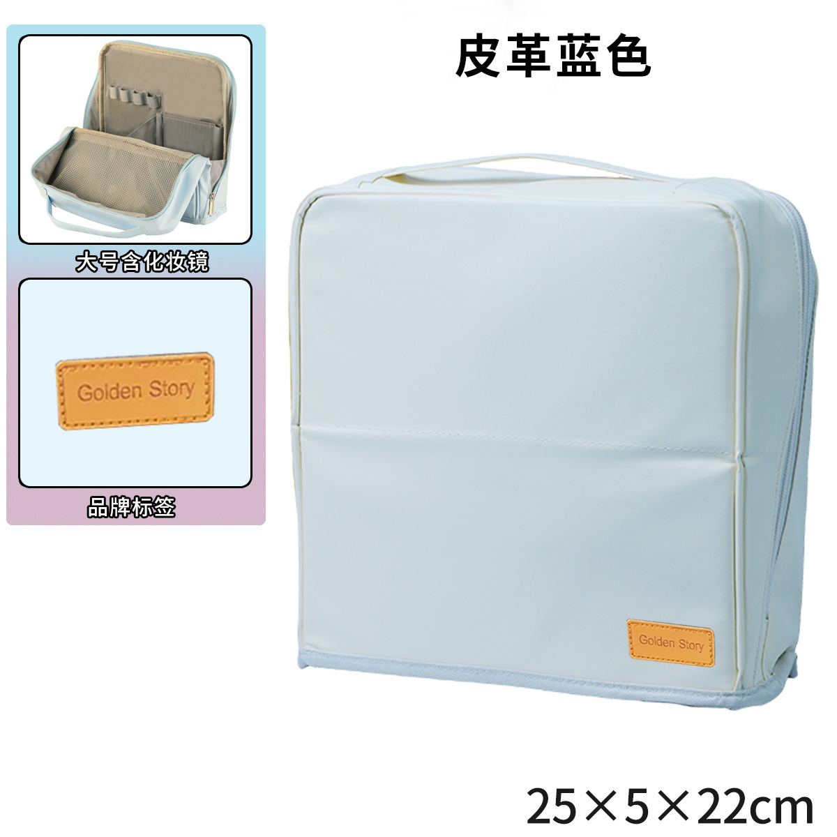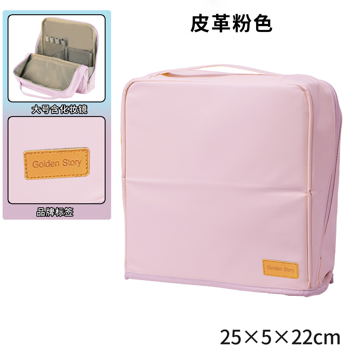대용량 휴대용 파우치형 PU 수납 가방, 거울 포함, 휴대용 외출용 화장품 가방, 여행 가방에 걸 수 있음