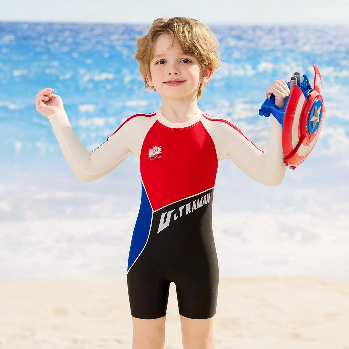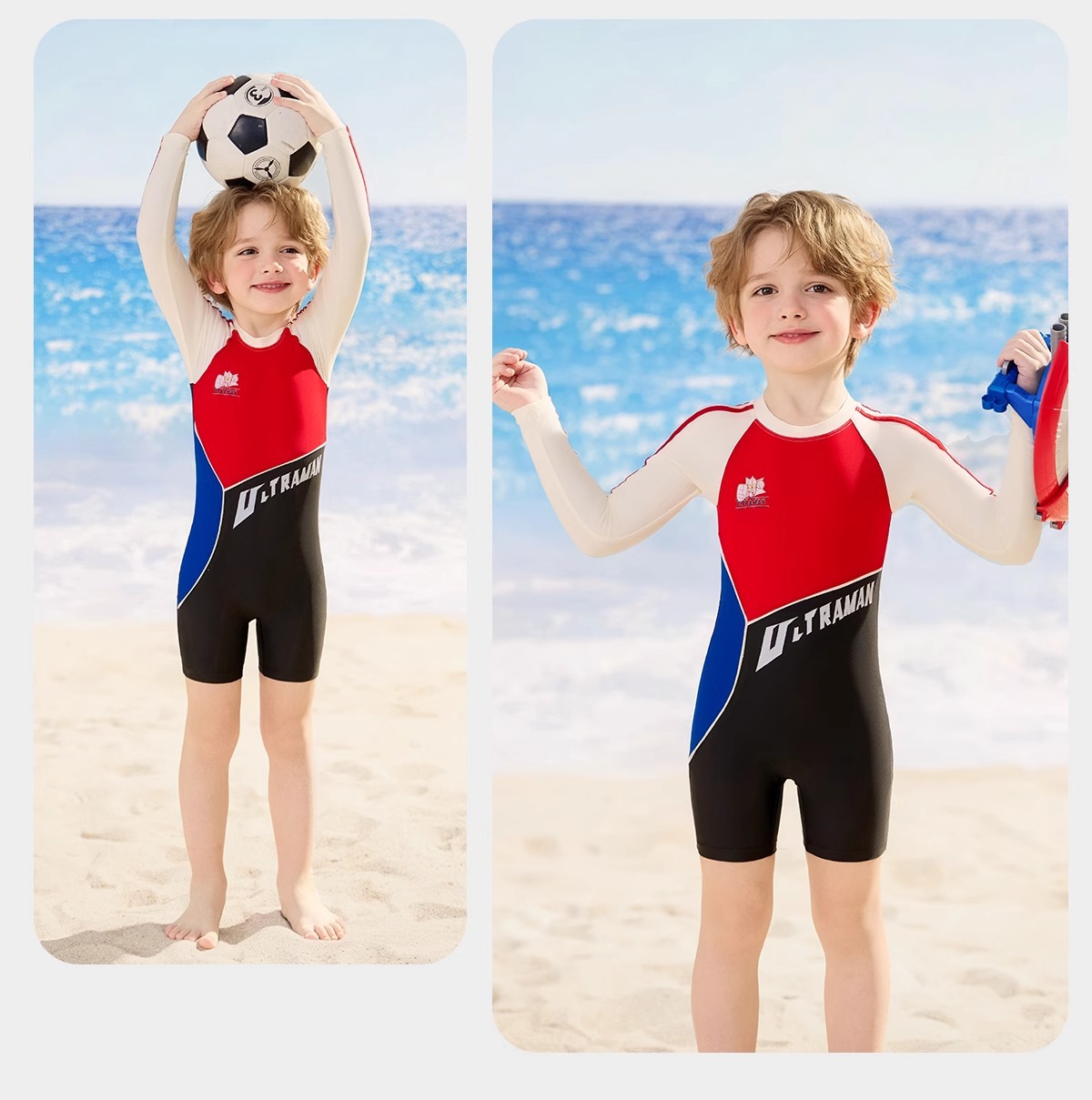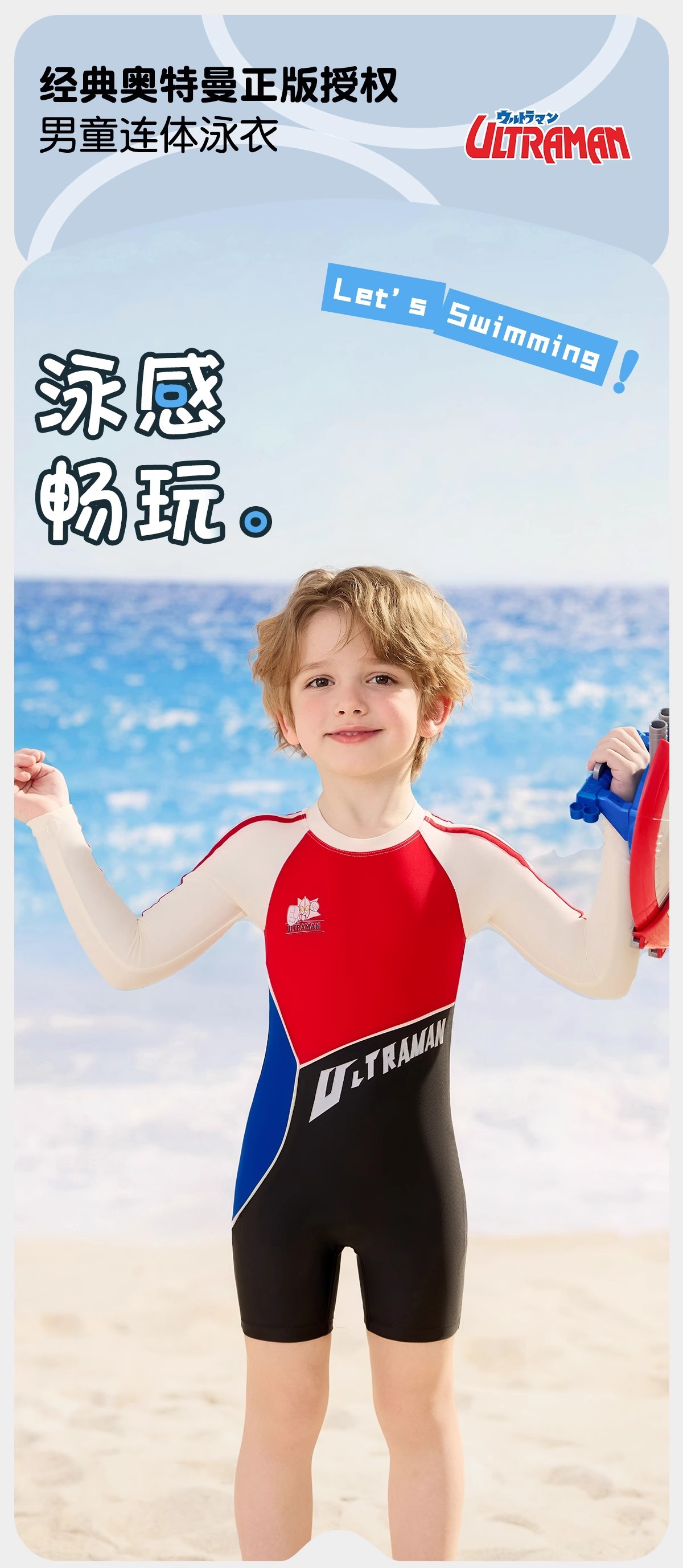 클래식 울트라맨 아동 수영복 남성용 2025 새로운 원피스 수영복 중대형 어린이 해변 자외선 차단제 속건성 슈트