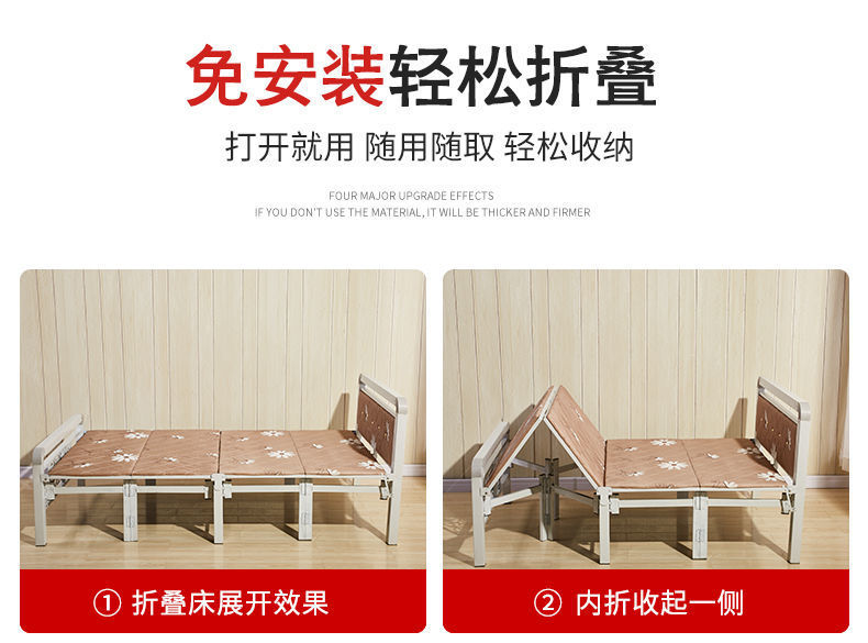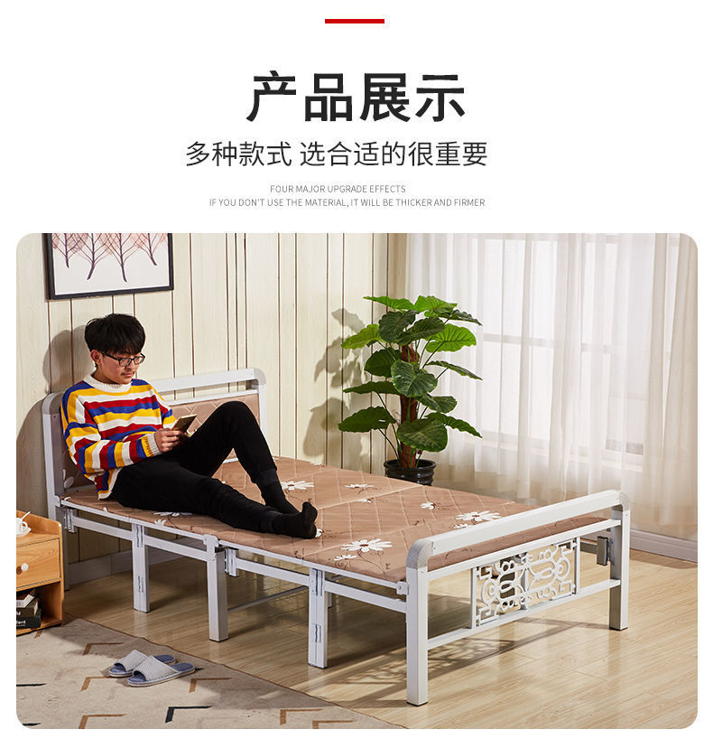 낮잠을 위한 두꺼운 접이식 침대, 간이 침대, 홈 오피스 낮잠판 침대, 1인용 더블 침대, 성인용 철제 침대