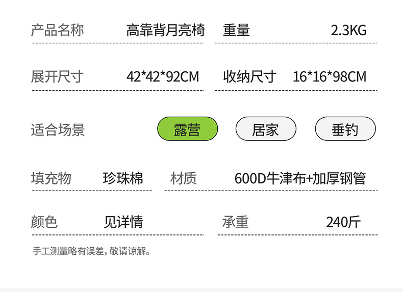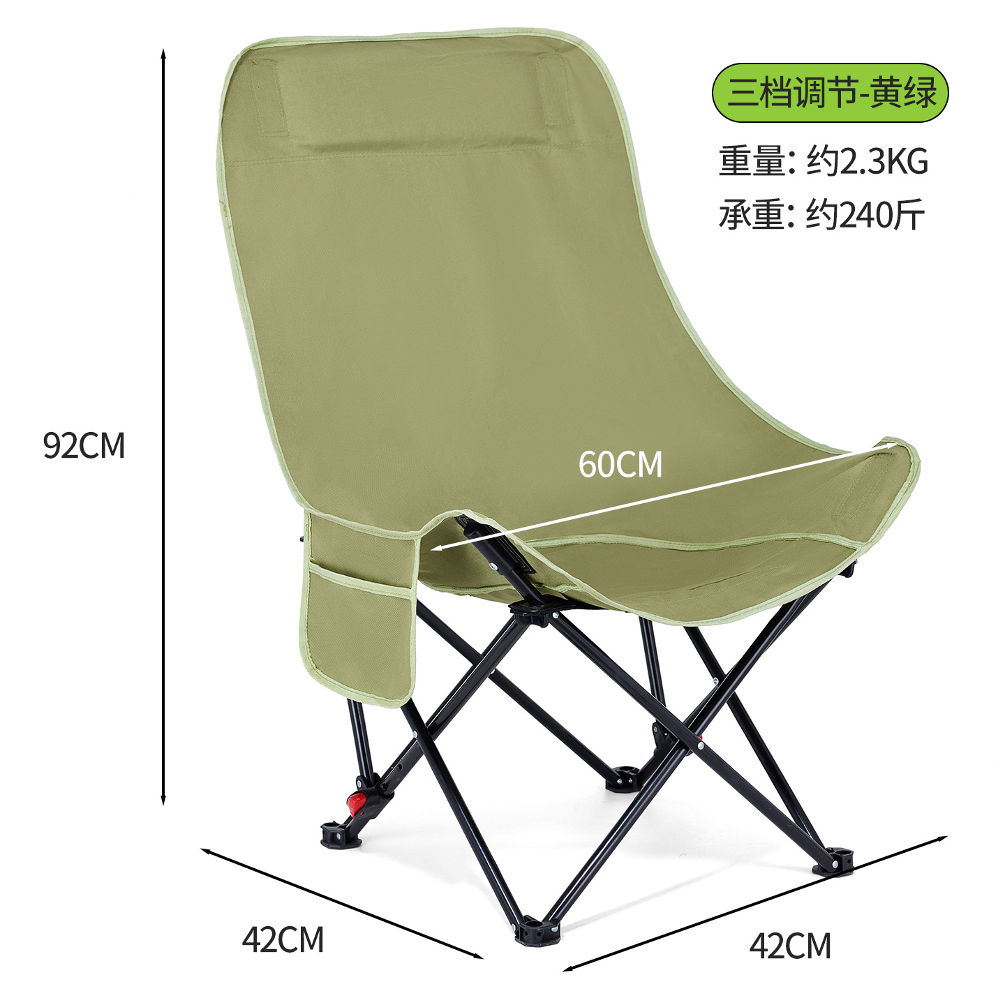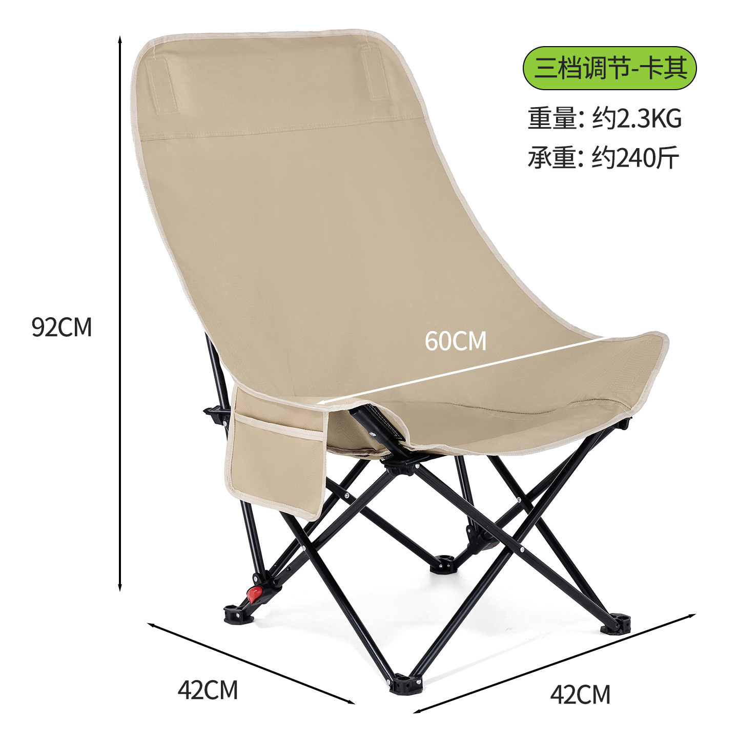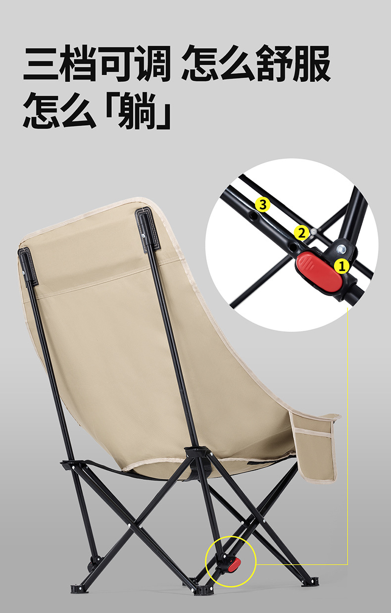 야외 3단 조절식 하이백 문체어, 휴대용 캠핑 피크닉 안락의자, 심플한 다기능 접이식 의자