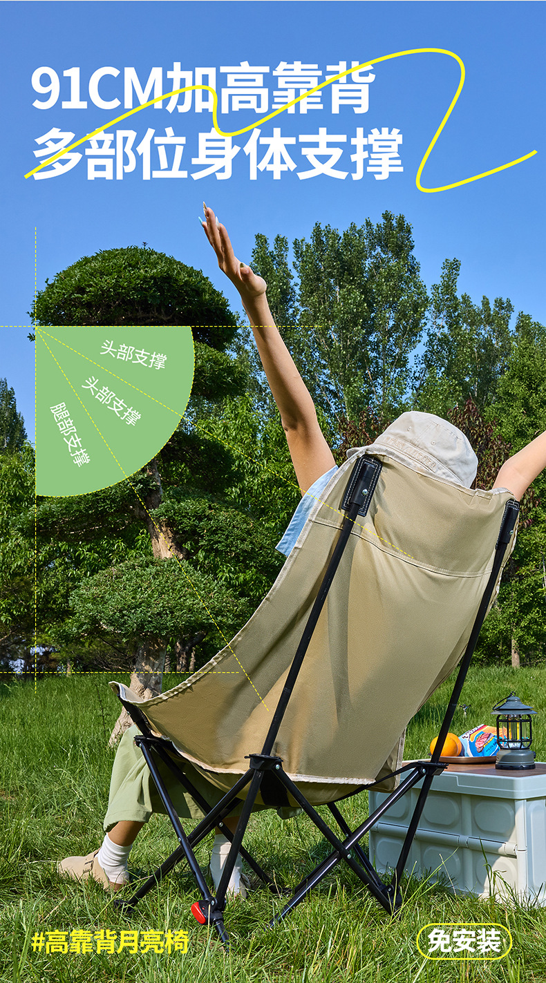 야외 3단 조절식 하이백 문체어, 휴대용 캠핑 피크닉 안락의자, 심플한 다기능 접이식 의자스토어 가기