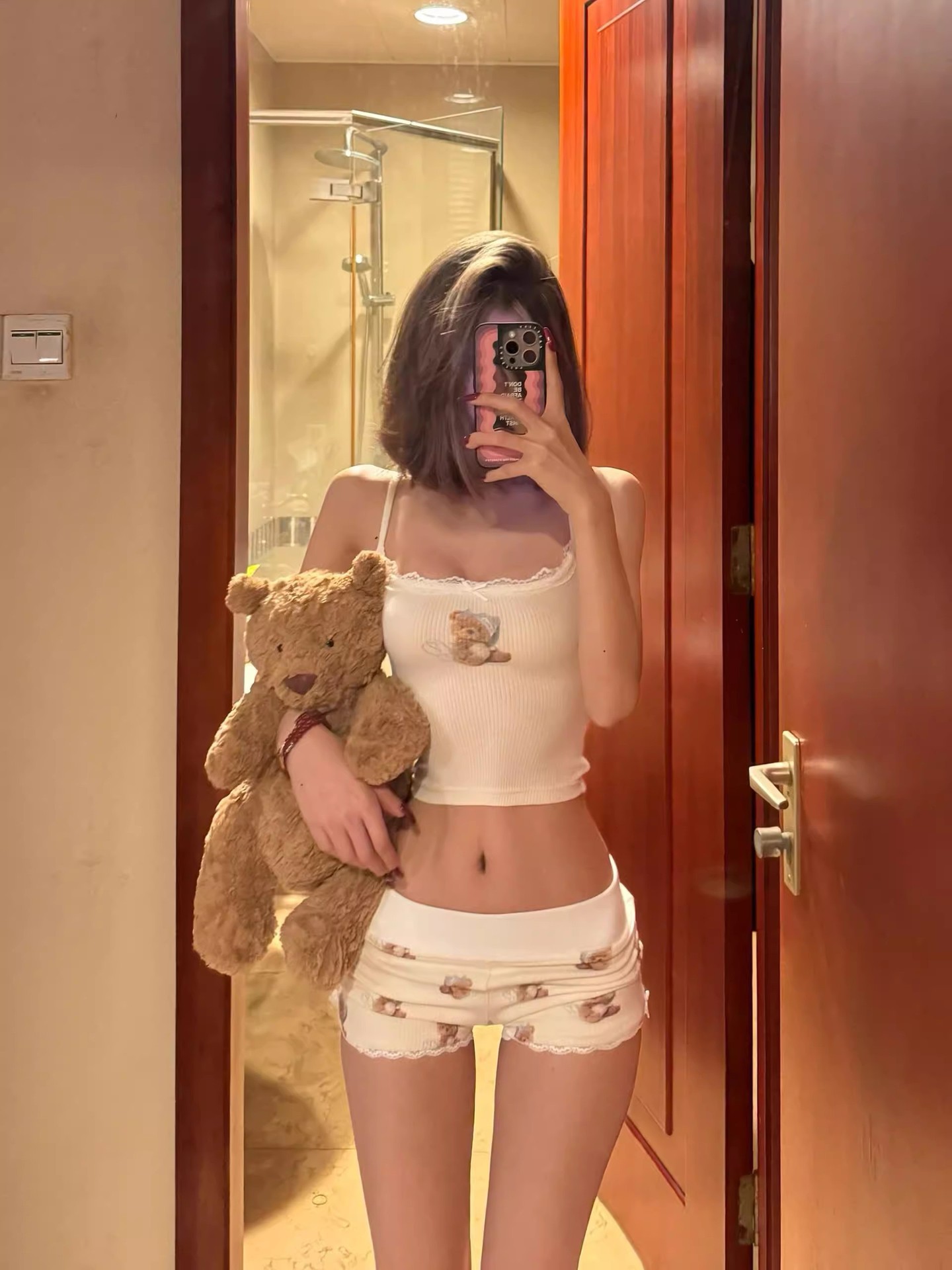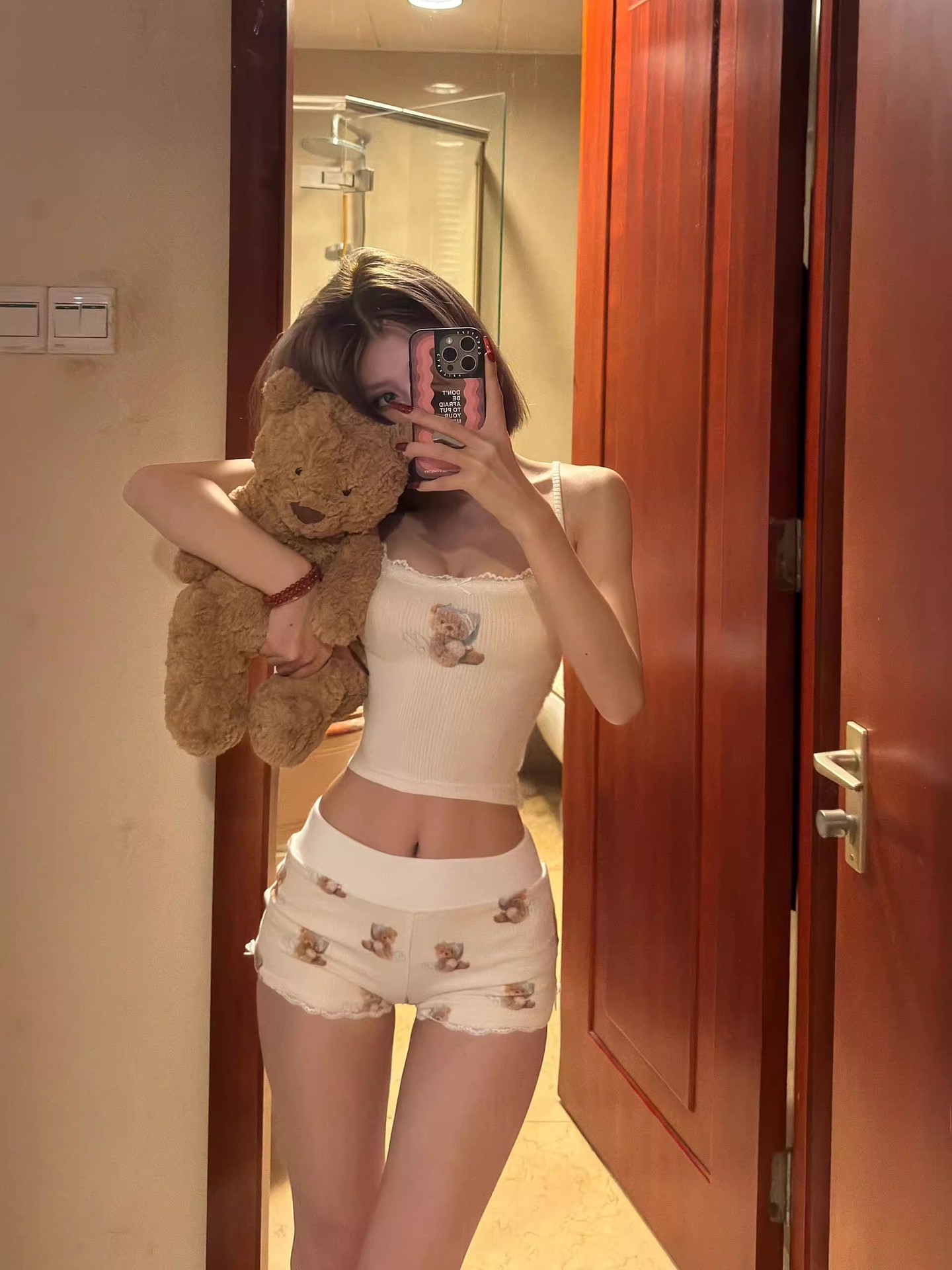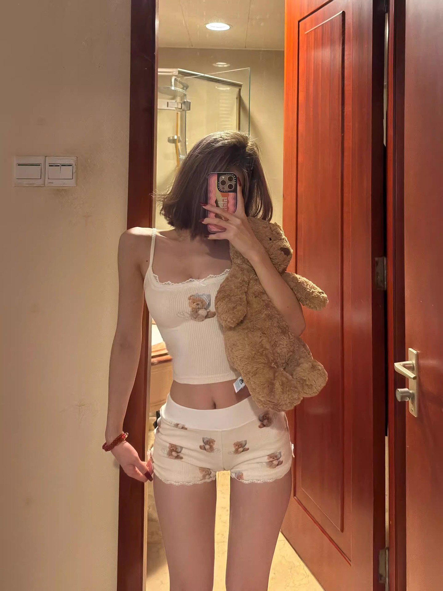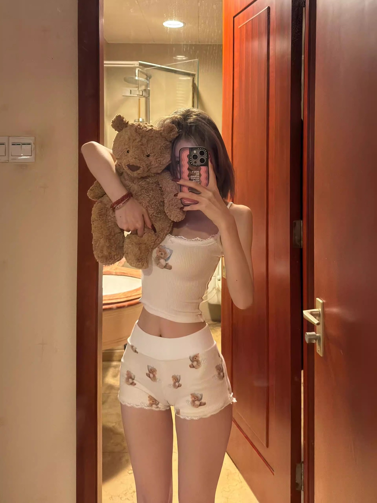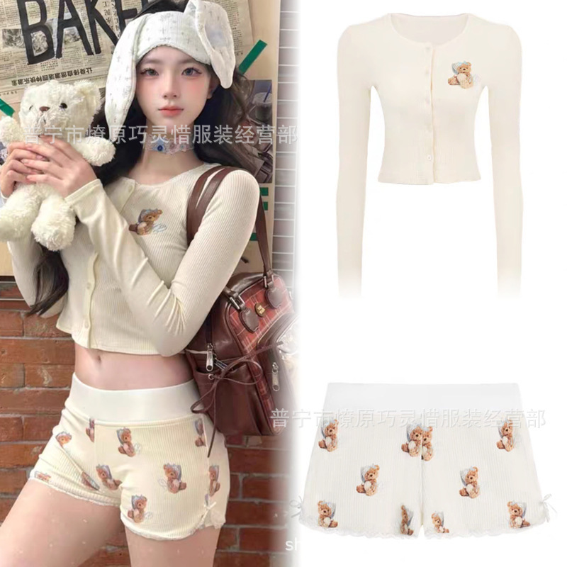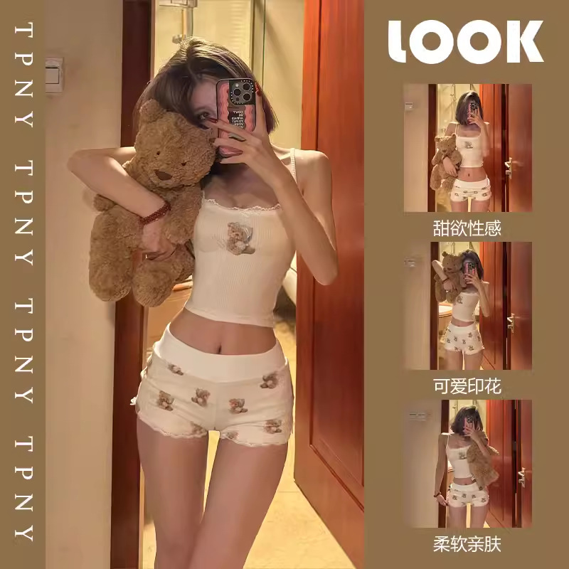 여자 순수한 욕망 곰 서스펜더 가슴 패드 잠옷 여성 여름 2024 새로운 슬림 섹시한 조끼 반바지 홈웨어스토어 가기